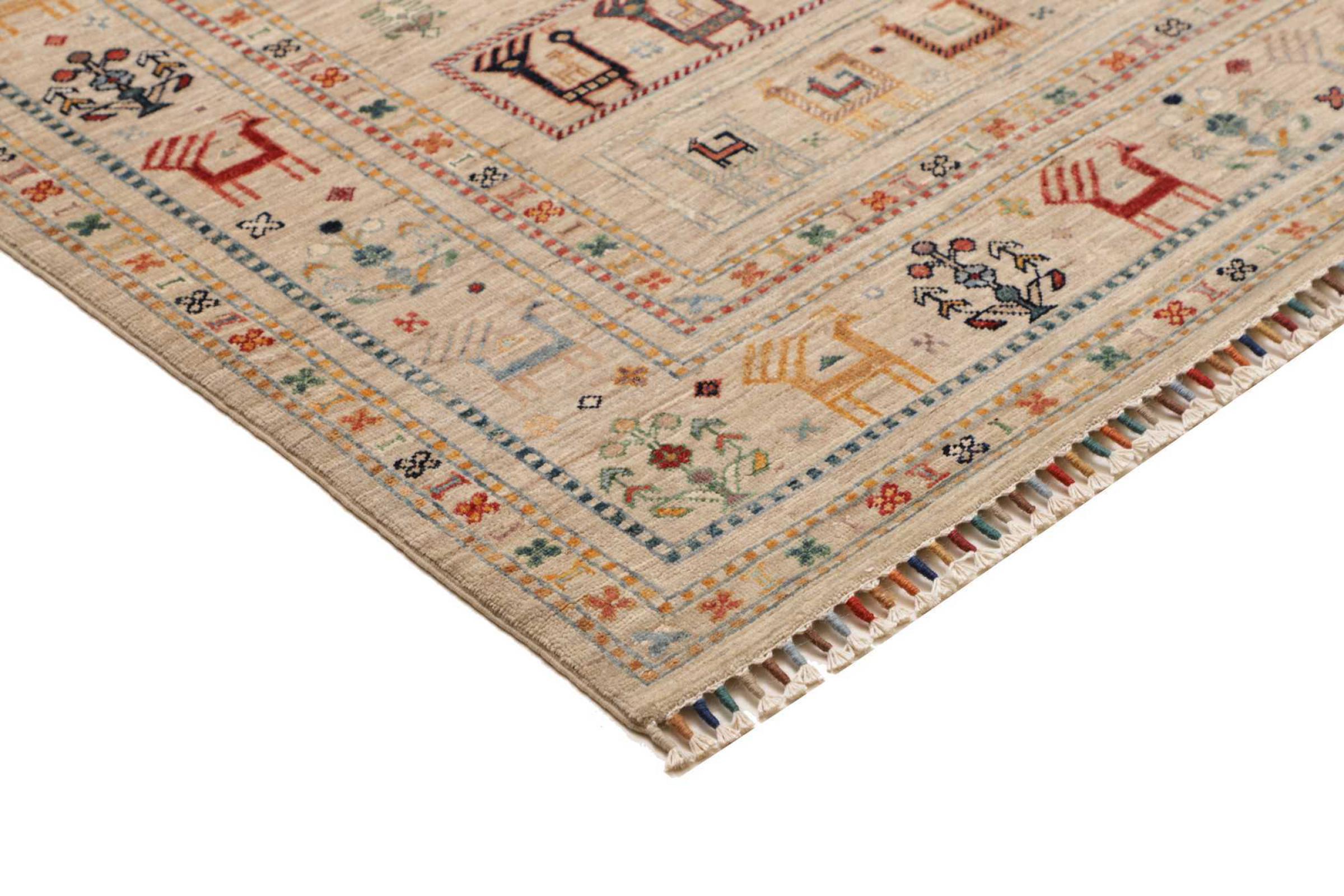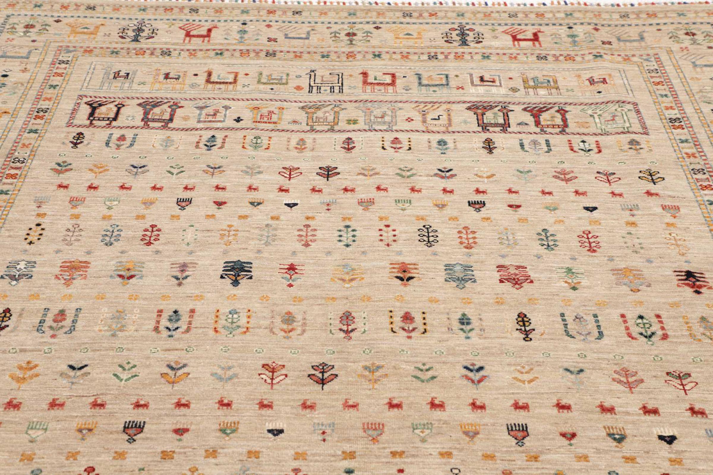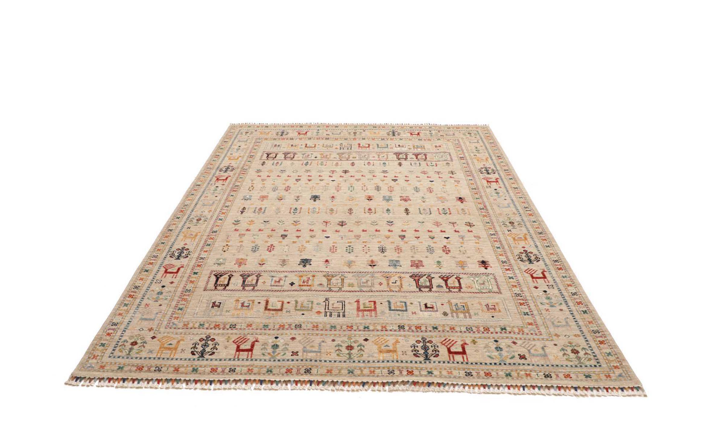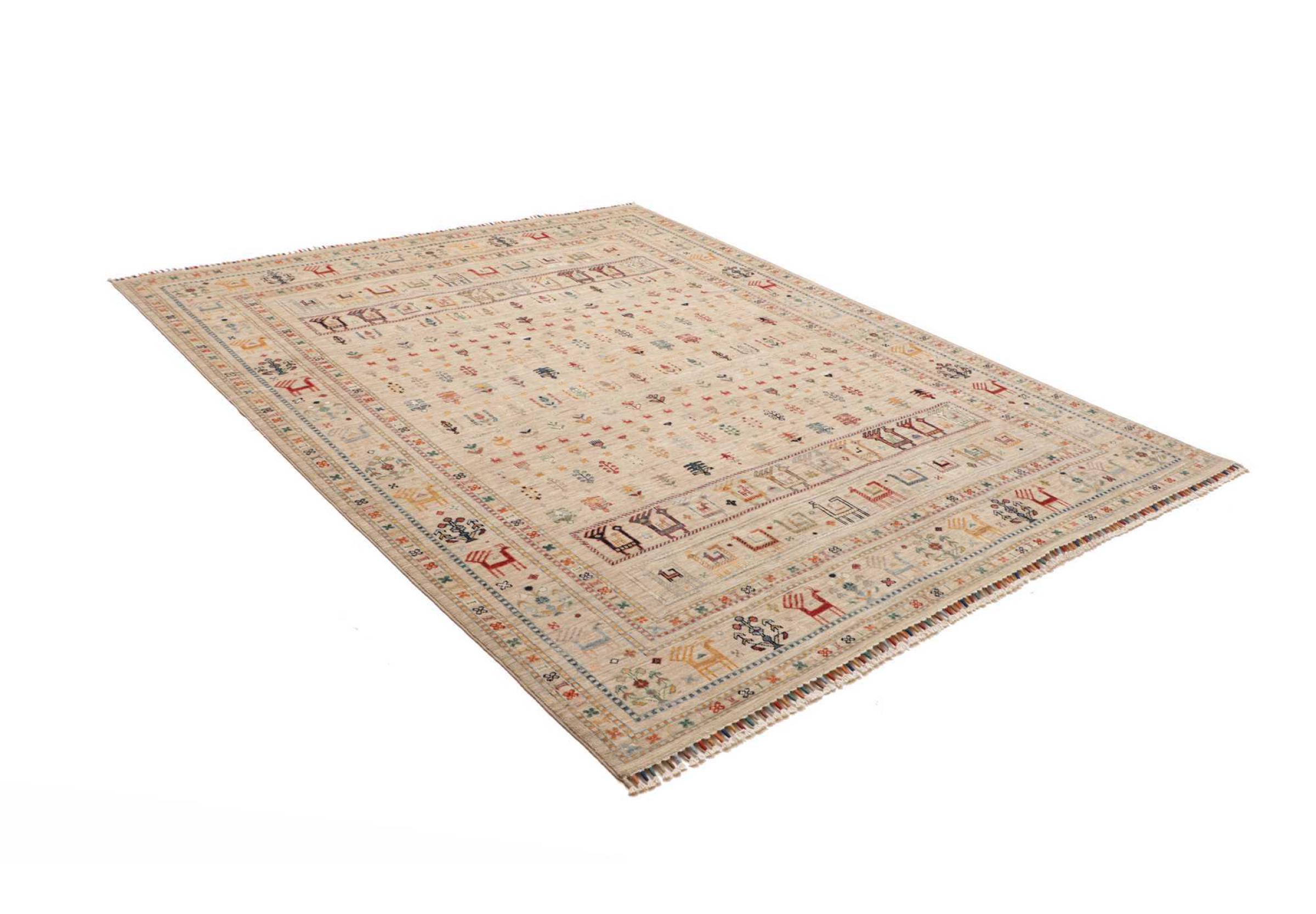 This rug is made of hand spun sheep wool of the highest quality. Especially in Iran (former Persia), Afghanistan and Pakistan wool is still spun by hand before the actual knotting of the rug begins. Wool has proven itself as a natural and extremely hard-wearing material over centuries. Among other things, it has dirt-repellent and heat-insulating properties. At the same time, wool is incomparably soft and has a natural shine.