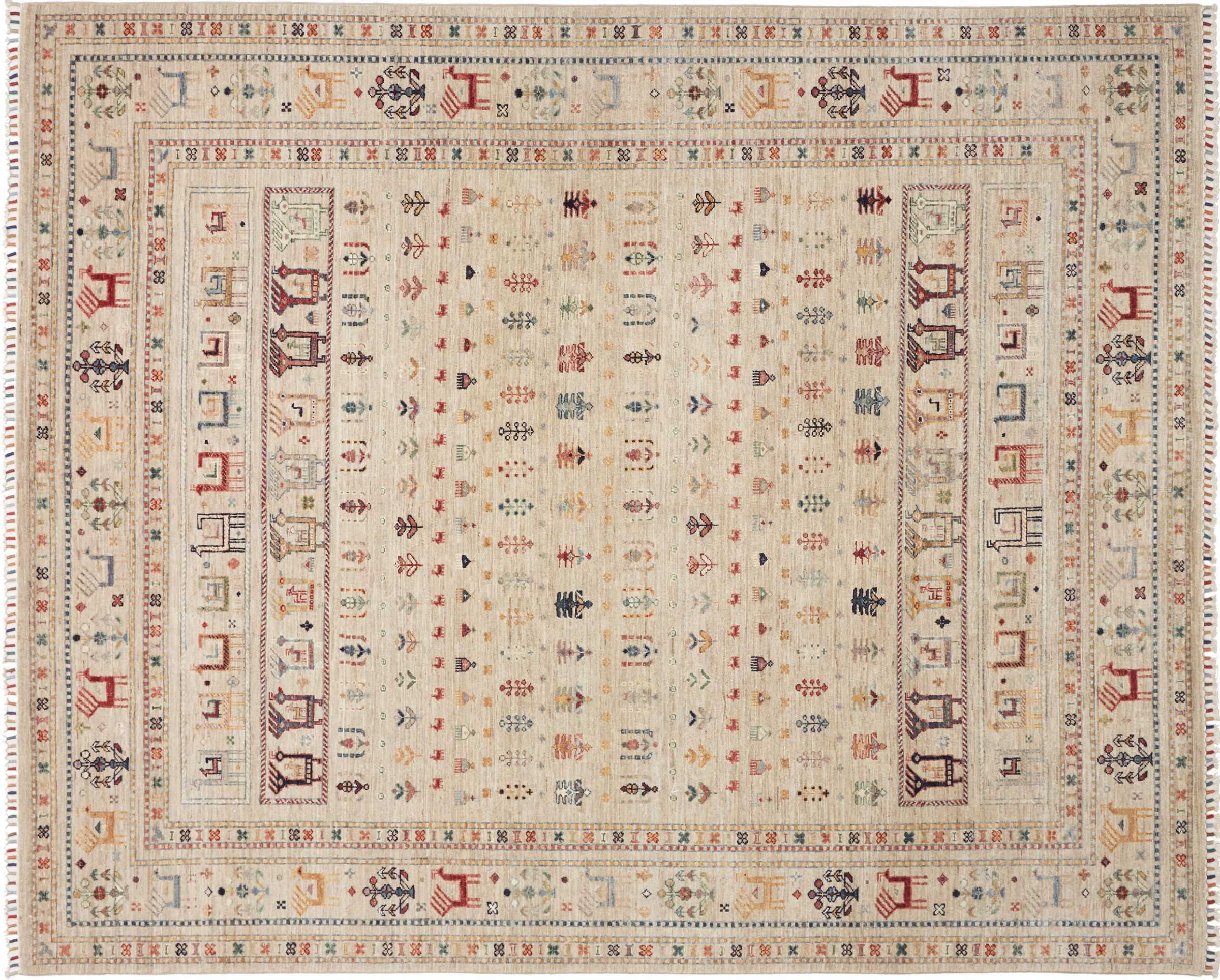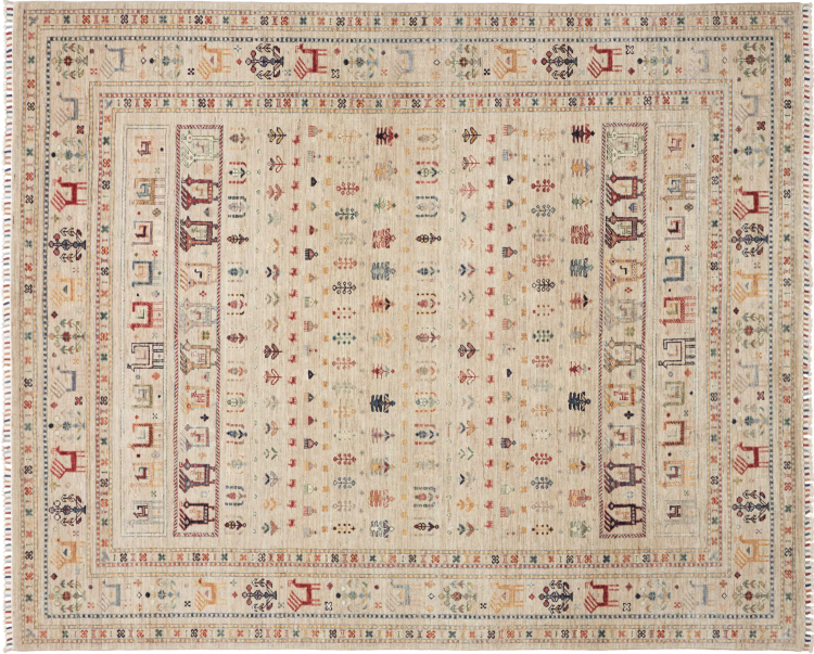 Rug ID: 306405001346667 Size: 8'2"x6'8" ft Thickness: ap. 0.2 in Knot density: 82 - 103 / square inch Manufacturing: Knotted by hand Pile: Handspun wool Warp: Cotton Origin: Pakistan Age: New Weight: ap. 40 lb In stock: Unique - Only 1 in stock