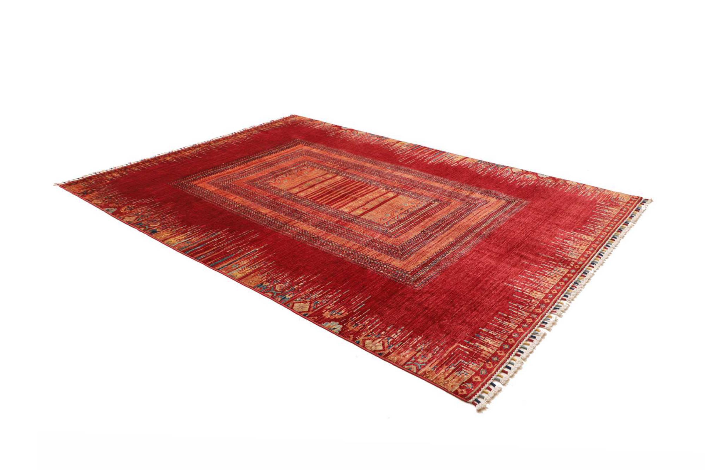 This rug is made of hand spun sheep wool of the highest quality. Especially in Iran (former Persia), Afghanistan and Pakistan wool is still spun by hand before the actual knotting of the rug begins. Wool has proven itself as a natural and extremely hard-wearing material over centuries. Among other things, it has dirt-repellent and heat-insulating properties. At the same time, wool is incomparably soft and has a natural shine.