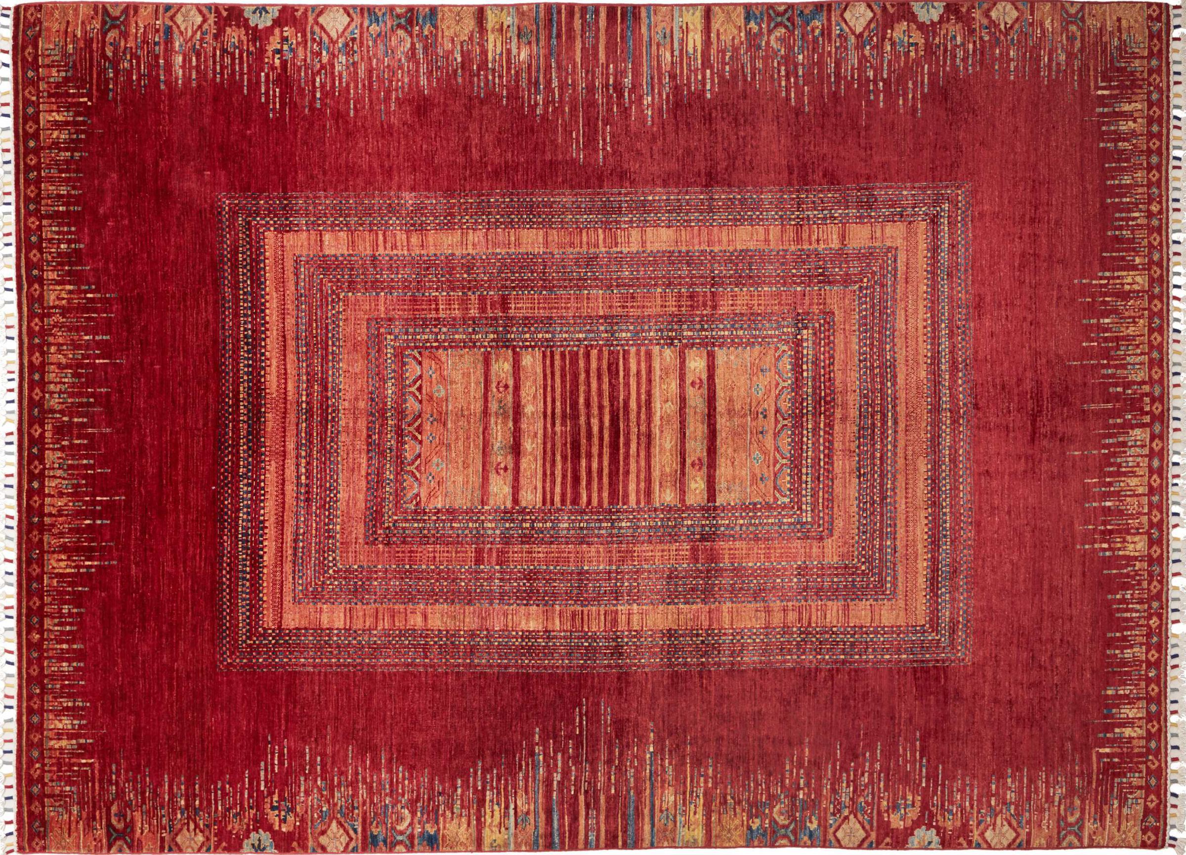 Rug ID: 306571001238826 Size: 9'7"x6'10" ft Thickness: ap. 0.2 in Knot density: 82 - 103 / square inch Manufacturing: Knotted by hand Pile: Handspun wool Warp: Cotton Origin: Pakistan Age: New Weight: ap. 46 lb In stock: Unique - Only 1 in stock