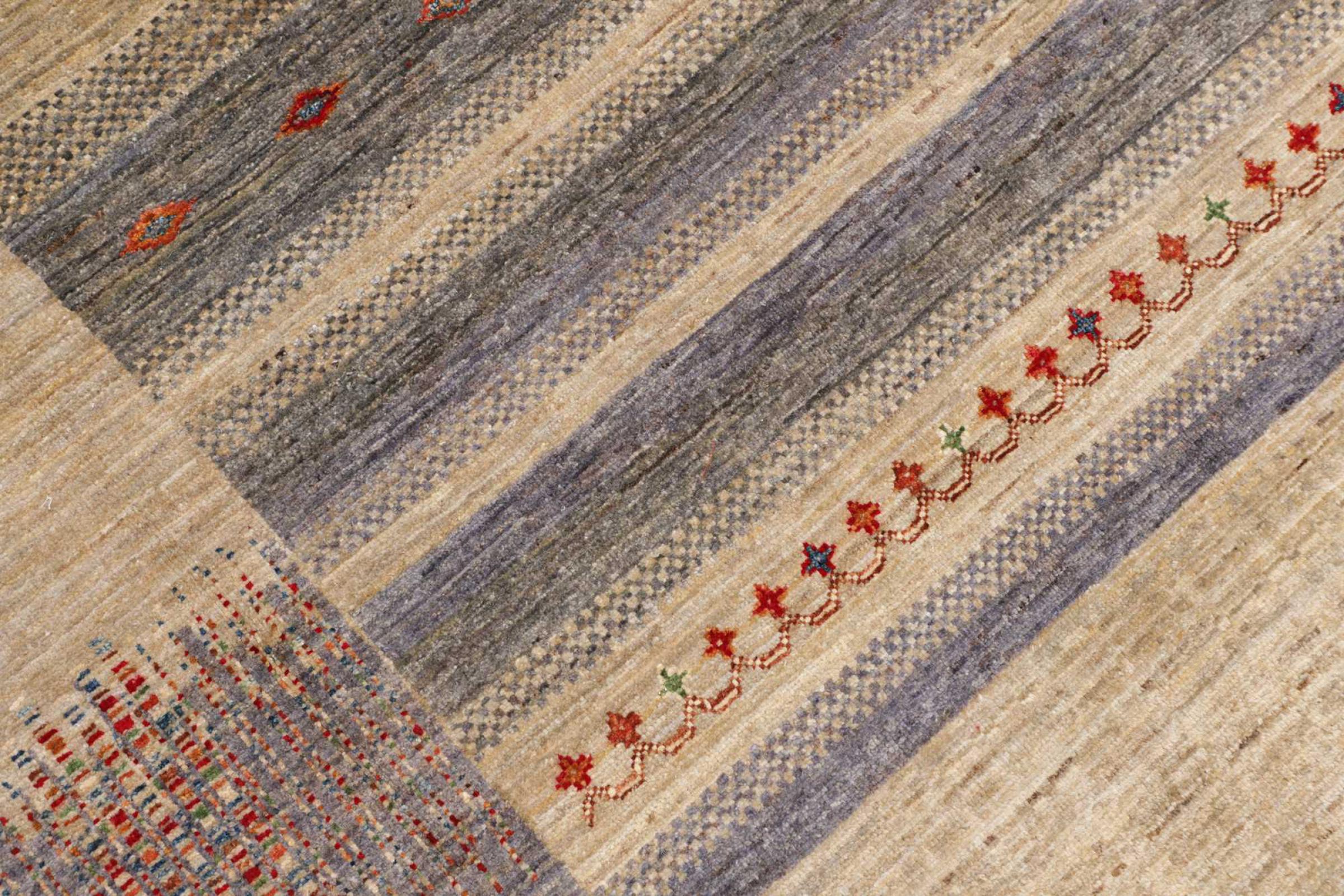 This rug is made of hand spun sheep wool of the highest quality. Especially in Iran (former Persia), Afghanistan and Pakistan wool is still spun by hand before the actual knotting of the rug begins. Wool has proven itself as a natural and extremely hard-wearing material over centuries. Among other things, it has dirt-repellent and heat-insulating properties. At the same time, wool is incomparably soft and has a natural shine.