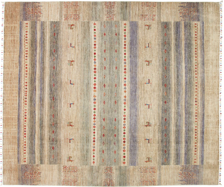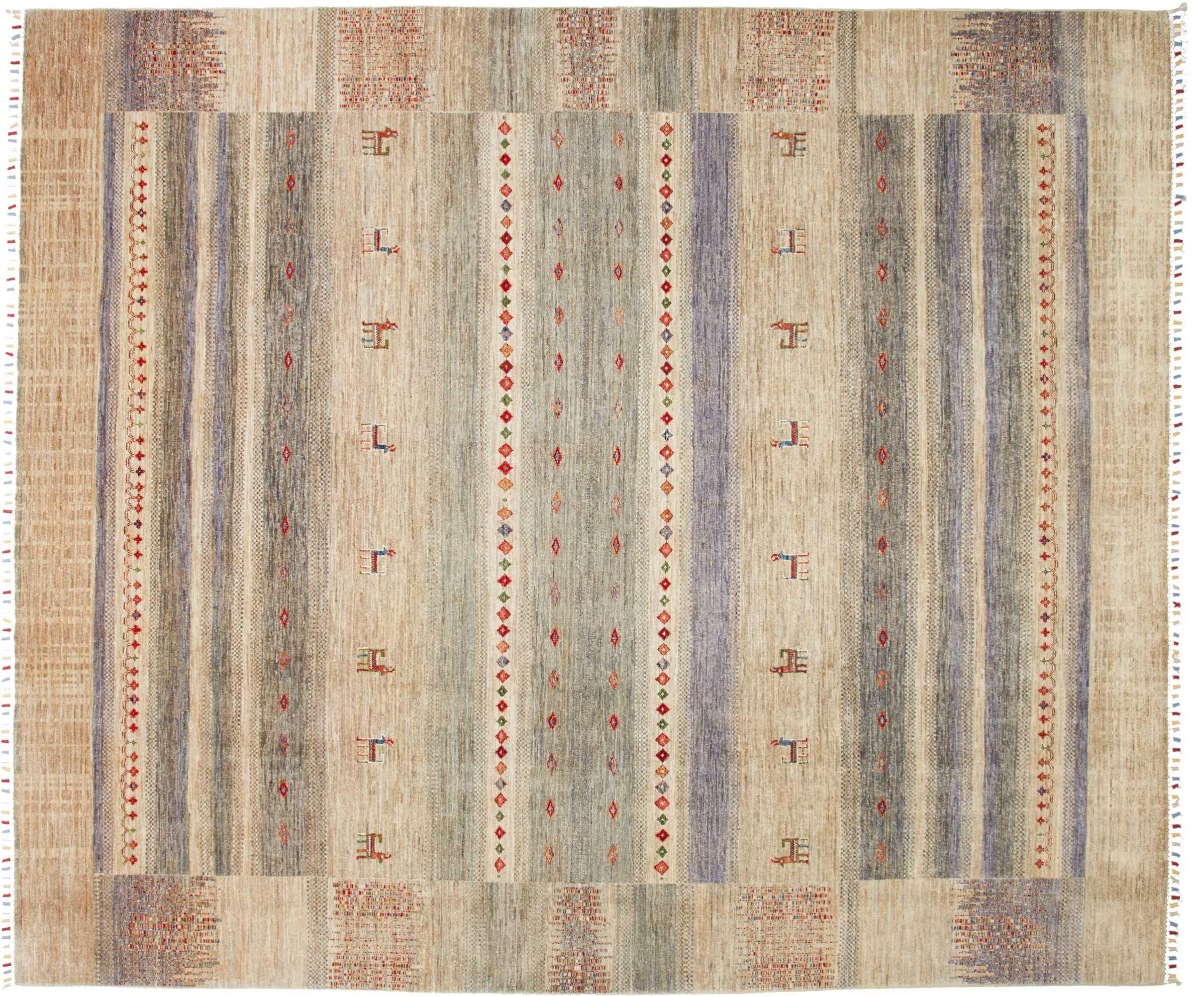 Rug ID: 306476004569985 Size: 9'9"x8'4" ft Thickness: ap. 0.2 in Knot density: 82 - 103 / square inch Manufacturing: Knotted by hand Pile: Handspun wool Warp: Cotton Origin: Pakistan Age: New Weight: ap. 60 lb In stock: Unique
