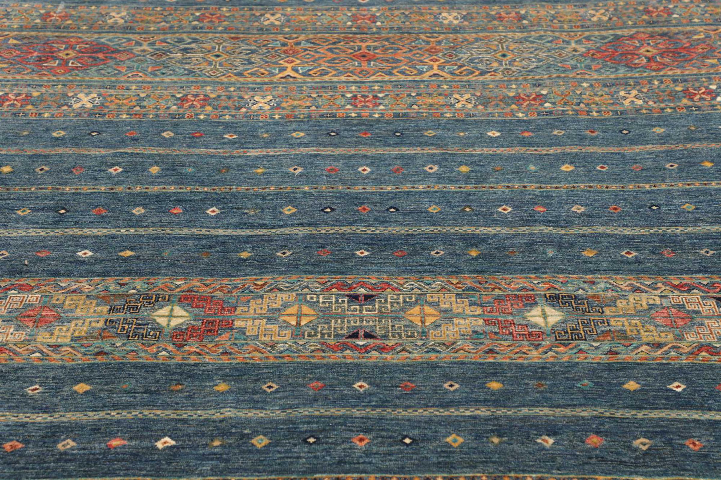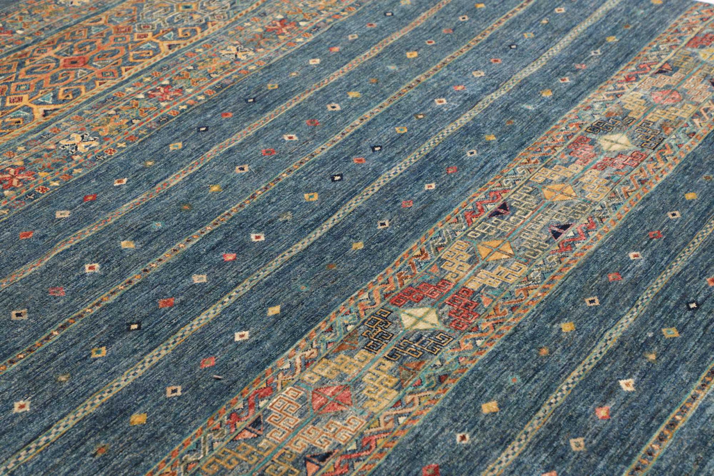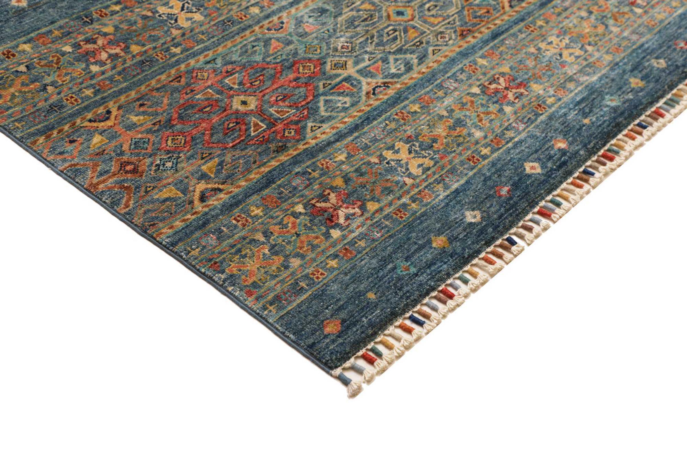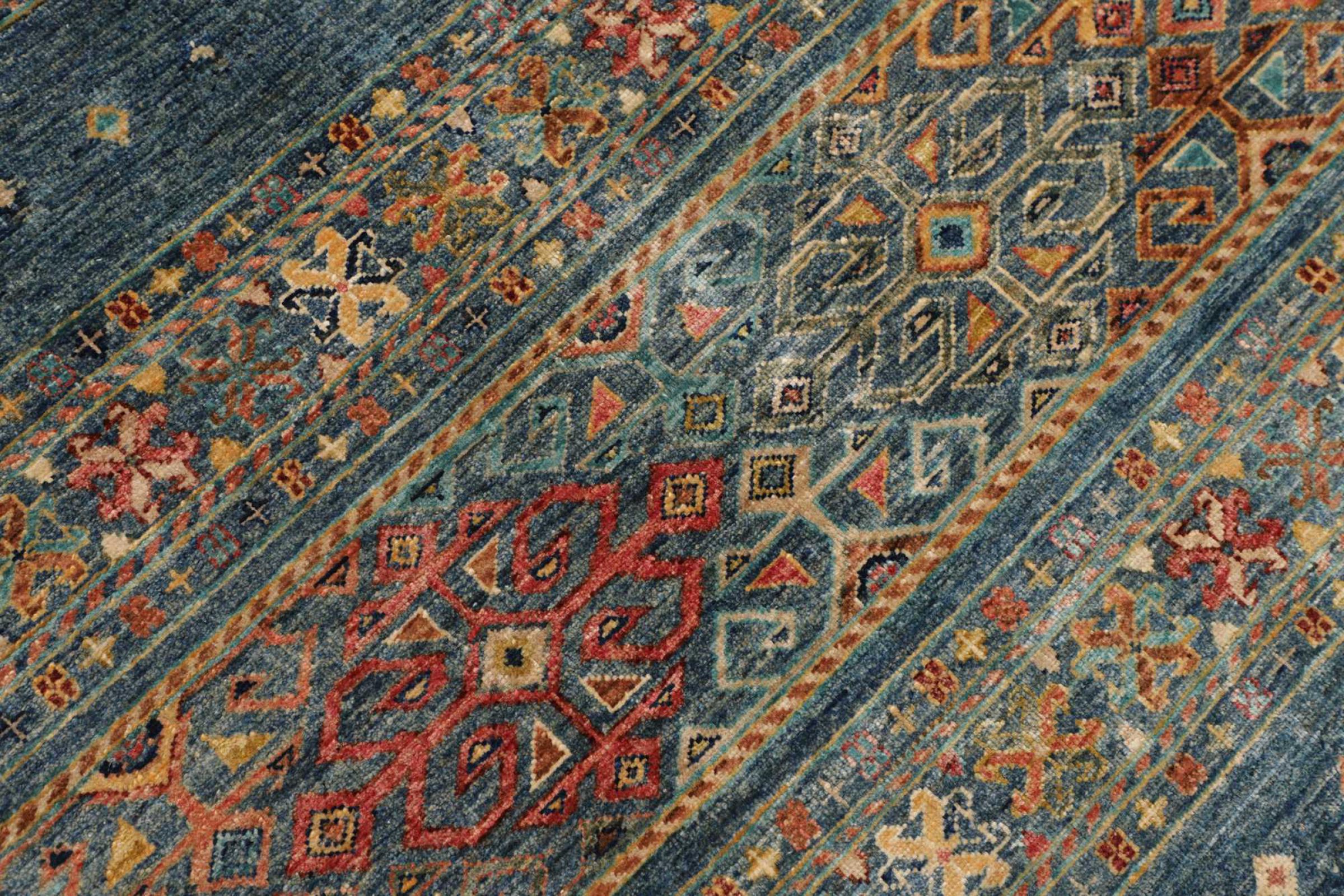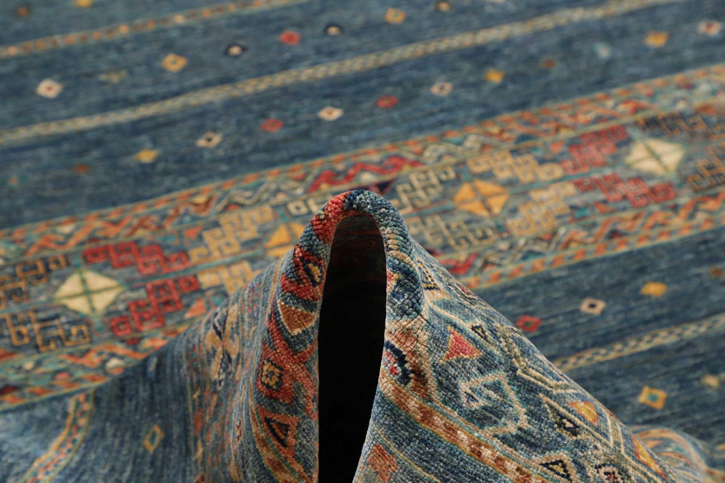 This rug is made of hand spun sheep wool of the highest quality. Especially in Iran (former Persia), Afghanistan and Pakistan wool is still spun by hand before the actual knotting of the rug begins. Wool has proven itself as a natural and extremely hard-wearing material over centuries. Among other things, it has dirt-repellent and heat-insulating properties. At the same time, wool is incomparably soft and has a natural shine.