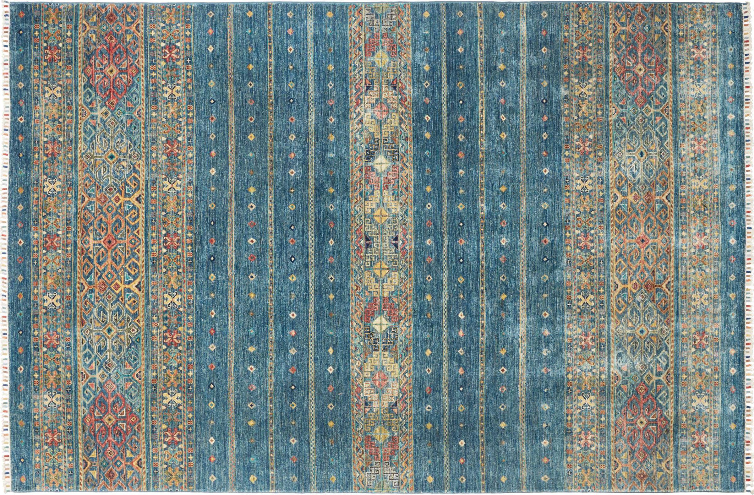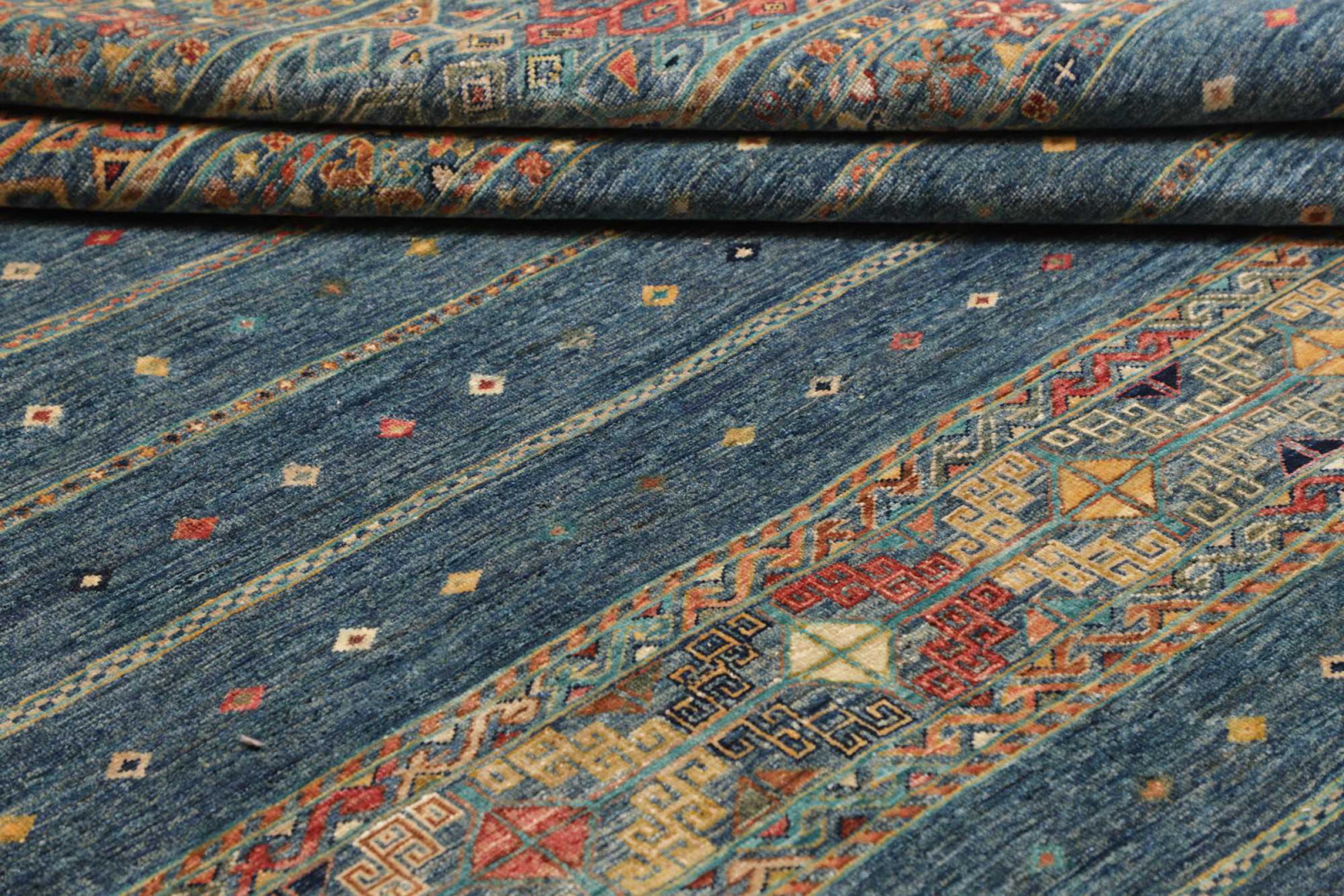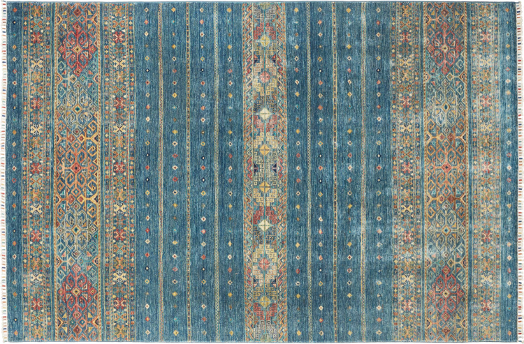 Rug ID: 306373008893987 Size: 9'10"x6'7" ft Thickness: ap. 0.2 in Knot density: 82 - 103 / square inch Manufacturing: Knotted by hand Pile: Handspun wool Warp: Cotton Origin: Pakistan Age: New Weight: ap. 46 lb In stock: Unique - Only 1 in stock