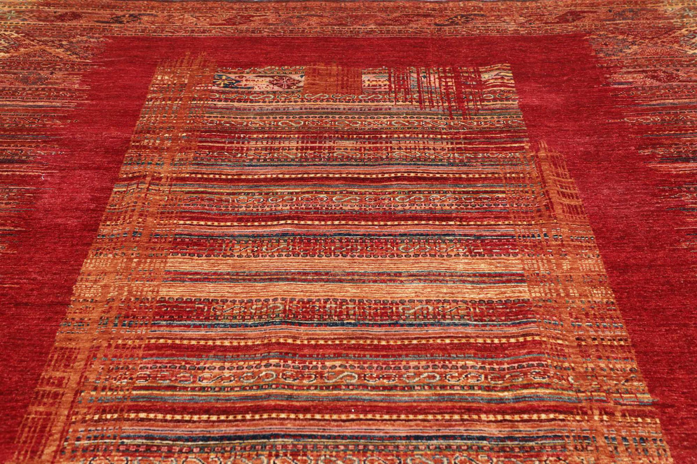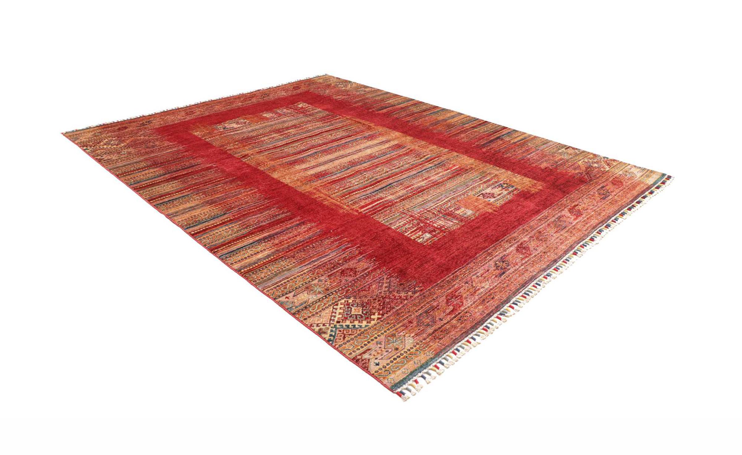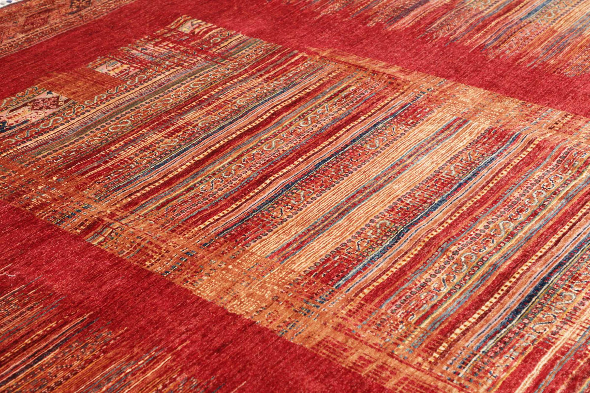 This rug is made of hand spun sheep wool of the highest quality. Especially in Iran (former Persia), Afghanistan and Pakistan wool is still spun by hand before the actual knotting of the rug begins. Wool has proven itself as a natural and extremely hard-wearing material over centuries. Among other things, it has dirt-repellent and heat-insulating properties. At the same time, wool is incomparably soft and has a natural shine.