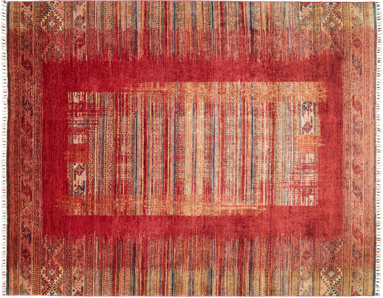 Rug ID: 30648700108069 Size: 9'10"x7'10" ft Thickness: ap. 0.2 in Knot density: 82 - 103 / square inch Manufacturing: Knotted by hand Pile: Handspun wool Warp: Cotton Origin: Pakistan Age: New Weight: ap. 55 lb In stock: Unique - Only 1 in stock