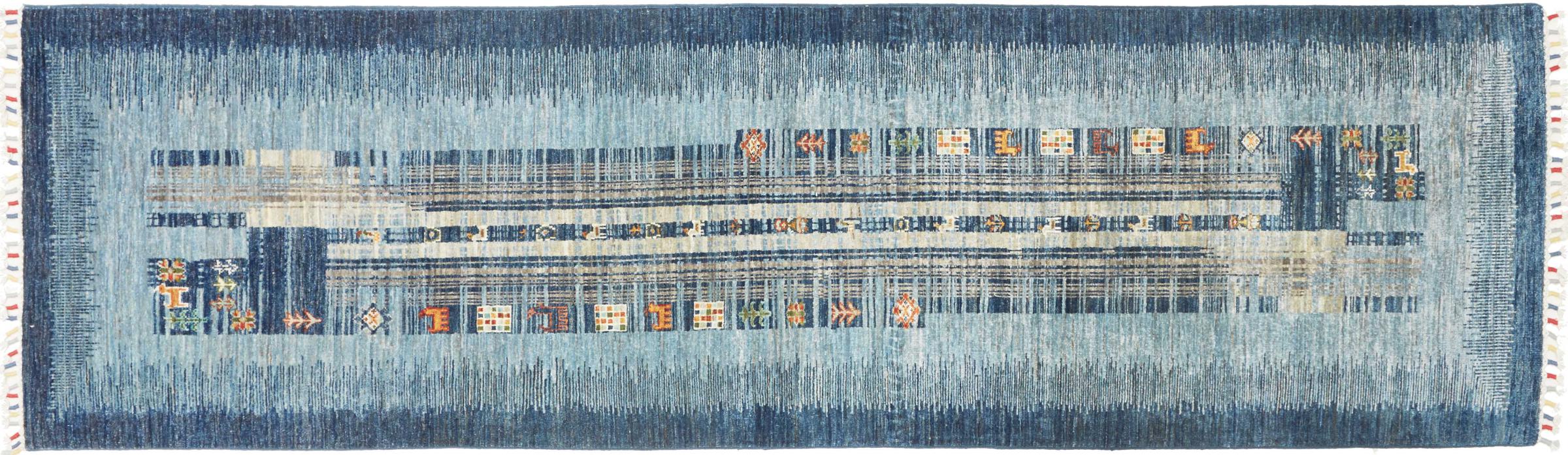 Rug ID: 306546002787172 Size: 9'10"x2'9" ft Thickness: ap. 0.2 in Knot density: 82 - 103 / square inch Manufacturing: Knotted by hand Pile: Handspun wool Warp: Cotton Origin: Pakistan Age: New Weight: ap. 20 lb In stock: Unique - Only 1 in stock