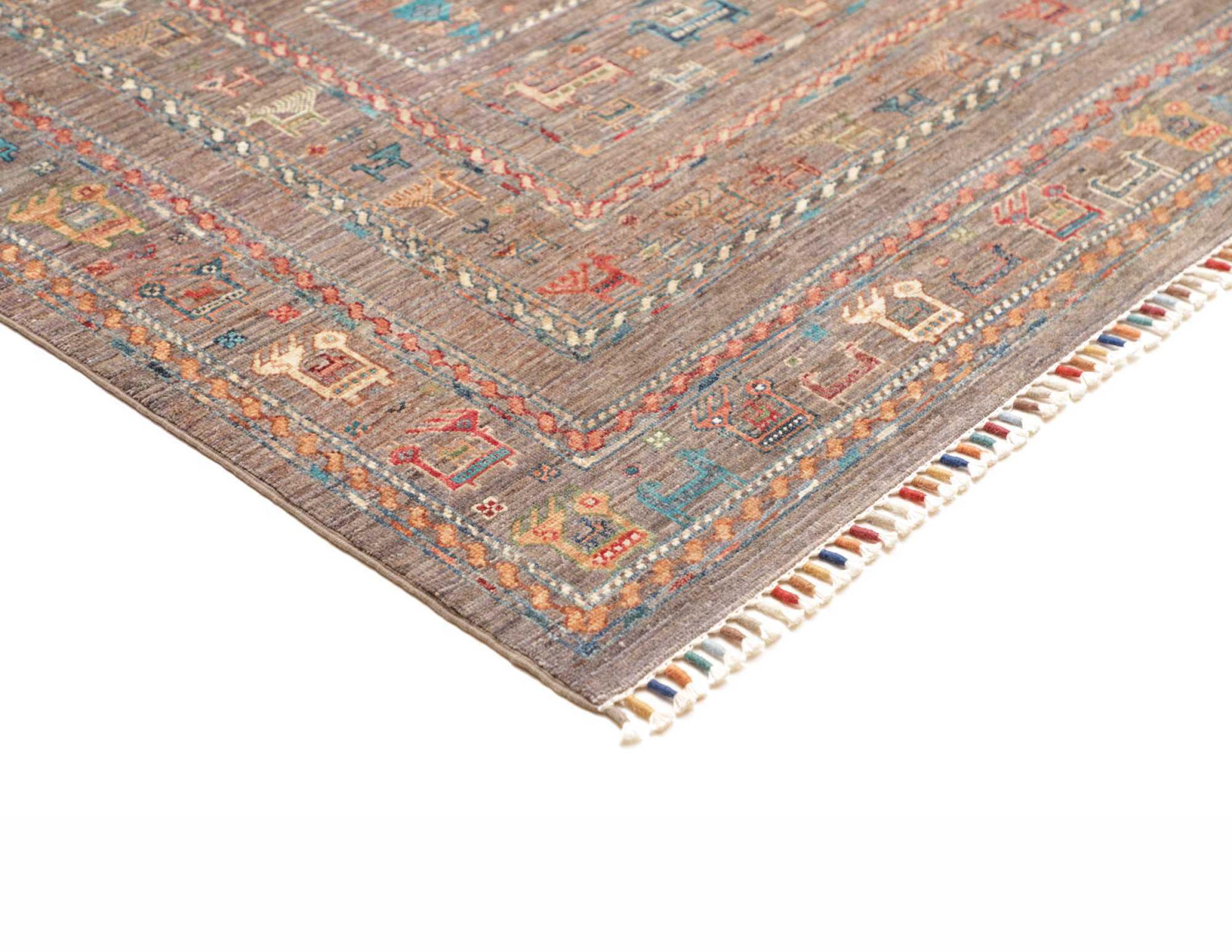 This rug is made of hand spun sheep wool of the highest quality. Especially in Iran (former Persia), Afghanistan and Pakistan wool is still spun by hand before the actual knotting of the rug begins. Wool has proven itself as a natural and extremely hard-wearing material over centuries. Among other things, it has dirt-repellent and heat-insulating properties. At the same time, wool is incomparably soft and has a natural shine.