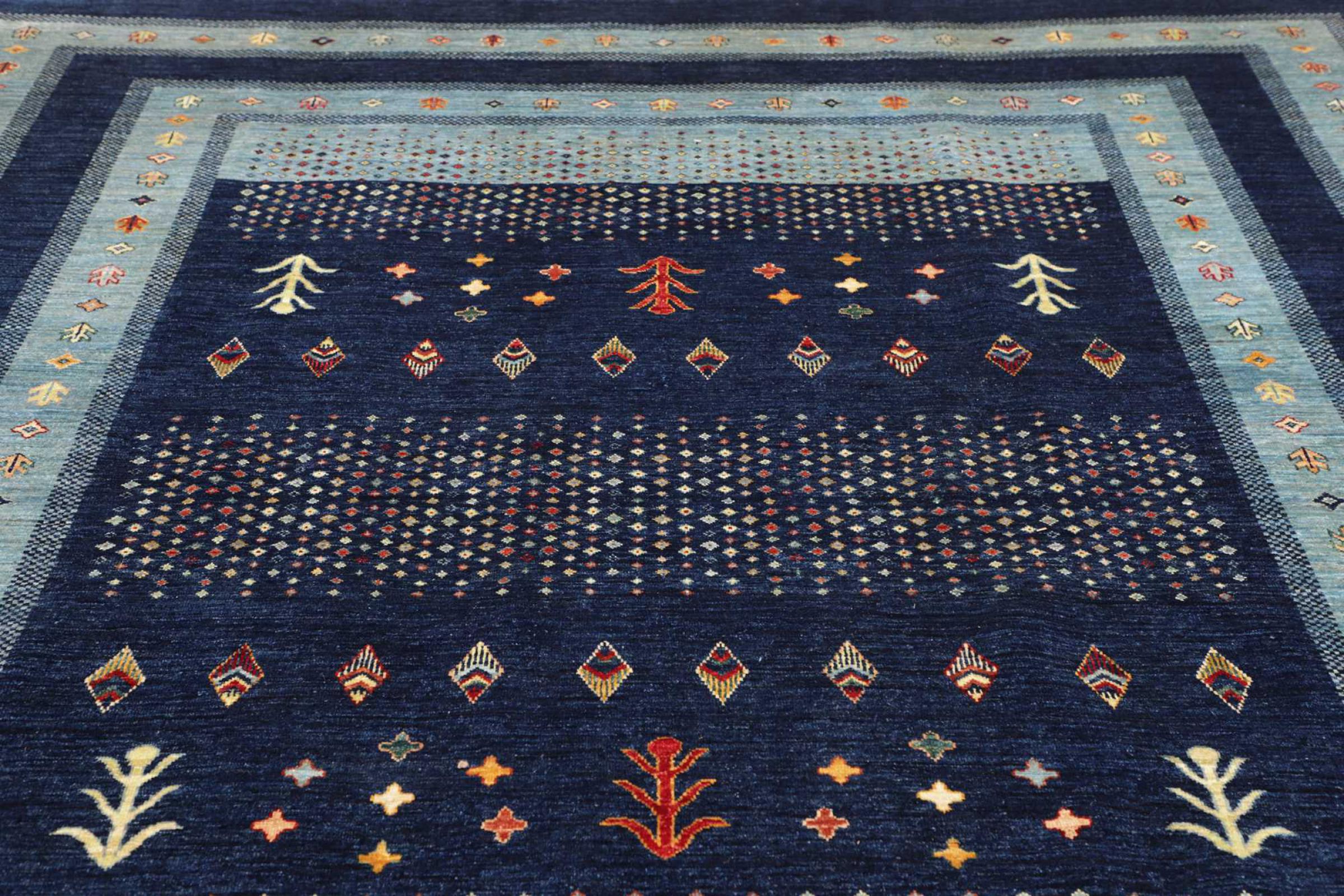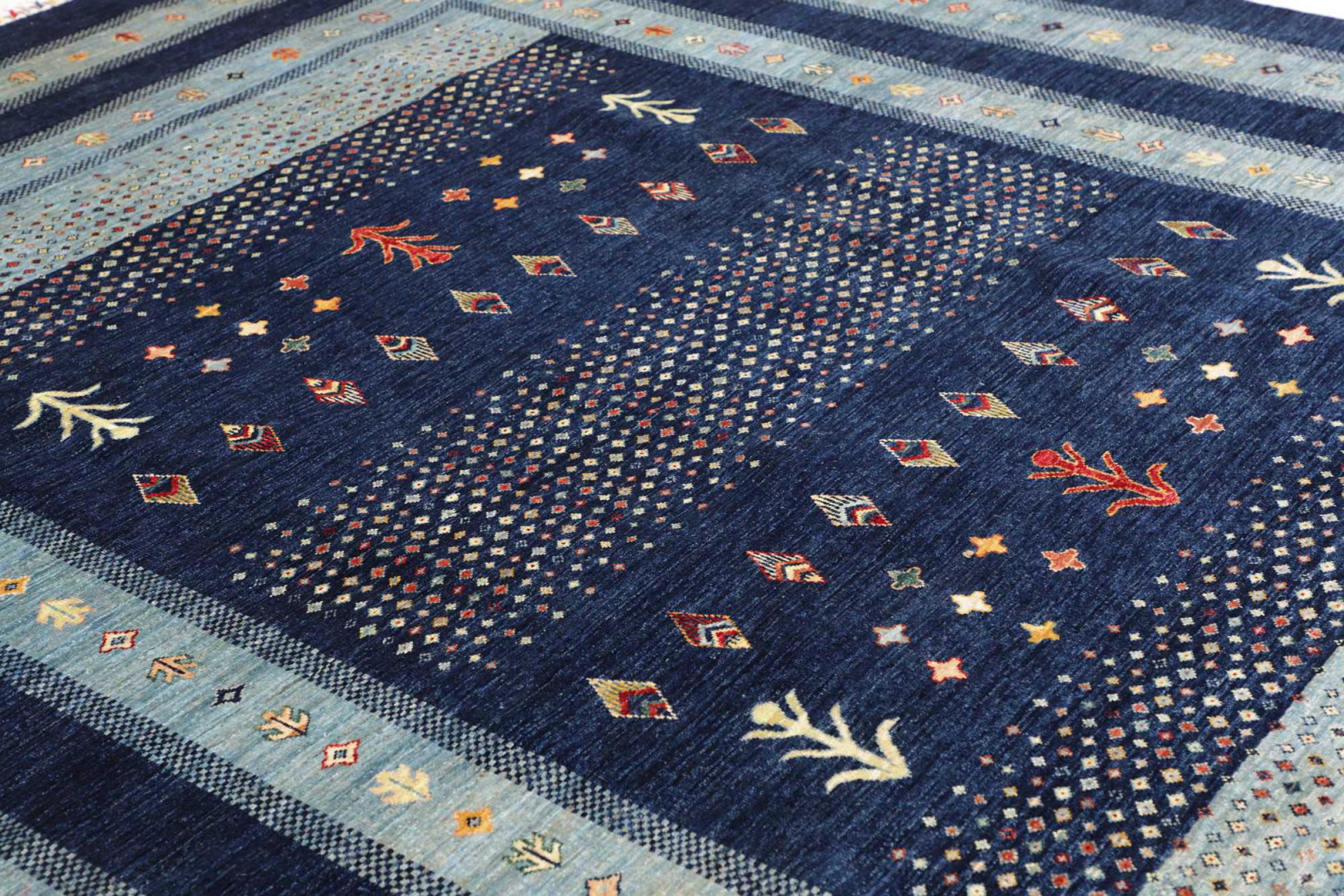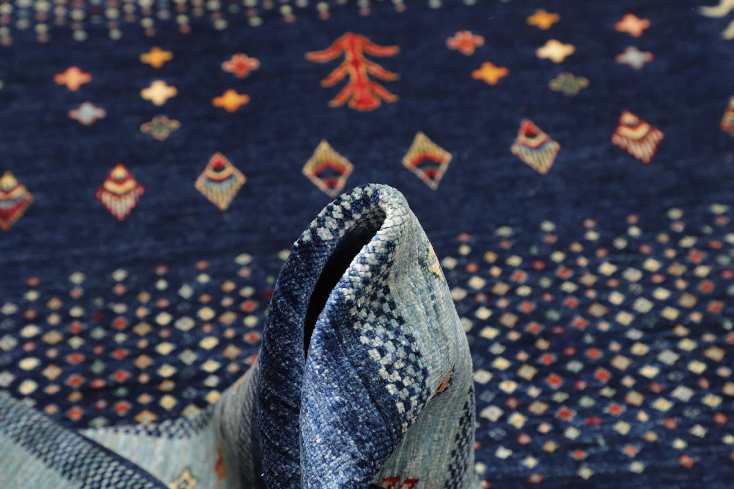 This rug is made of hand spun sheep wool of the highest quality. Especially in Iran (former Persia), Afghanistan and Pakistan wool is still spun by hand before the actual knotting of the rug begins. Wool has proven itself as a natural and extremely hard-wearing material over centuries. Among other things, it has dirt-repellent and heat-insulating properties. At the same time, wool is incomparably soft and has a natural shine.