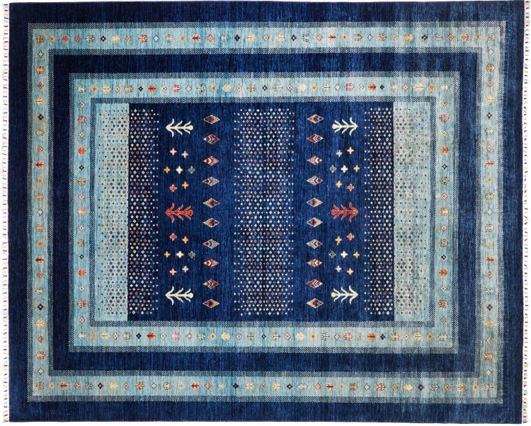 Rug ID: 306486008135197 Size: 9'11"x8'2" ft Thickness: ap. 0.2 in Knot density: 82 - 103 / square inch Manufacturing: Knotted by hand Pile: Handspun wool Warp: Cotton Origin: Pakistan Age: New Weight: ap. 57 lb In stock: Unique