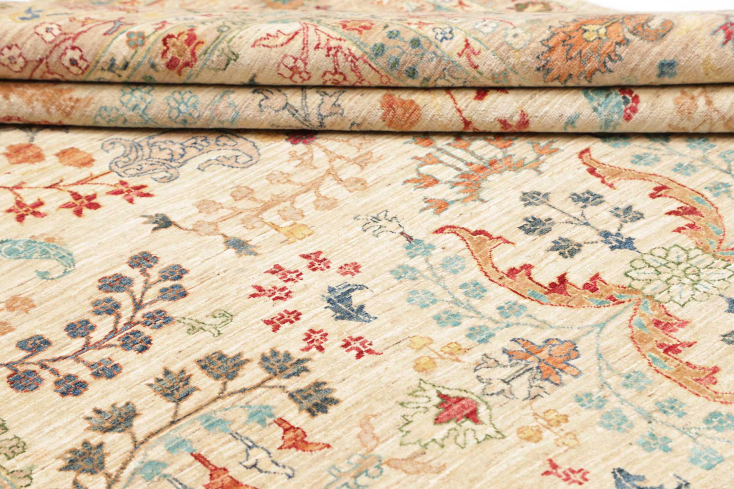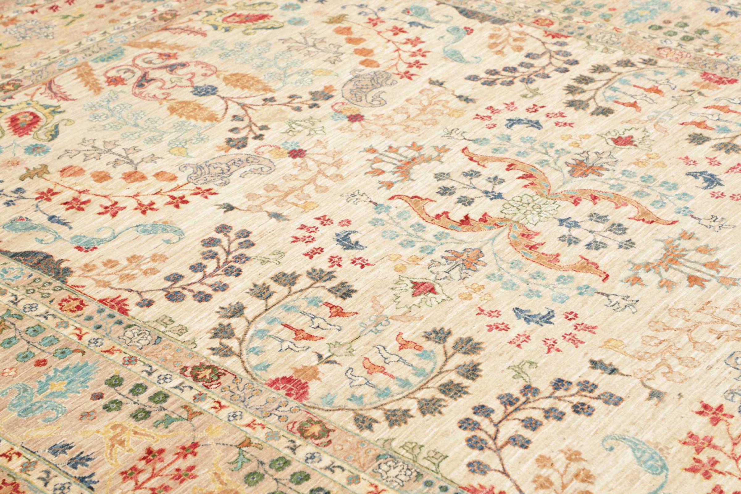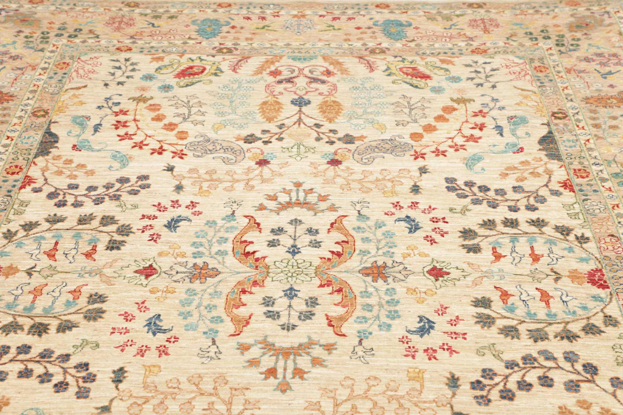 This rug is made of hand spun sheep wool of the highest quality. Especially in Iran (former Persia), Afghanistan and Pakistan wool is still spun by hand before the actual knotting of the rug begins. Wool has proven itself as a natural and extremely hard-wearing material over centuries. Among other things, it has dirt-repellent and heat-insulating properties. At the same time, wool is incomparably soft and has a natural shine.