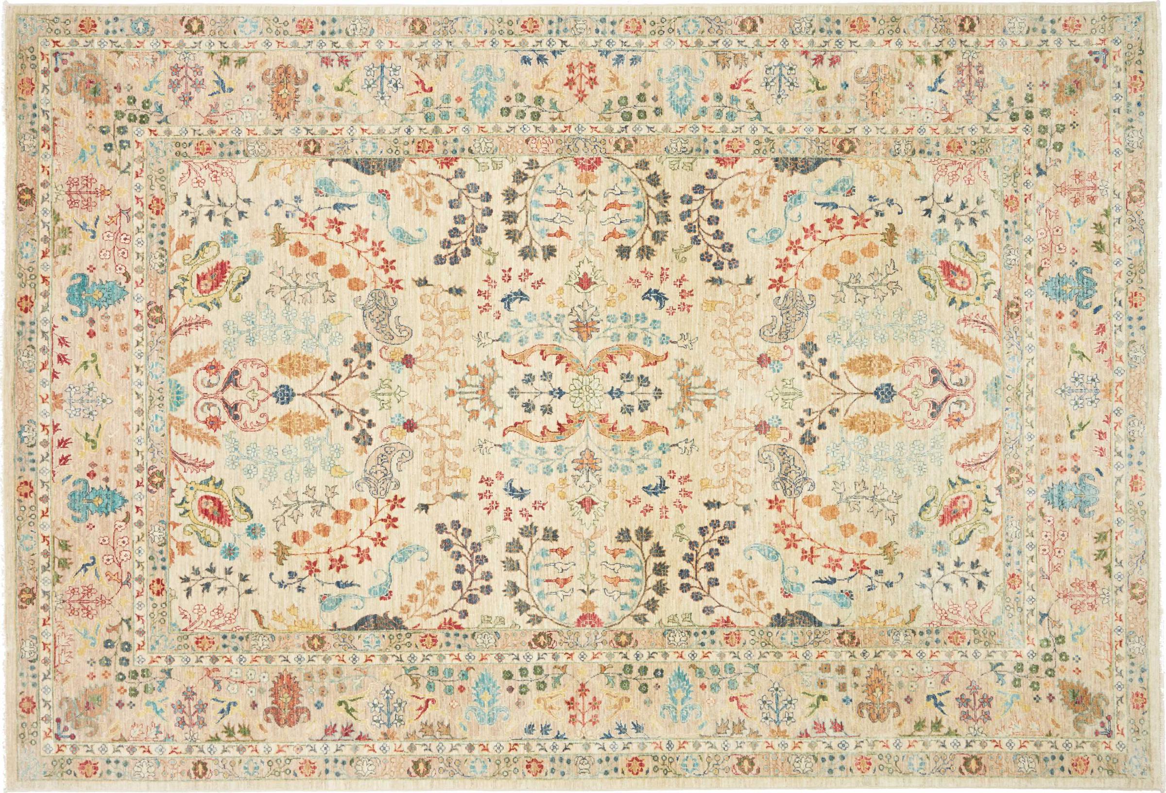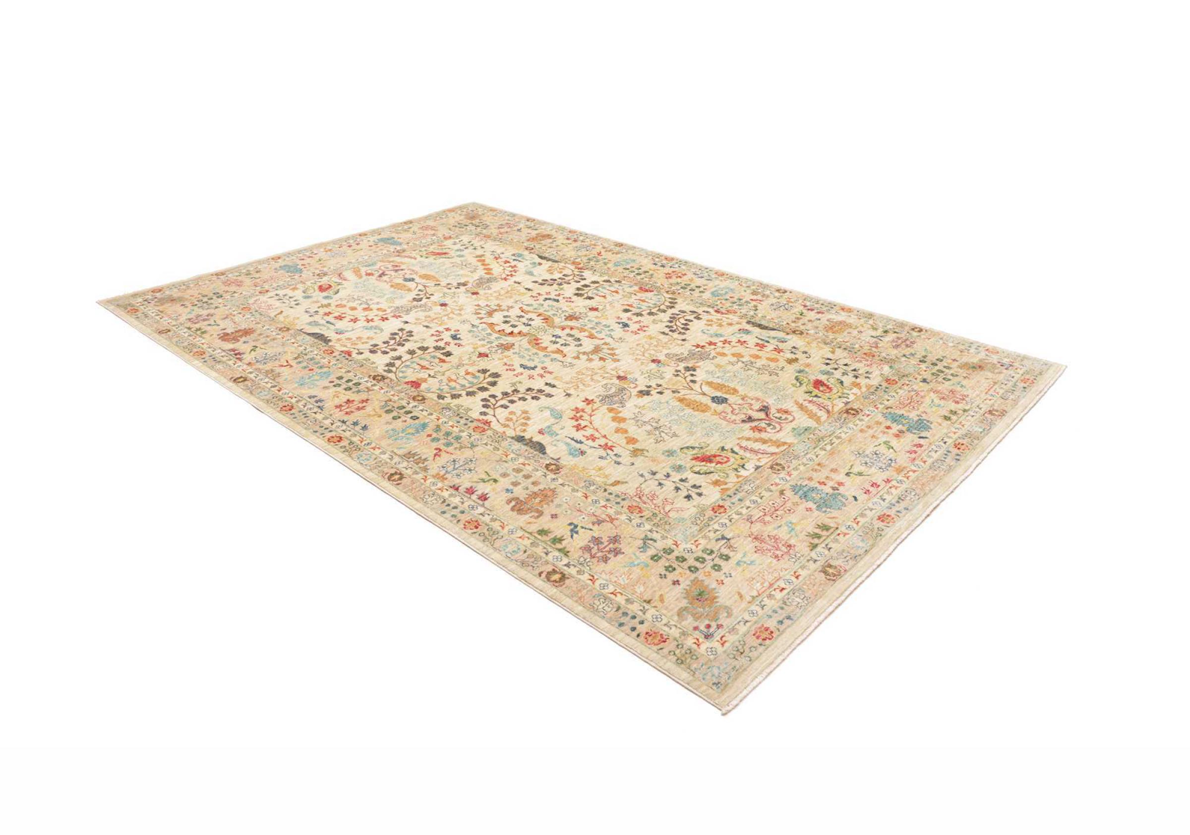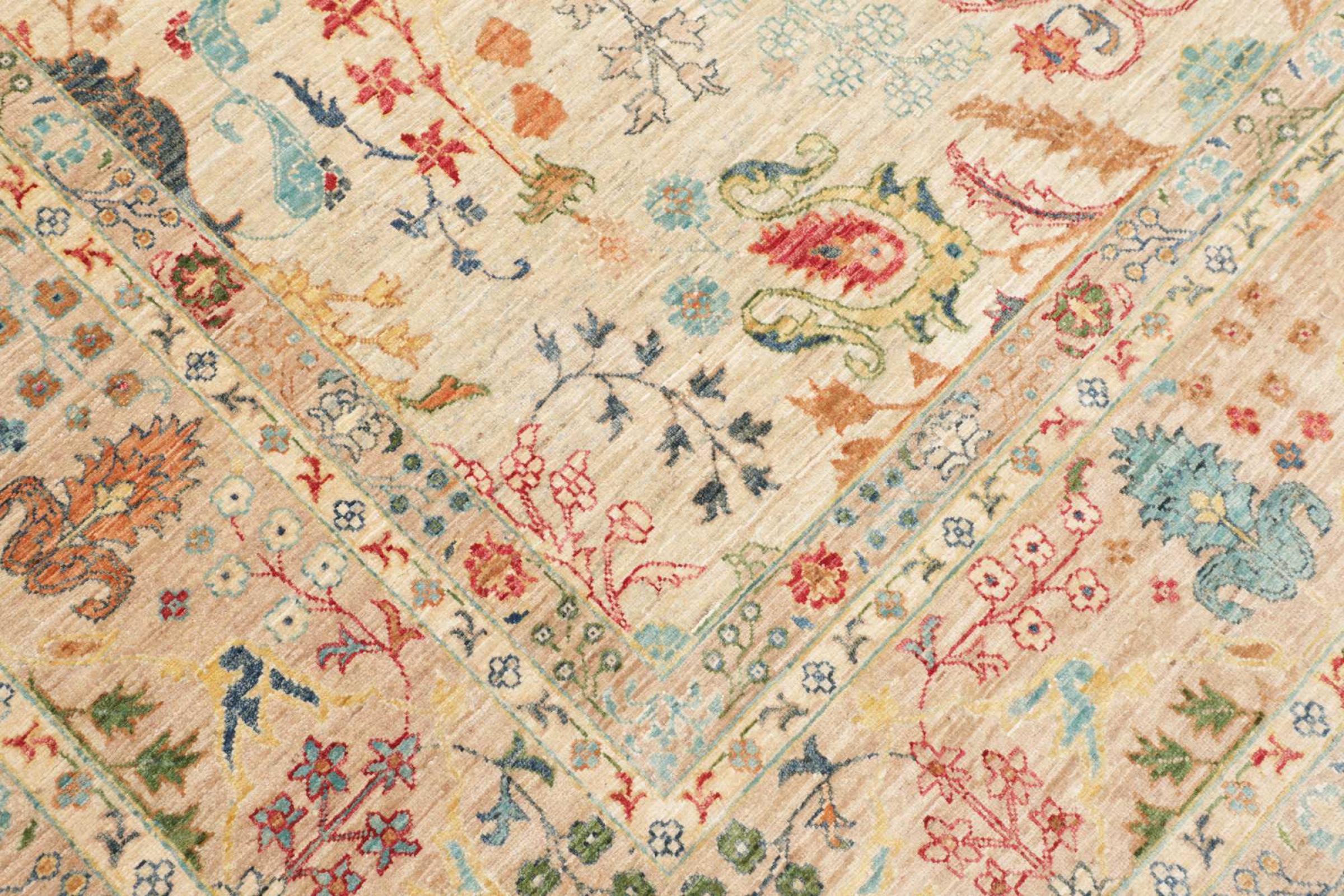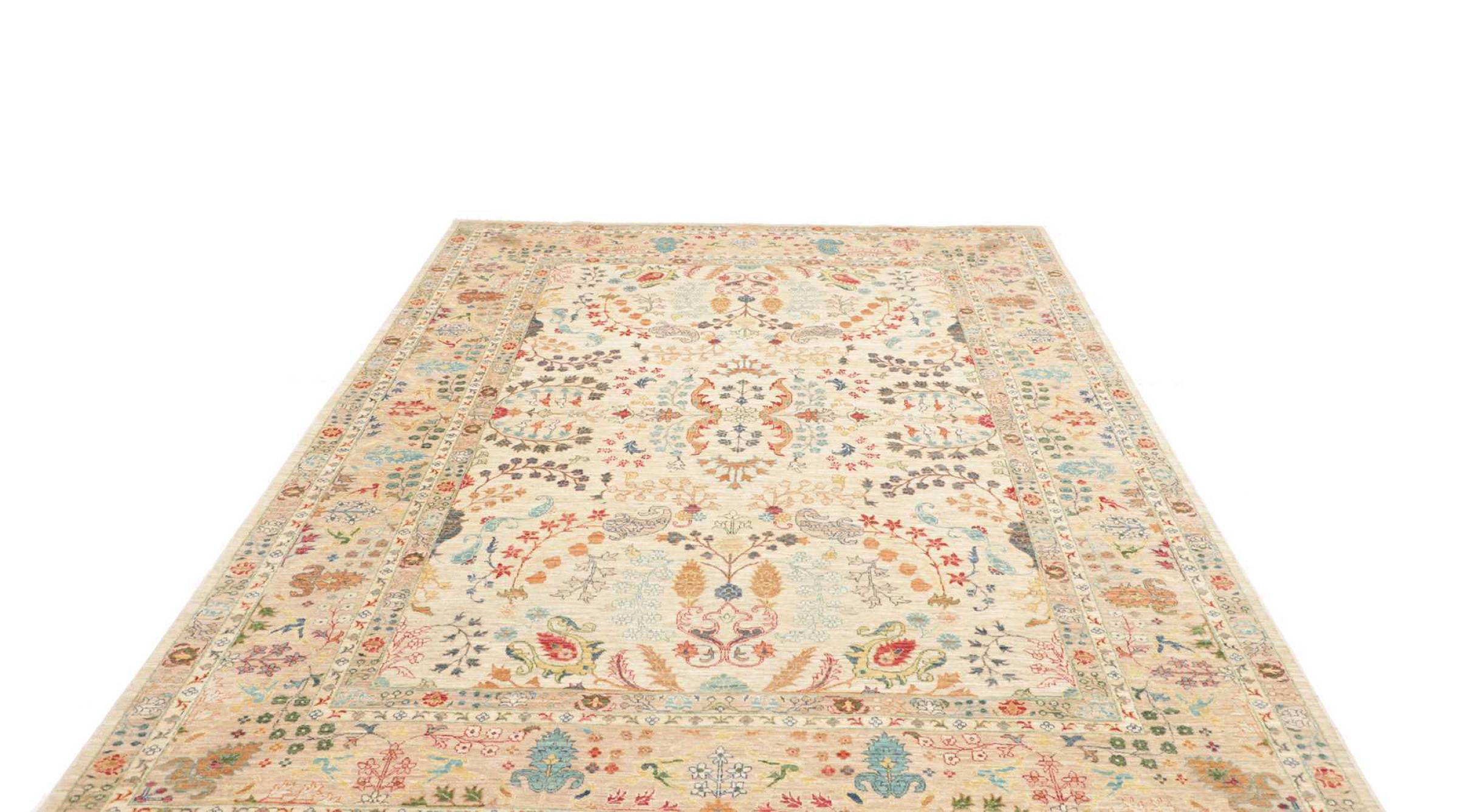 This rug is made of hand spun sheep wool of the highest quality. Especially in Iran (former Persia), Afghanistan and Pakistan wool is still spun by hand before the actual knotting of the rug begins. Wool has proven itself as a natural and extremely hard-wearing material over centuries. Among other things, it has dirt-repellent and heat-insulating properties. At the same time, wool is incomparably soft and has a natural shine.