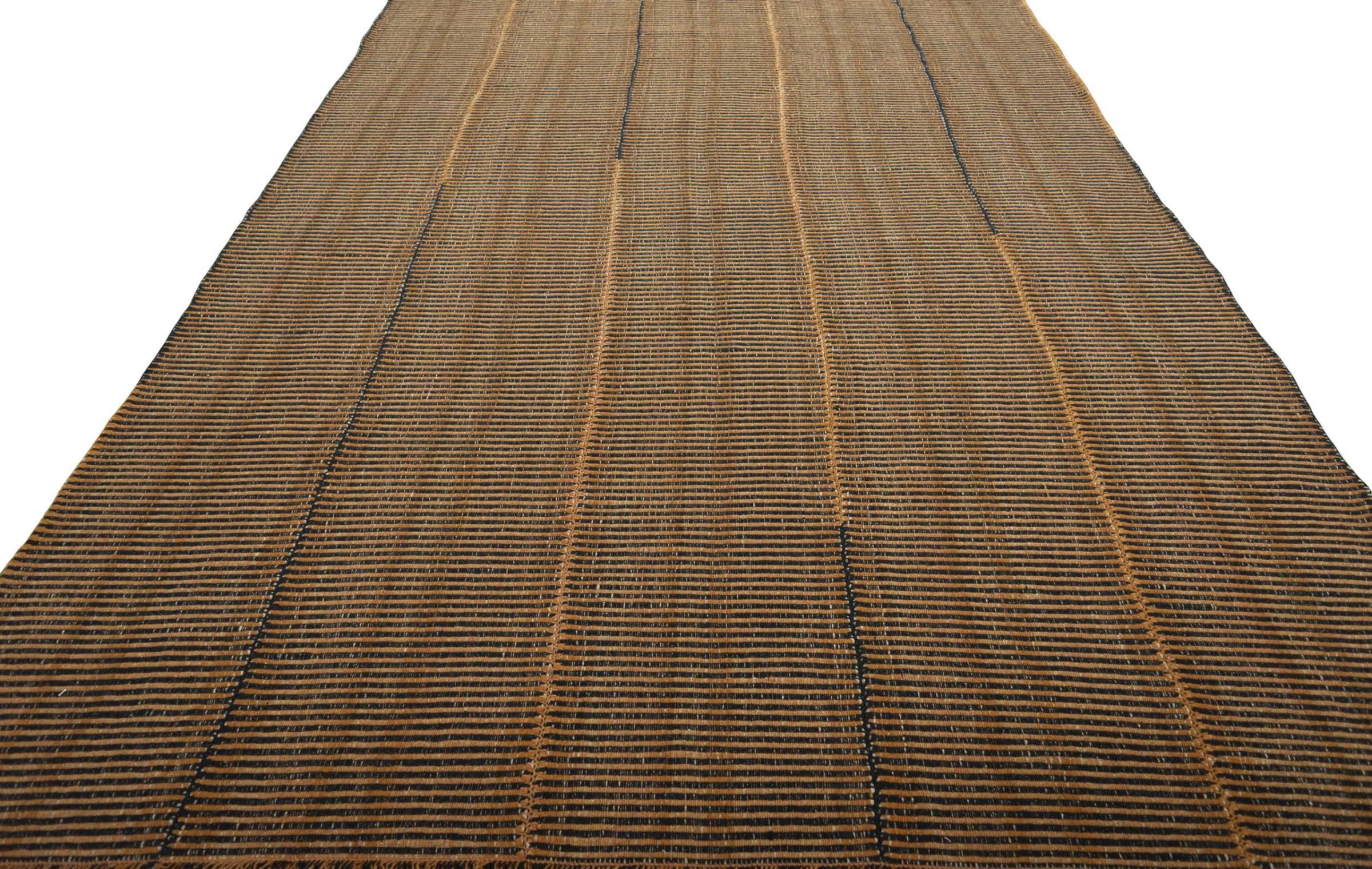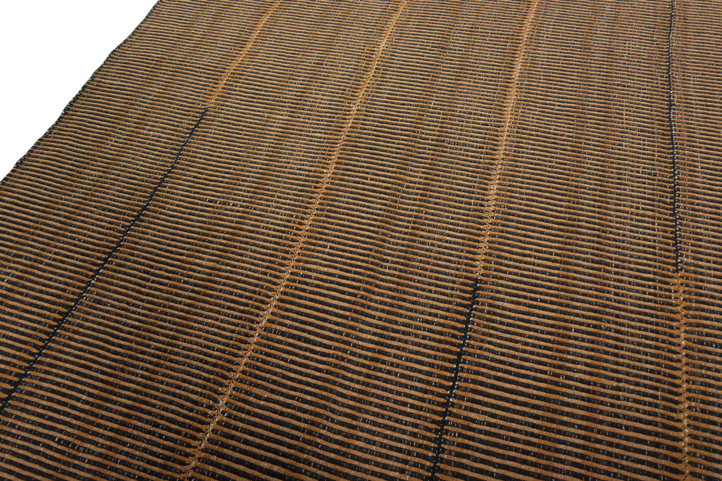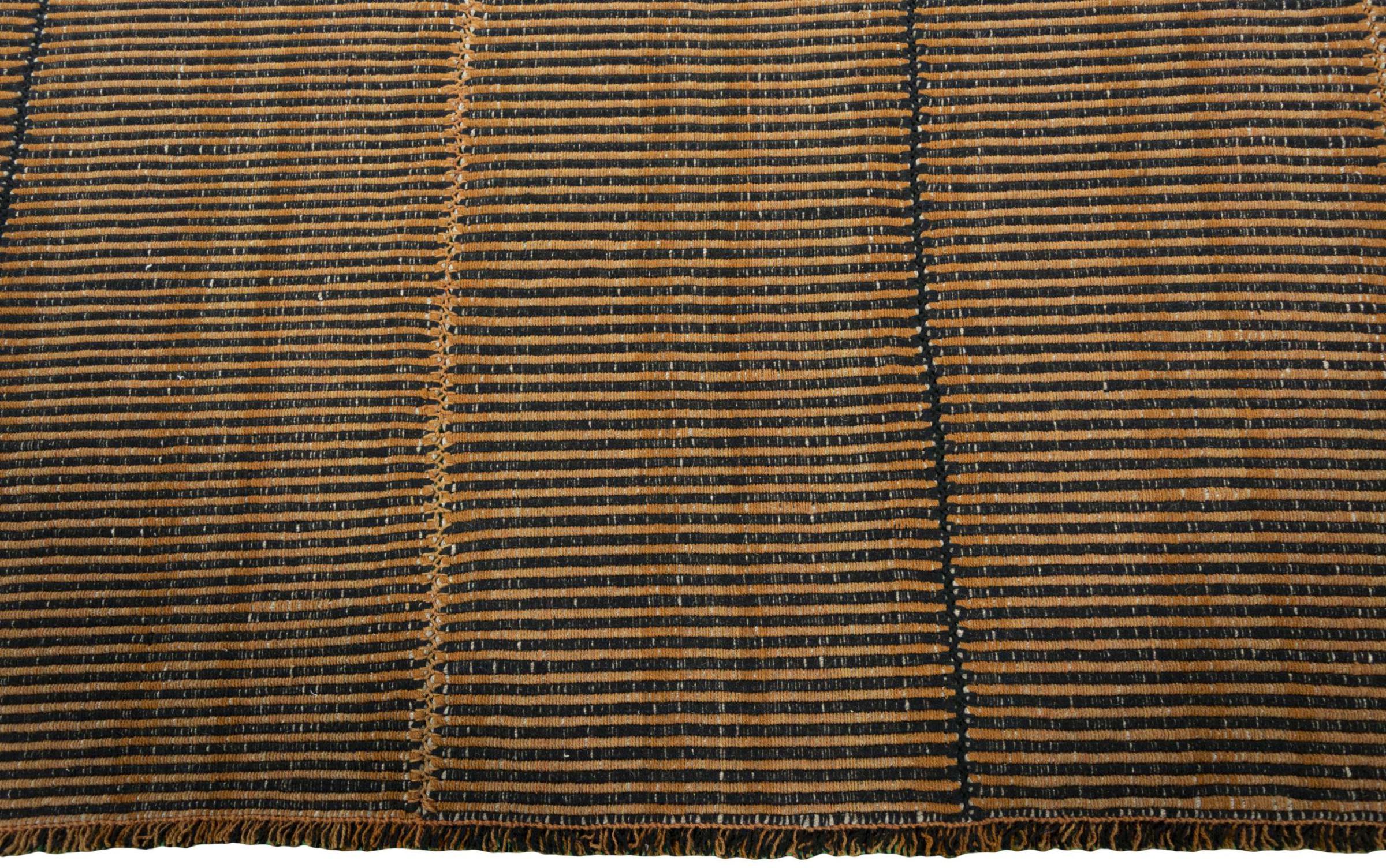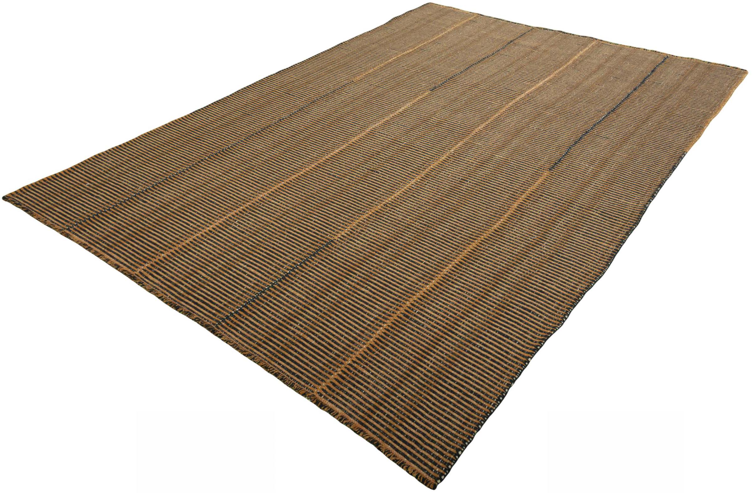 This Elysian rug is a particularly high-quality, modern Kilim with a flat weave. Its wool is spun by hand and woven using traditional Persian techniques with a contemporary design twist. Because of its sturdy and long-lasting quality, it is equally contemporary and timeless, becoming a centerpiece in your home.