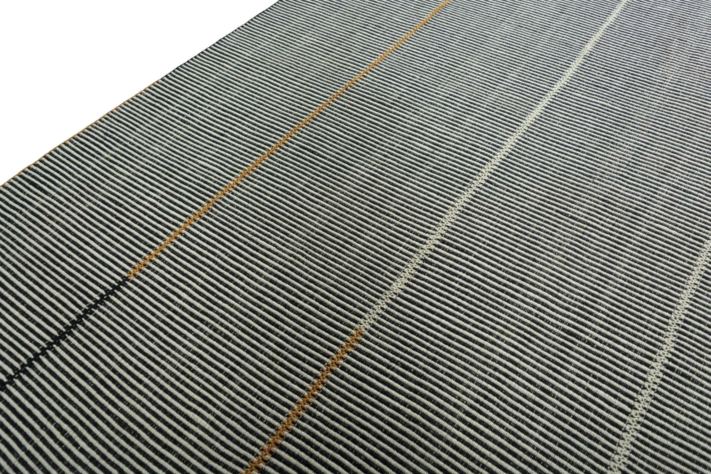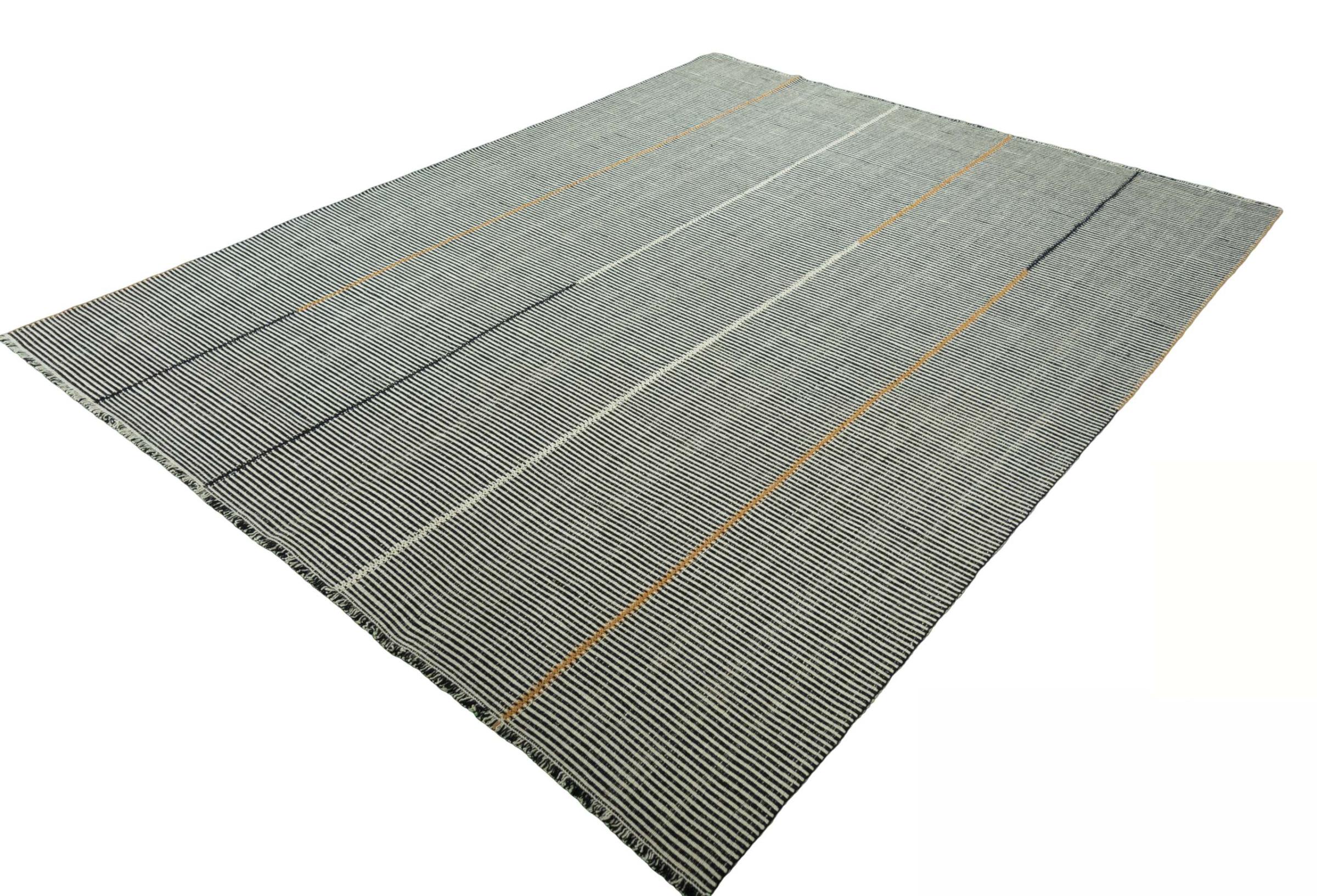This Elysian rug is a particularly high-quality, modern Kilim with a flat weave. Its wool is spun by hand and woven using traditional Persian techniques with a contemporary design twist. Because of its sturdy and long-lasting quality, it is equally contemporary and timeless, becoming a centerpiece in your home.