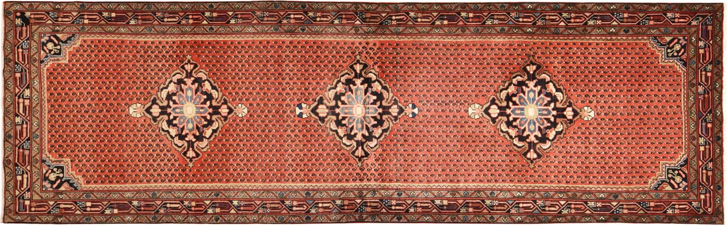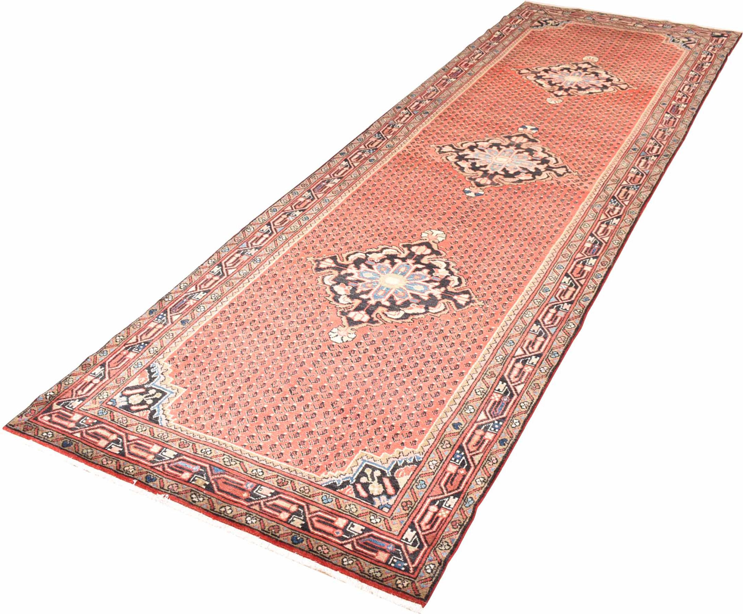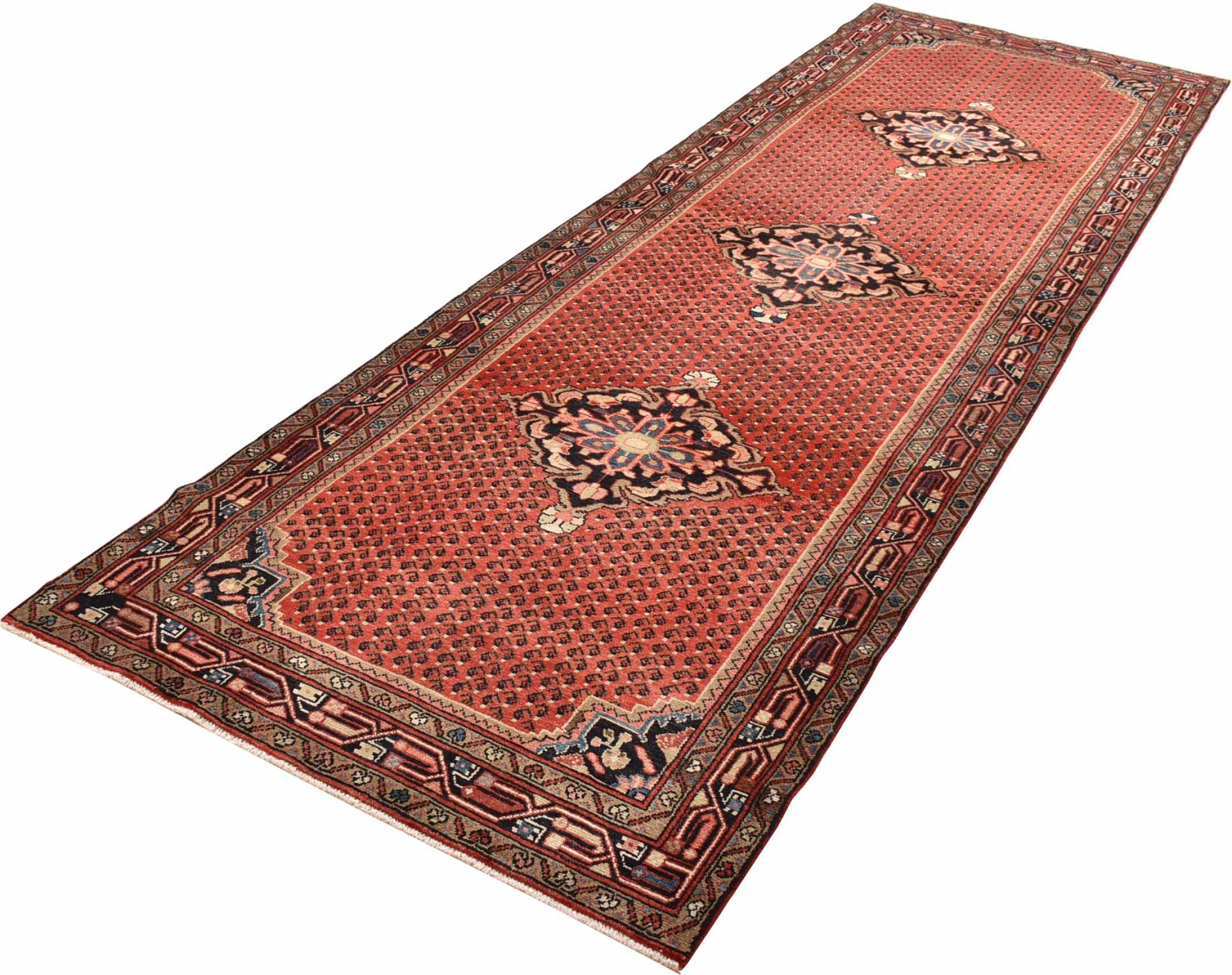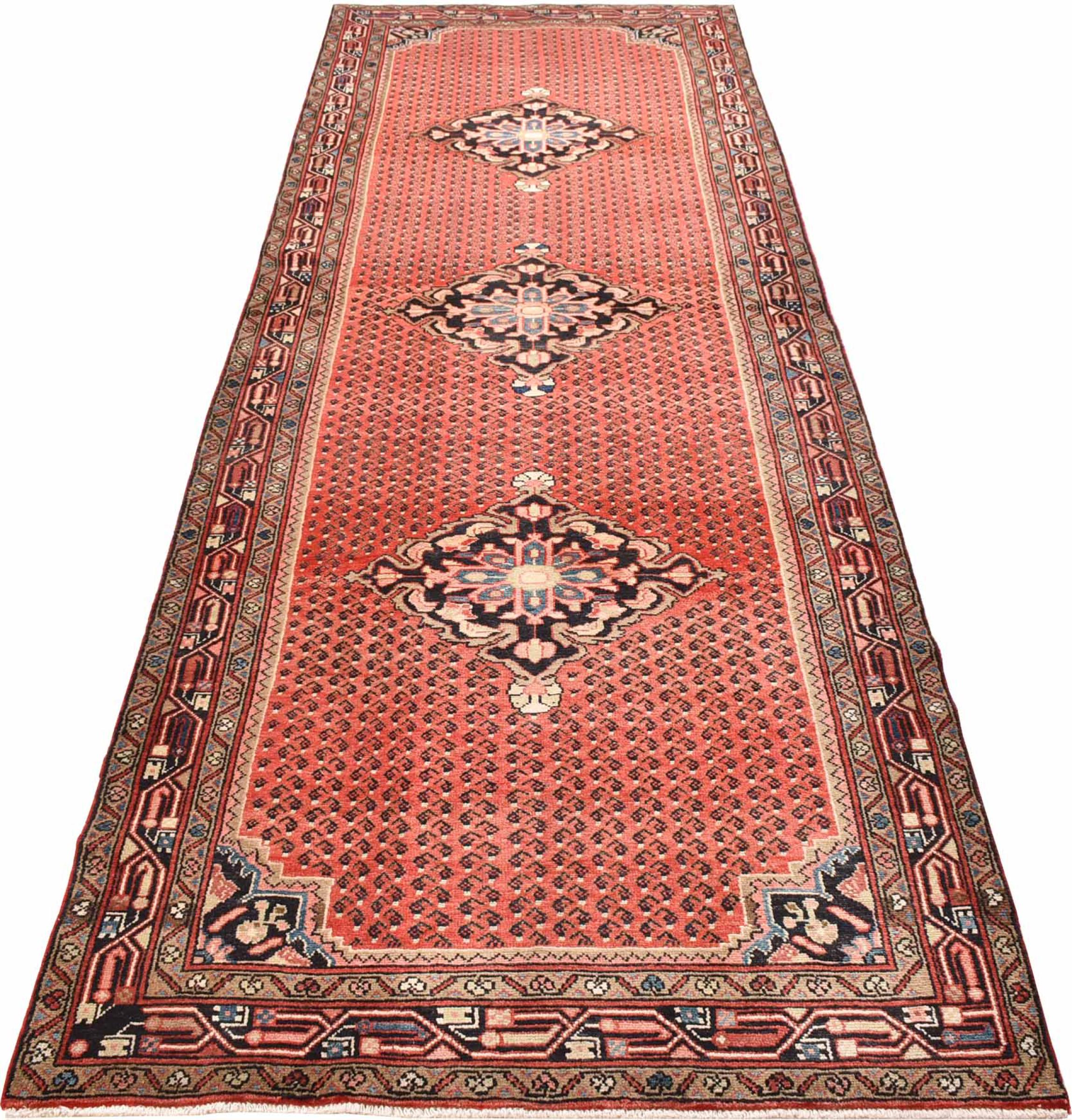 Rug ID: 300886001984500 Size: 12'7"x3'11" ft Thickness: ap. 0.31 in Knot density: 82 - 103 / square inch Manufacturing: Knotted by hand Pile: Handspun wool Warp: Cotton Origin: Persia / Iran Age: New Weight: ap. 31 lb Also know as Injelos, Endjilas, Enjilas Injilas, Indjelas In stock: Unique - Only 1 in stock