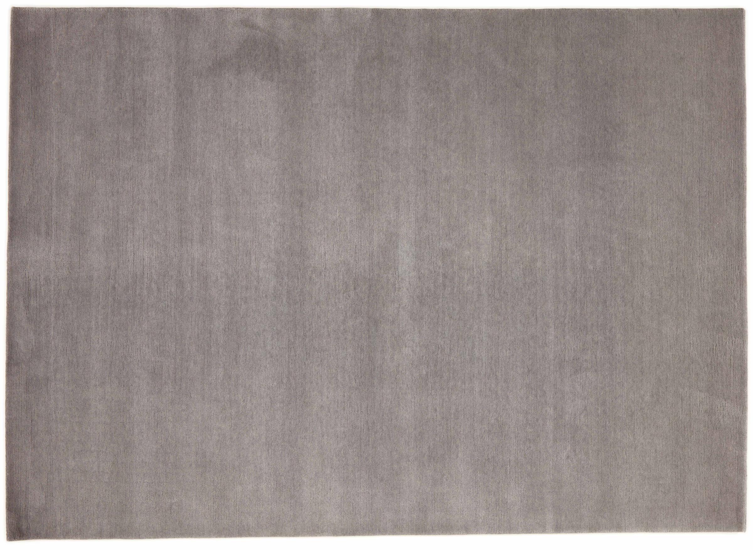 This original hand-knotted Oriental rug, designed in Scandinavian style and made of pure wool / 100% high-quality viscose, embodies functionality in a simple, yet very elegant form. Its surface not only shimmers partly like silk, but its color seamlessly blends into the room.