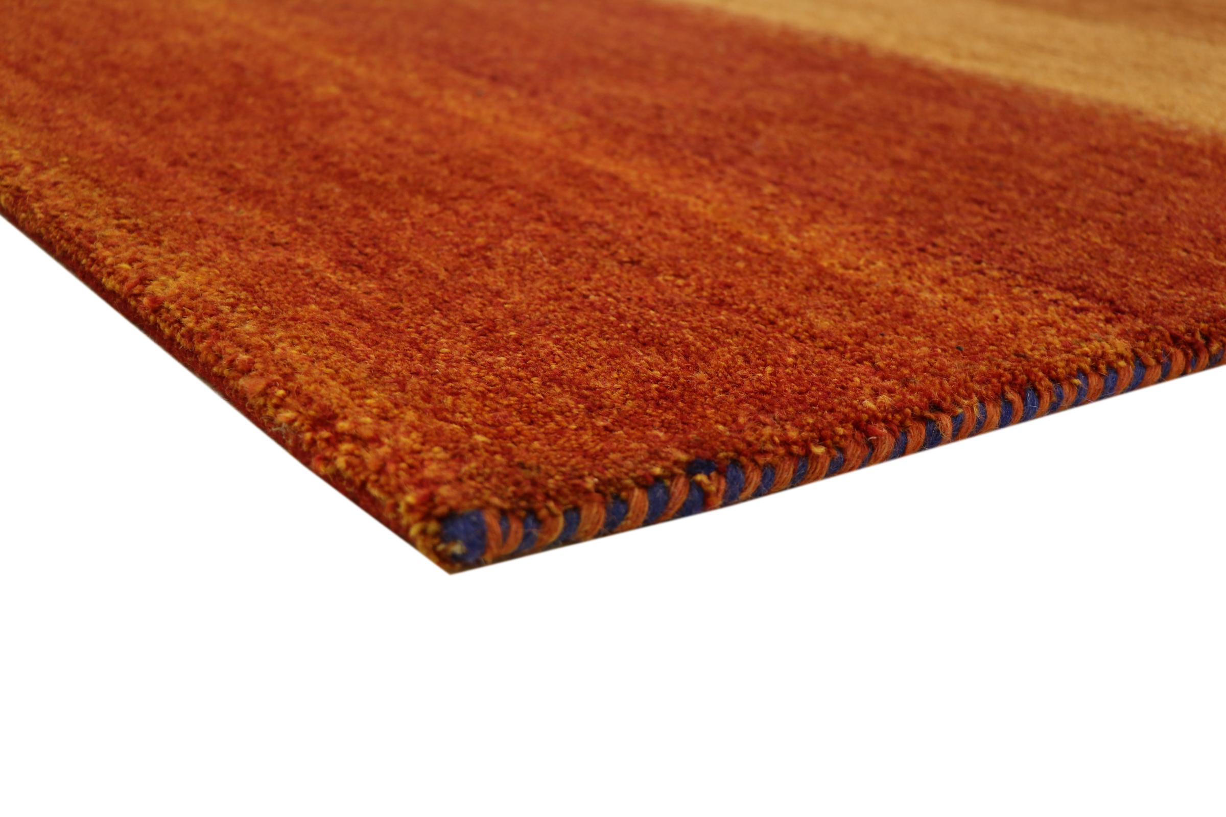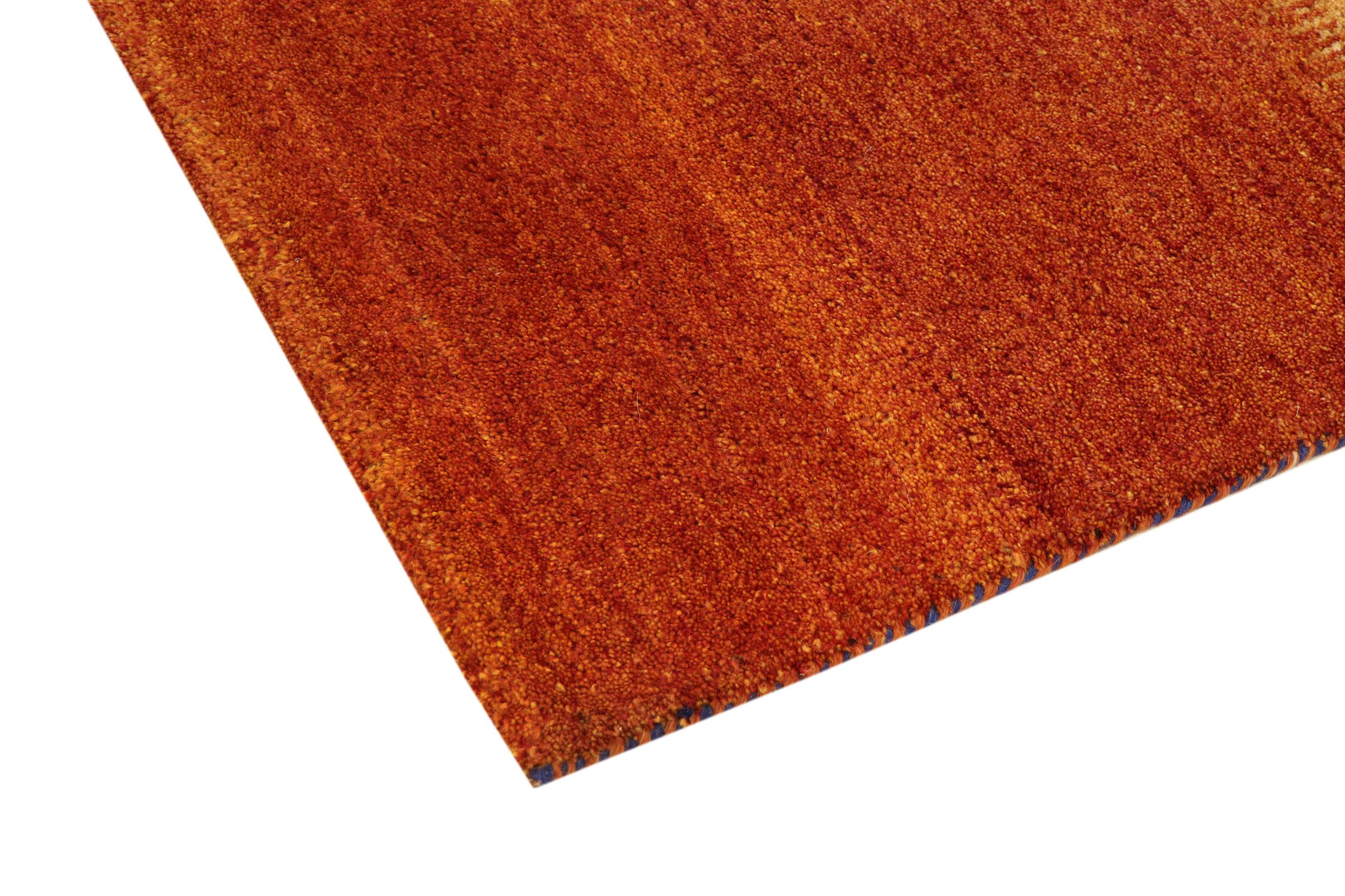 This Gabbeh rug was made by hand in India. Indian Gabbeh carpets are made of soft sheep wool, are comfortable on the feet and have heat insulating properties. Their designs are mostly simple and modern. They were inspired by nomadic tribes who incorporated very simple motifs from their environment (gardens, animals, plants) into their rugs. Indian Gabbeh rugs don't quite come close to the quality of a Persian Gabbeh, but they offer great value for money. Therefore, they make excellent hand-knotted carpets for beginners.