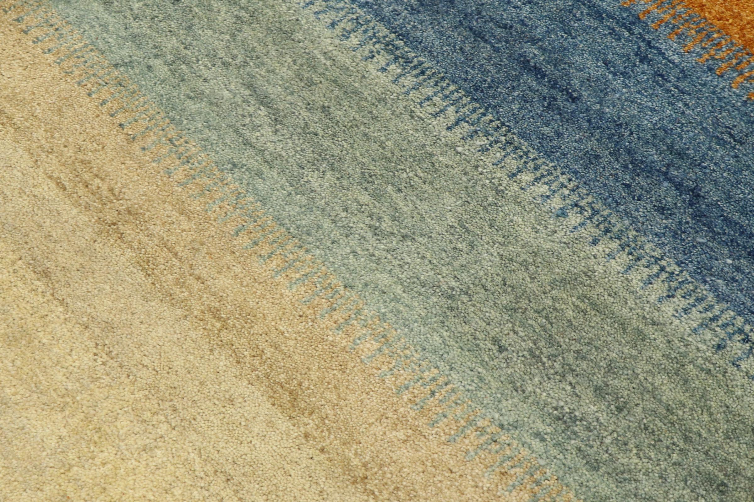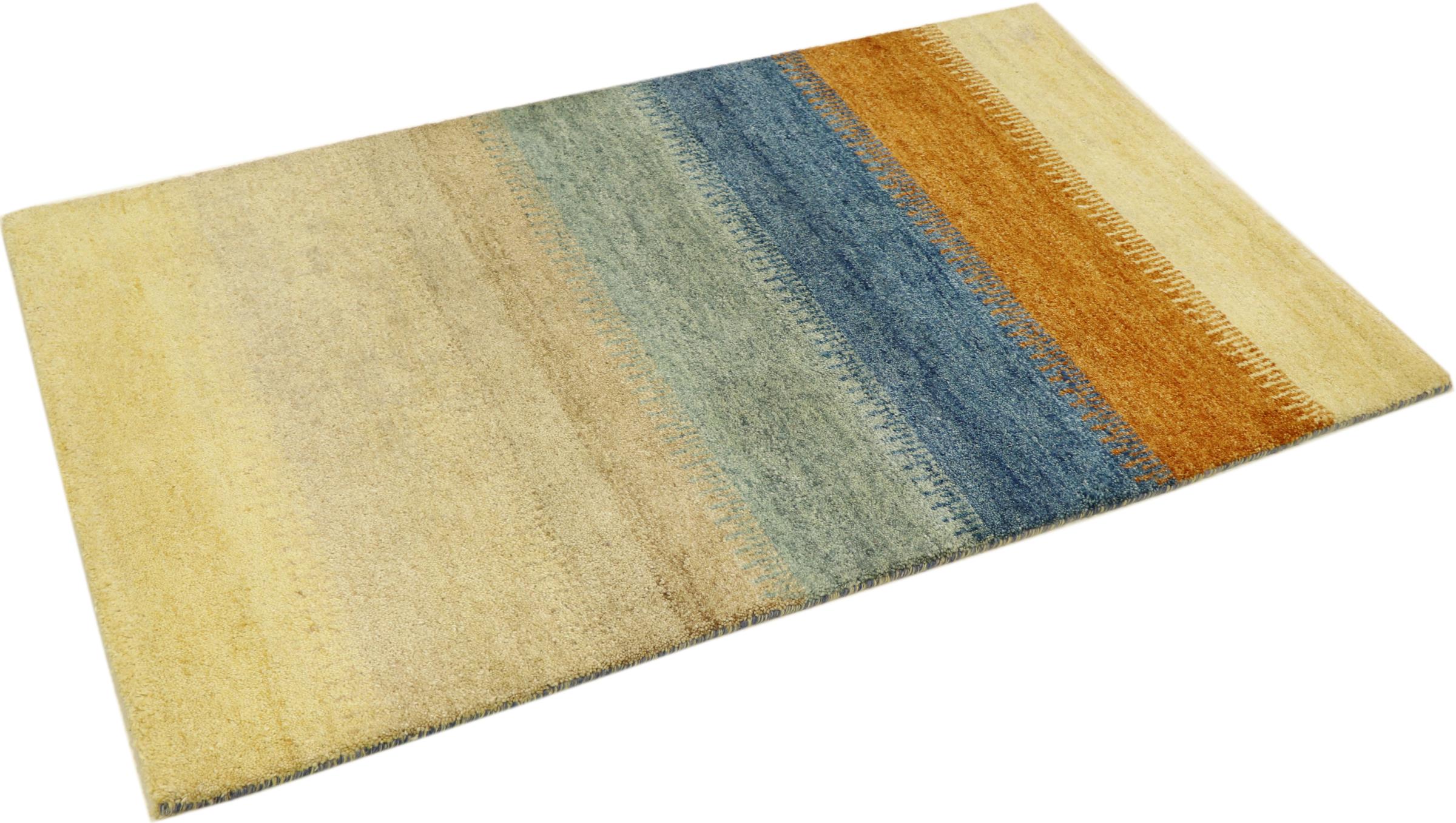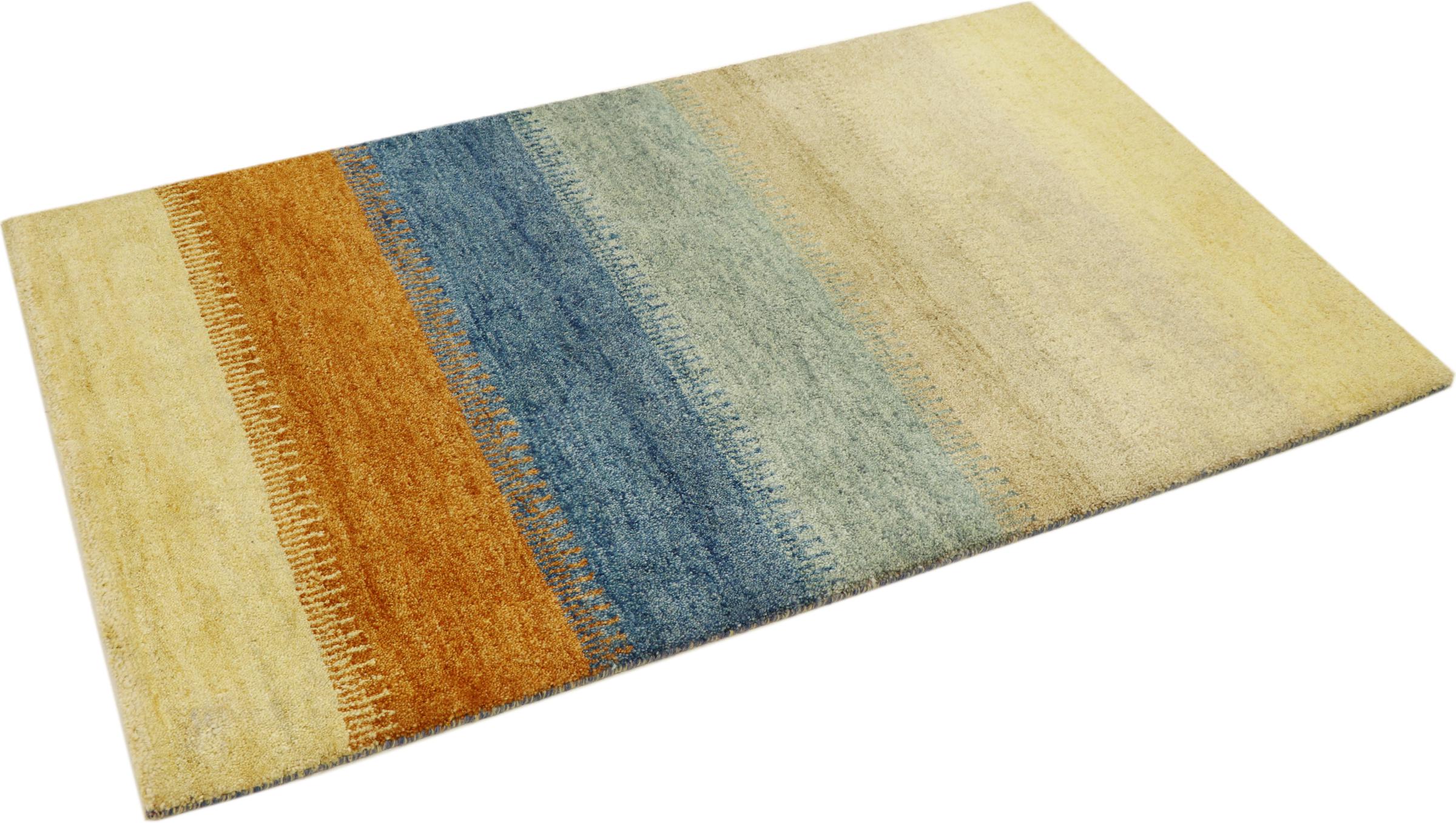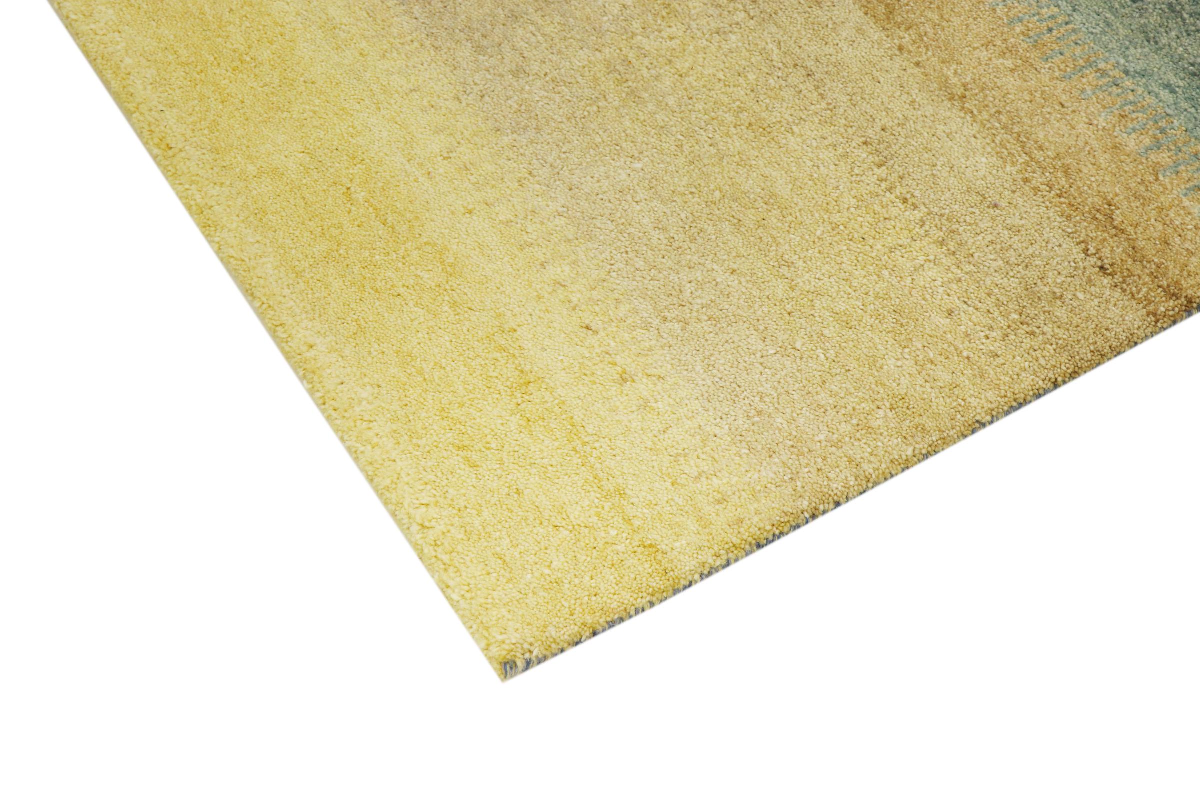 This Gabbeh rug was made by hand in India. Indian Gabbeh carpets are made of soft sheep wool, are comfortable on the feet and have heat insulating properties. Their designs are mostly simple and modern. They were inspired by nomadic tribes who incorporated very simple motifs from their environment (gardens, animals, plants) into their rugs. Indian Gabbeh rugs don't quite come close to the quality of a Persian Gabbeh, but they offer great value for money. Therefore, they make excellent hand-knotted carpets for beginners.