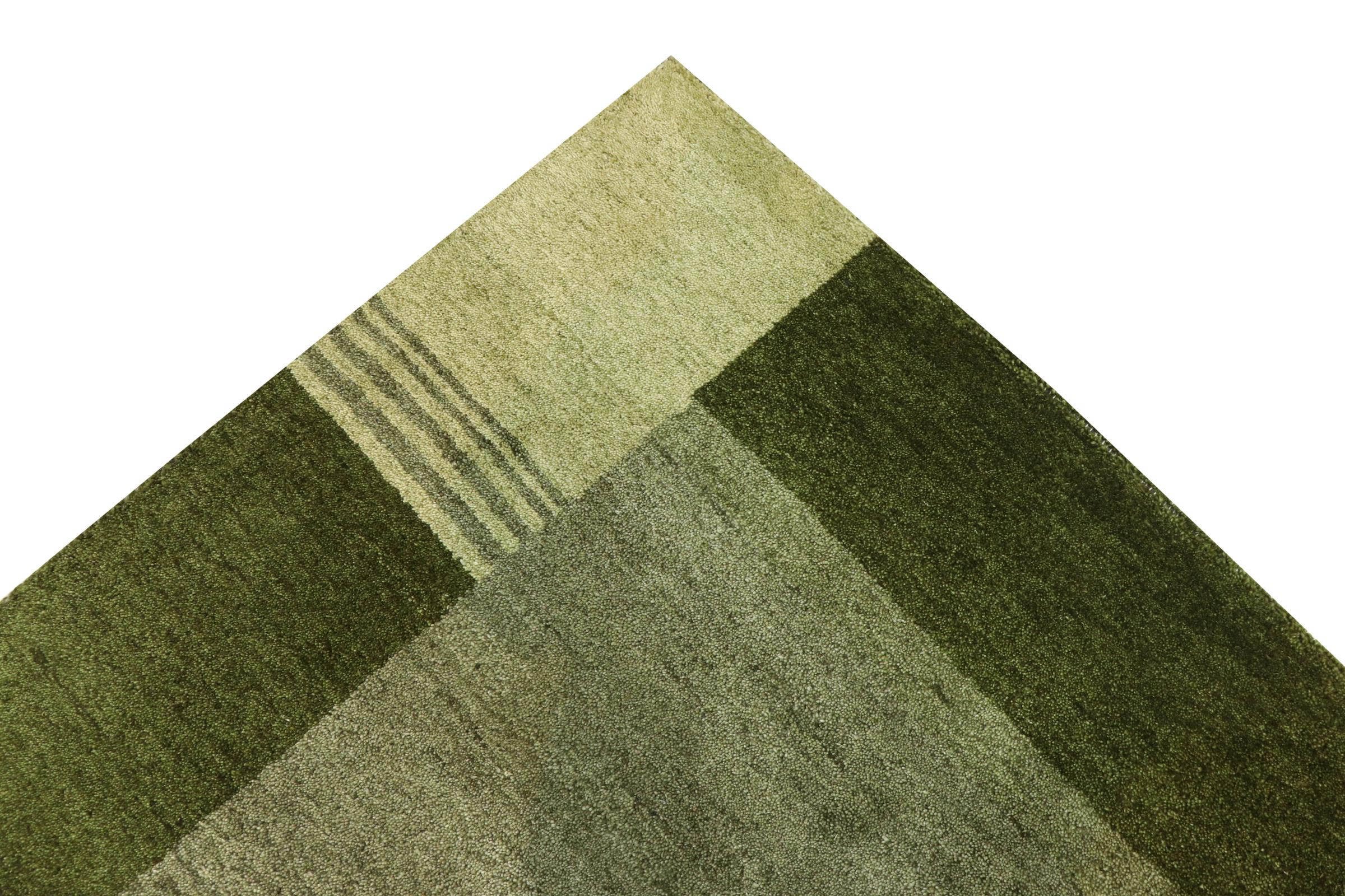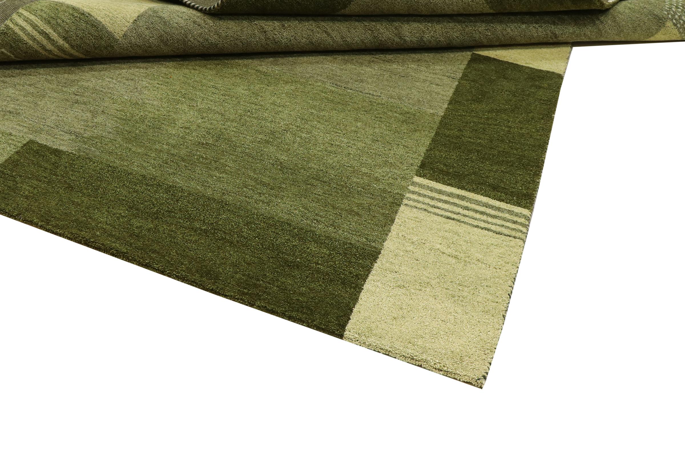 This Gabbeh rug was made by hand in India. Indian Gabbeh carpets are made of soft sheep wool, are comfortable on the feet and have heat insulating properties. Their designs are mostly simple and modern. They were inspired by nomadic tribes who incorporated very simple motifs from their environment (gardens, animals, plants) into their rugs. Indian Gabbeh rugs don't quite come close to the quality of a Persian Gabbeh, but they offer great value for money. Therefore, they make excellent hand-knotted carpets for beginners.