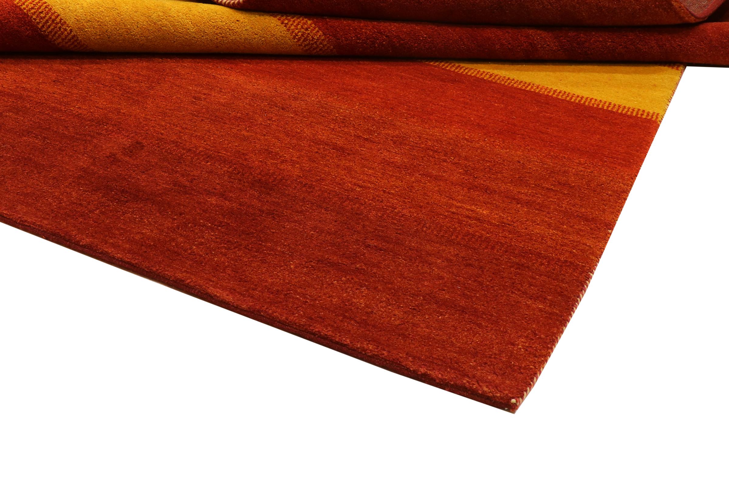 This Gabbeh rug was made by hand in India. Indian Gabbeh carpets are made of soft sheep wool, are comfortable on the feet and have heat insulating properties. Their designs are mostly simple and modern. They were inspired by nomadic tribes who incorporated very simple motifs from their environment (gardens, animals, plants) into their rugs. Indian Gabbeh rugs don't quite come close to the quality of a Persian Gabbeh, but they offer great value for money. Therefore, they make excellent hand-knotted carpets for beginners.