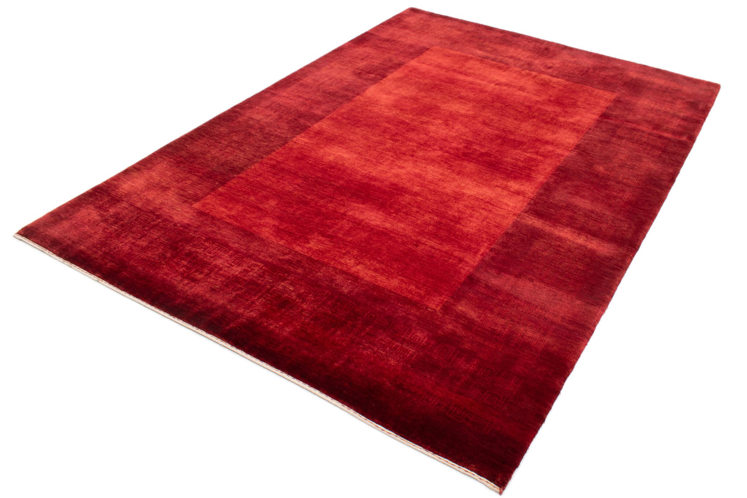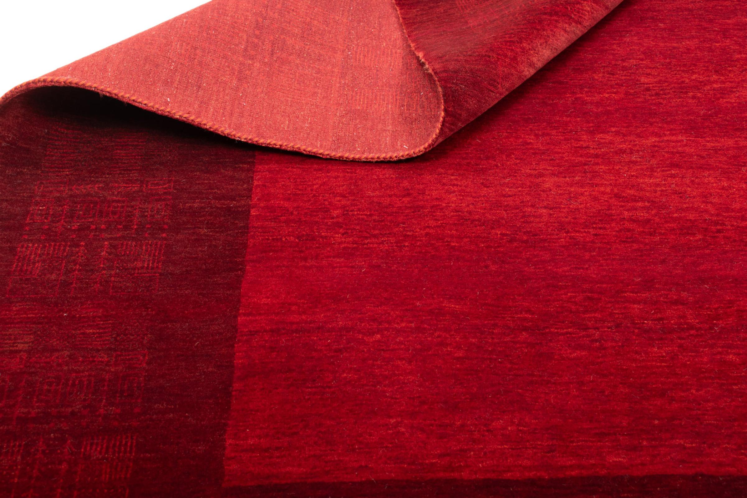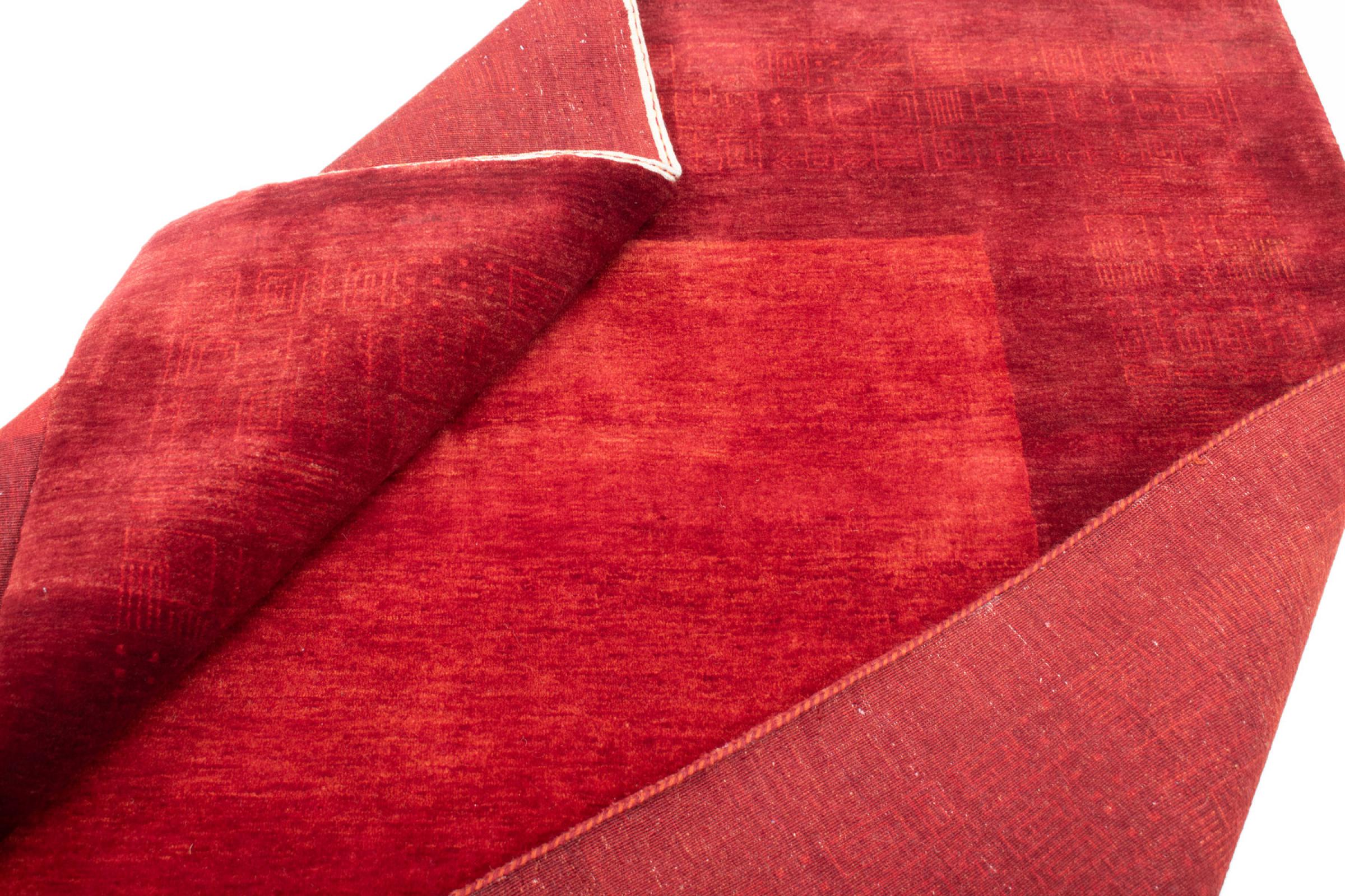 This Gabbeh rug was made by hand in India. Indian Gabbeh carpets are made of soft sheep wool, are comfortable on the feet and have heat insulating properties. Their designs are mostly simple and modern. They were inspired by nomadic tribes who incorporated very simple motifs from their environment (gardens, animals, plants) into their rugs. Indian Gabbeh rugs don't quite come close to the quality of a Persian Gabbeh, but they offer great value for money. Therefore, they make excellent hand-knotted carpets for beginners.