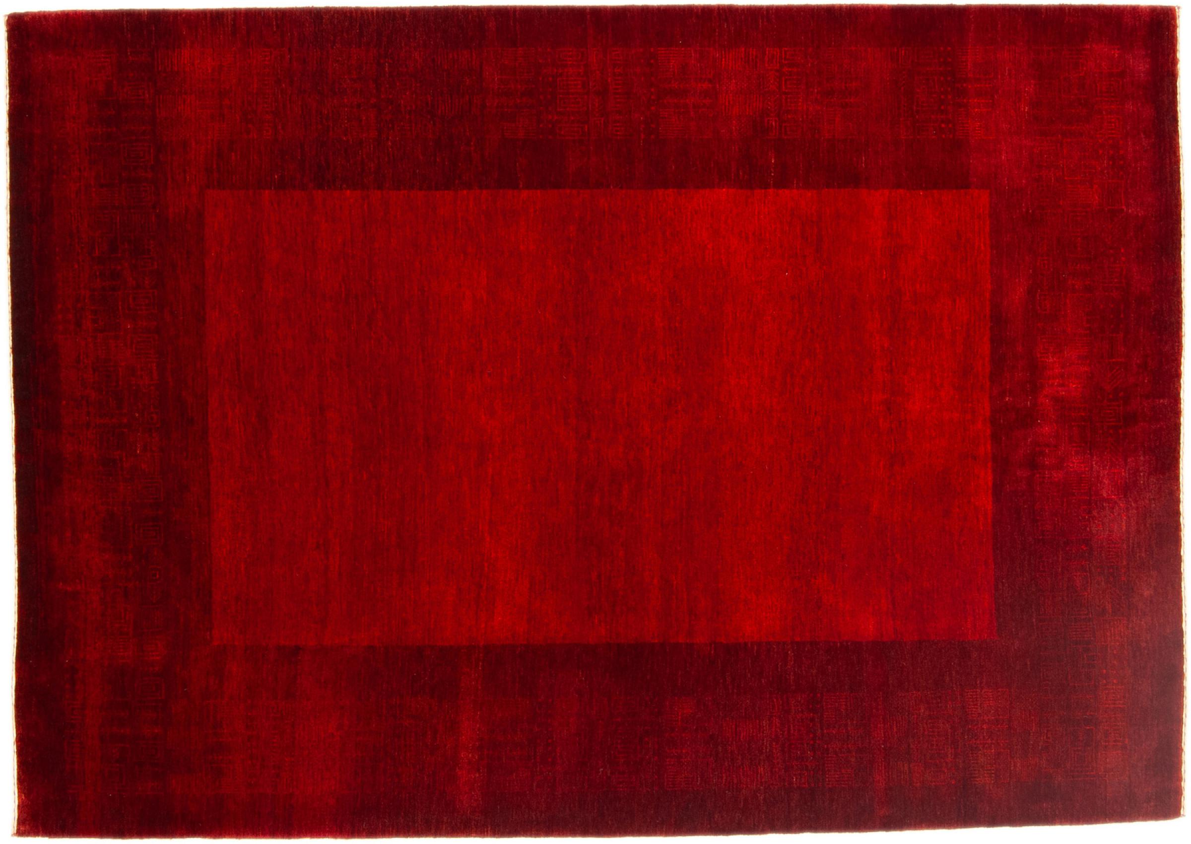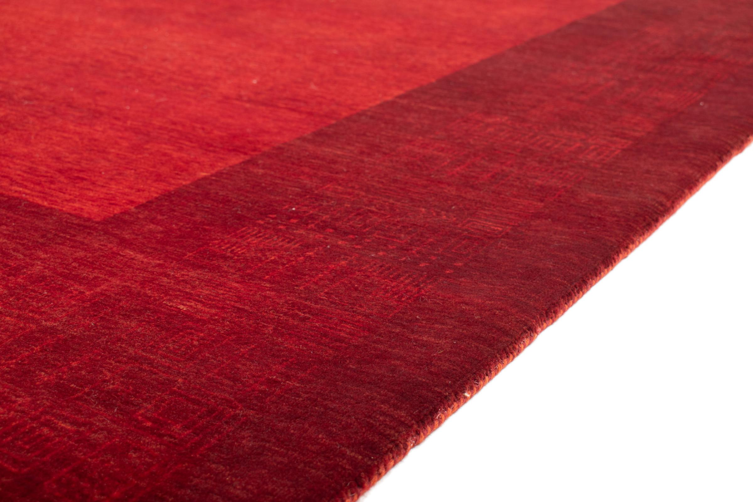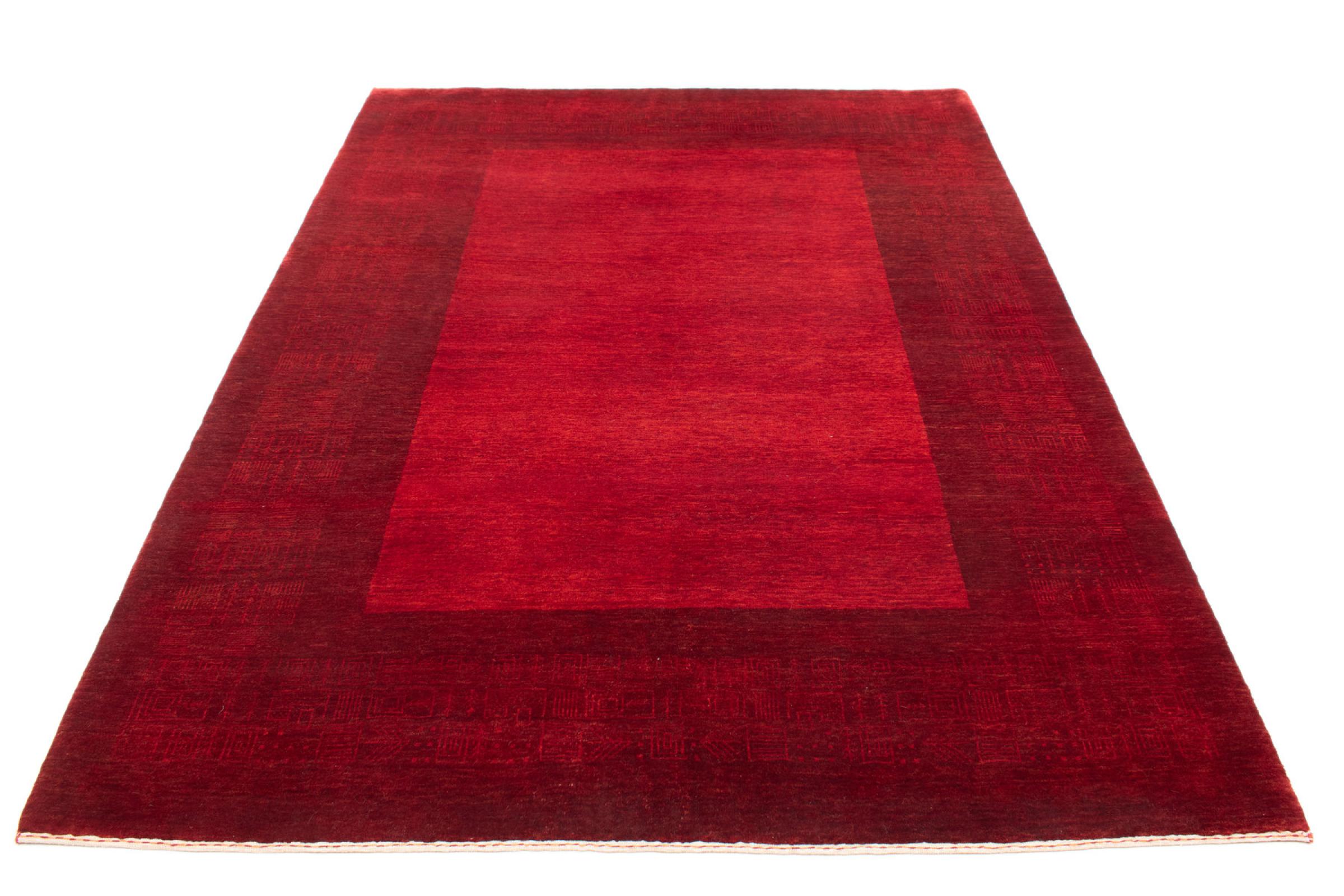 This Gabbeh rug was made by hand in India. Indian Gabbeh carpets are made of soft sheep wool, are comfortable on the feet and have heat insulating properties. Their designs are mostly simple and modern. They were inspired by nomadic tribes who incorporated very simple motifs from their environment (gardens, animals, plants) into their rugs. Indian Gabbeh rugs don't quite come close to the quality of a Persian Gabbeh, but they offer great value for money. Therefore, they make excellent hand-knotted carpets for beginners.