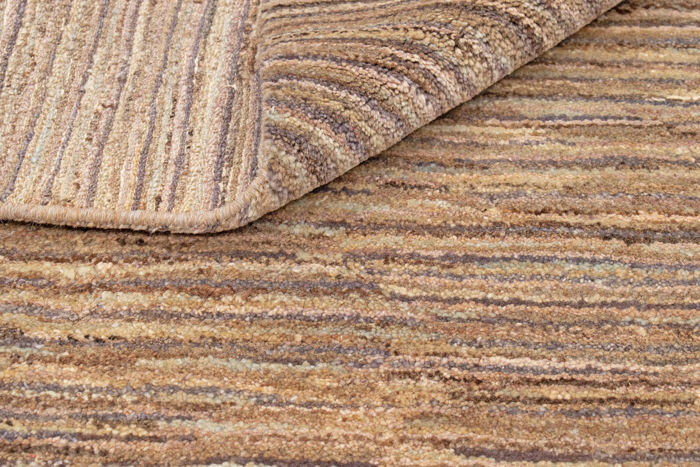 This Gabbeh rug was made by hand in India. Indian Gabbeh carpets are made of soft sheep wool, are comfortable on the feet and have heat insulating properties. Their designs are mostly simple and modern. They were inspired by nomadic tribes who incorporated very simple motifs from their environment (gardens, animals, plants) into their rugs. Indian Gabbeh rugs don't quite come close to the quality of a Persian Gabbeh, but they offer great value for money. Therefore, they make excellent hand-knotted carpets for beginners.
