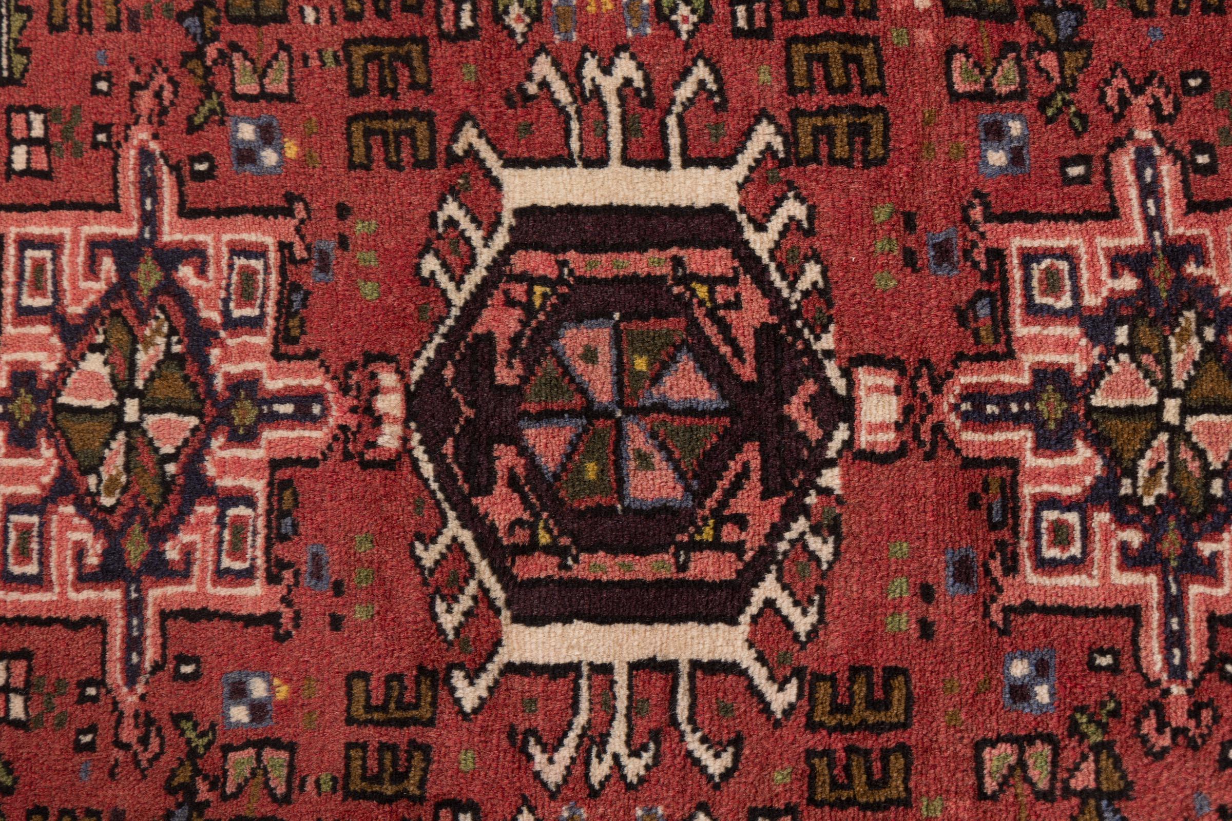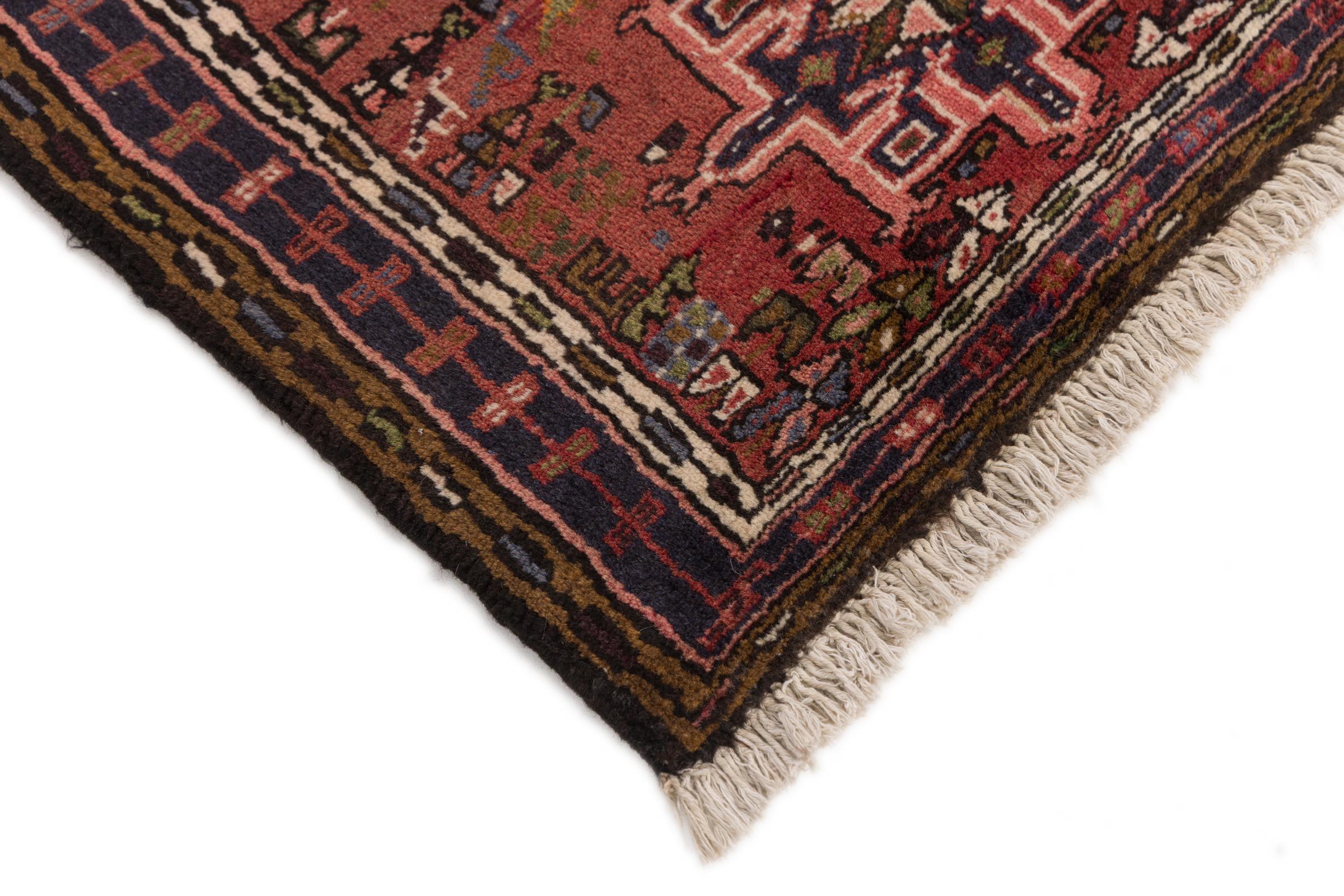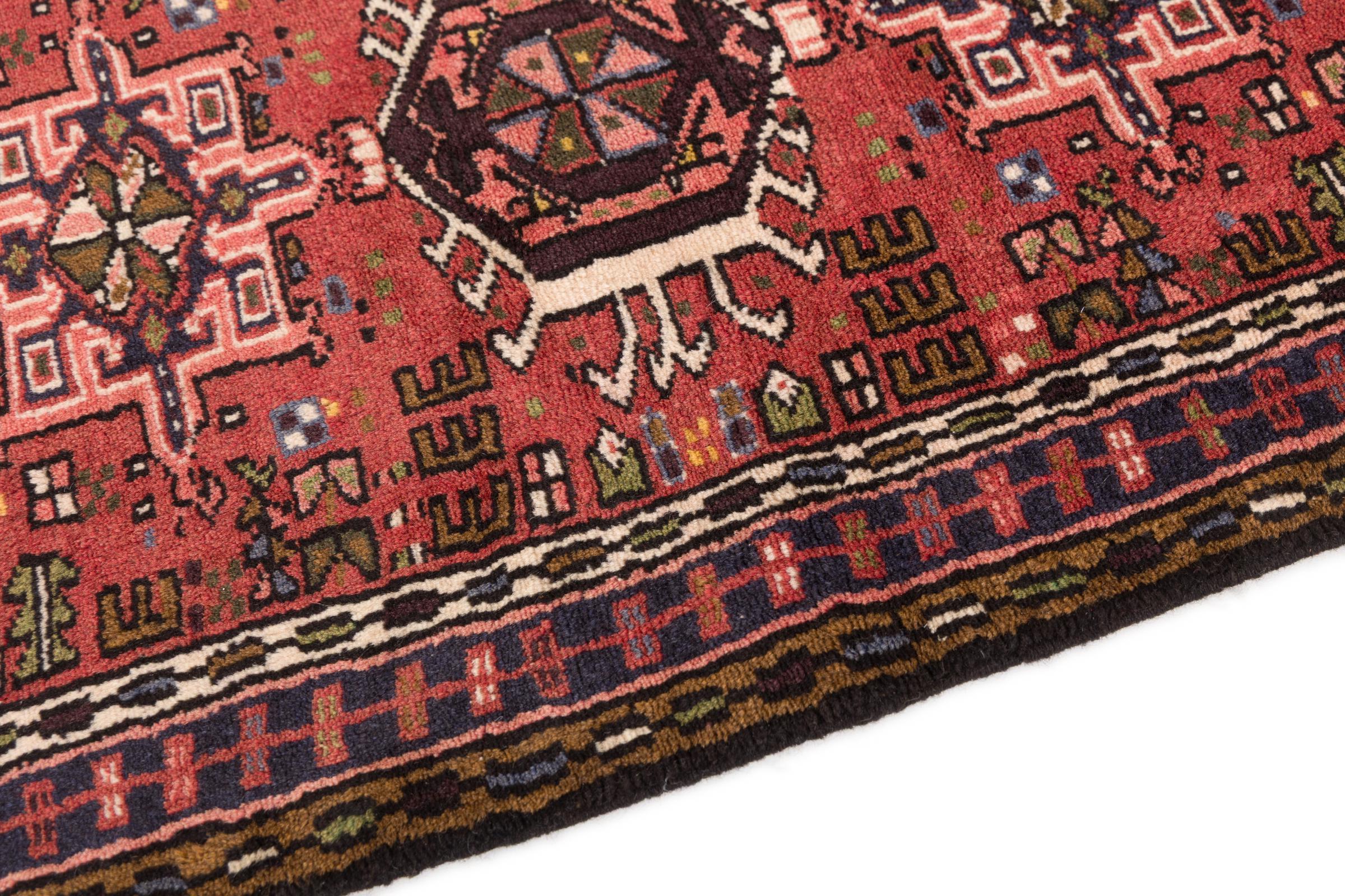 This carpet belongs to the village and nomadic carpets from Iran, the former Persia. This kind of carpets is hand knotted in smaller towns and villages in ancient tradition. Even nomads still knot Persian carpets in the open air. The carpets are knotted without a draft and entirely from memory. They are characterized by classical ornaments arranged in linear and geometric patterns. Thanks to their cultural and traditional origins, these rugs possess a unique character that embodies ancient Persia.