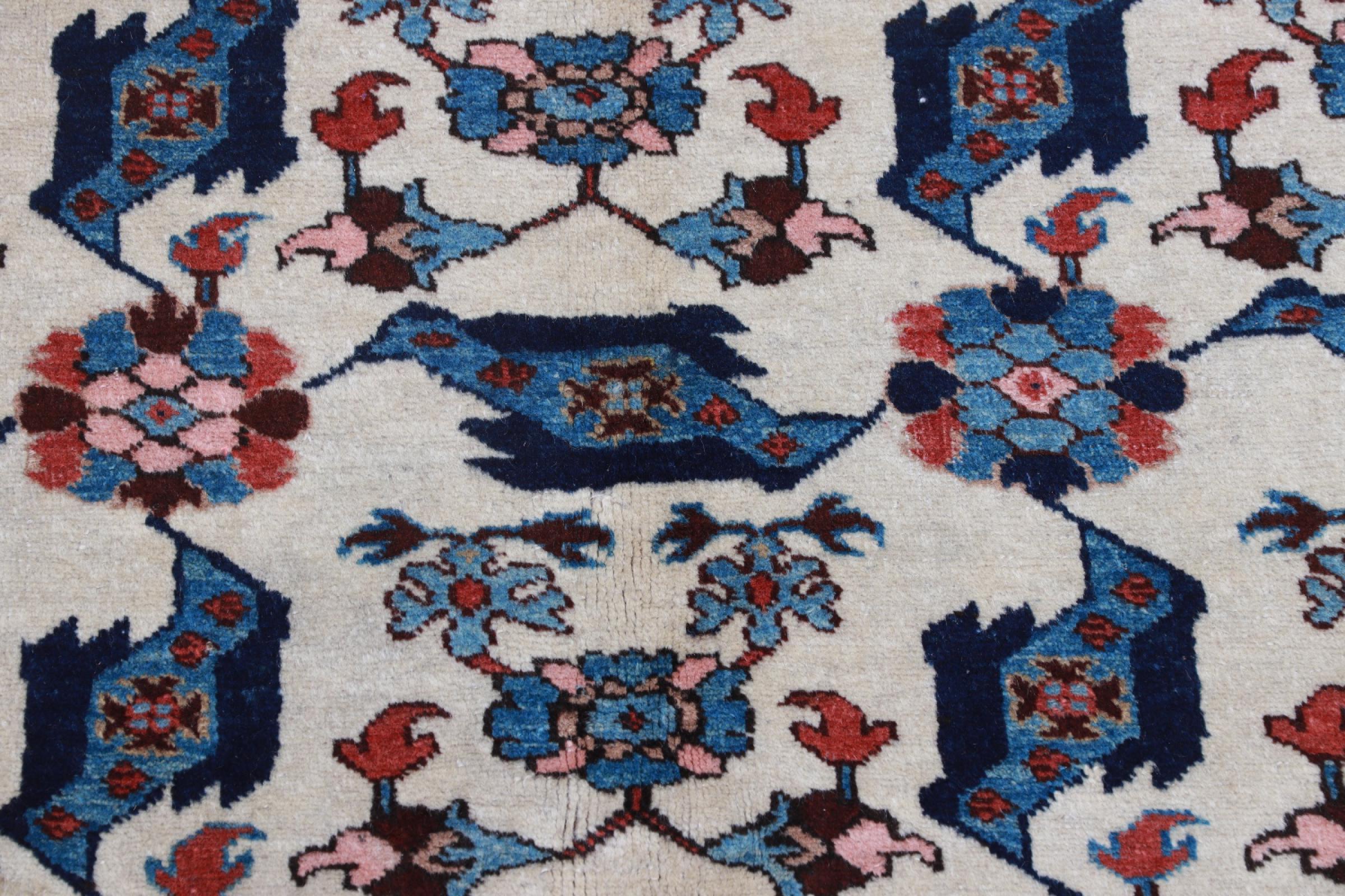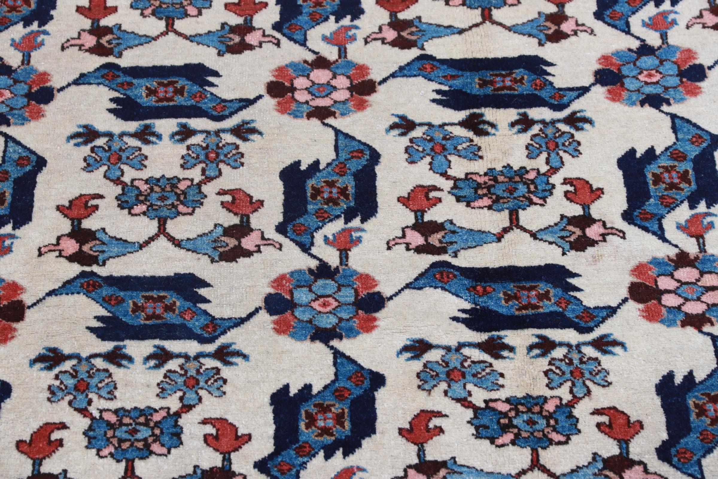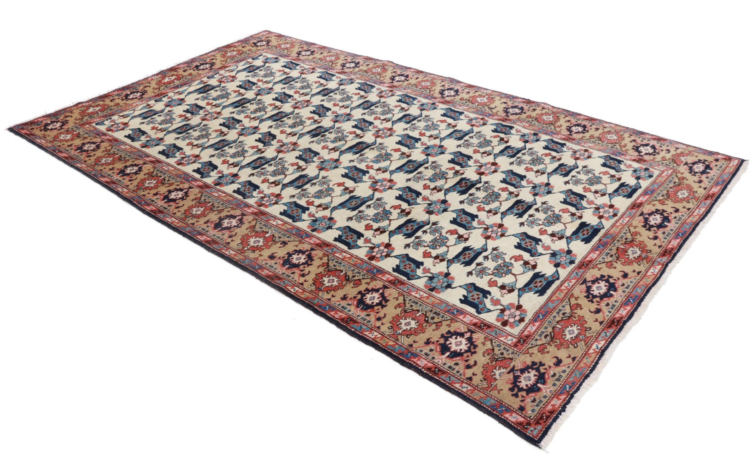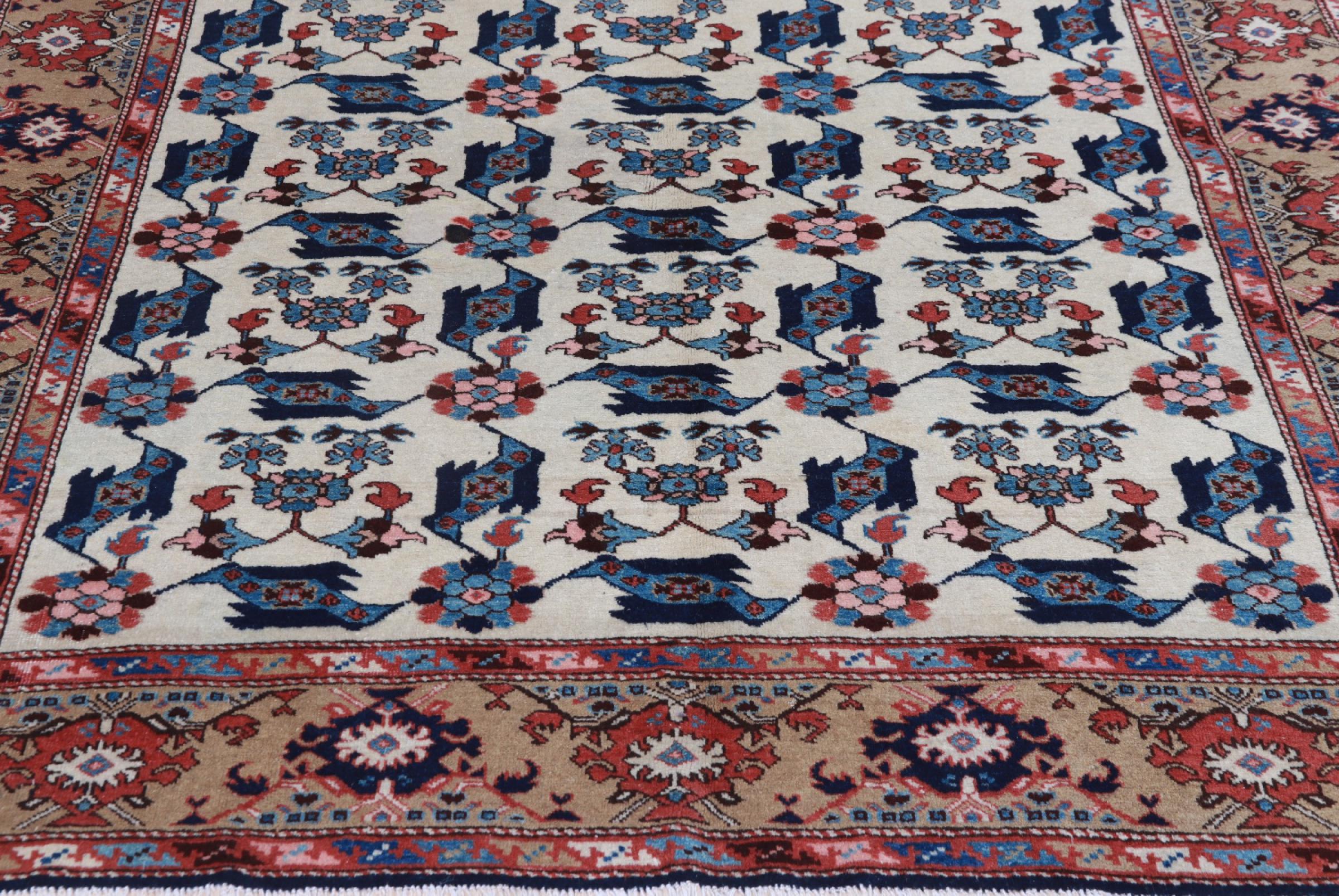 Rug ID: 224341004693001 Size: 9'1"x5'5" ft Thickness: ap. 0.31 in Knot density: 103 - 129 / square inch Manufacturing: Knotted by hand Pile: Handspun wool Warp: Cotton Origin: Persia / Iran Age: Old/Semi antique, over 50 years Weight: ap. 40 lb In stock: Unique - Only 1 in stock