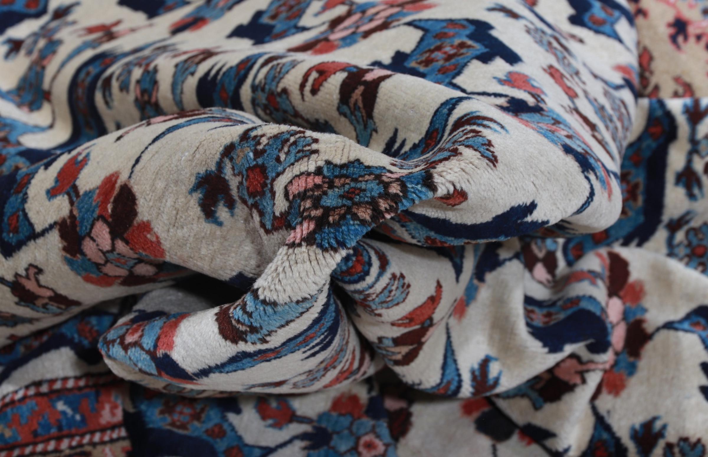 This rug is made of hand spun sheep wool of the highest quality. Especially in Iran (former Persia), Afghanistan and Pakistan wool is still spun by hand before the actual knotting of the rug begins. Wool has proven itself as a natural and extremely hard-wearing material over centuries. Among other things, it has dirt-repellent and heat-insulating properties. At the same time, wool is incomparably soft and has a natural shine.