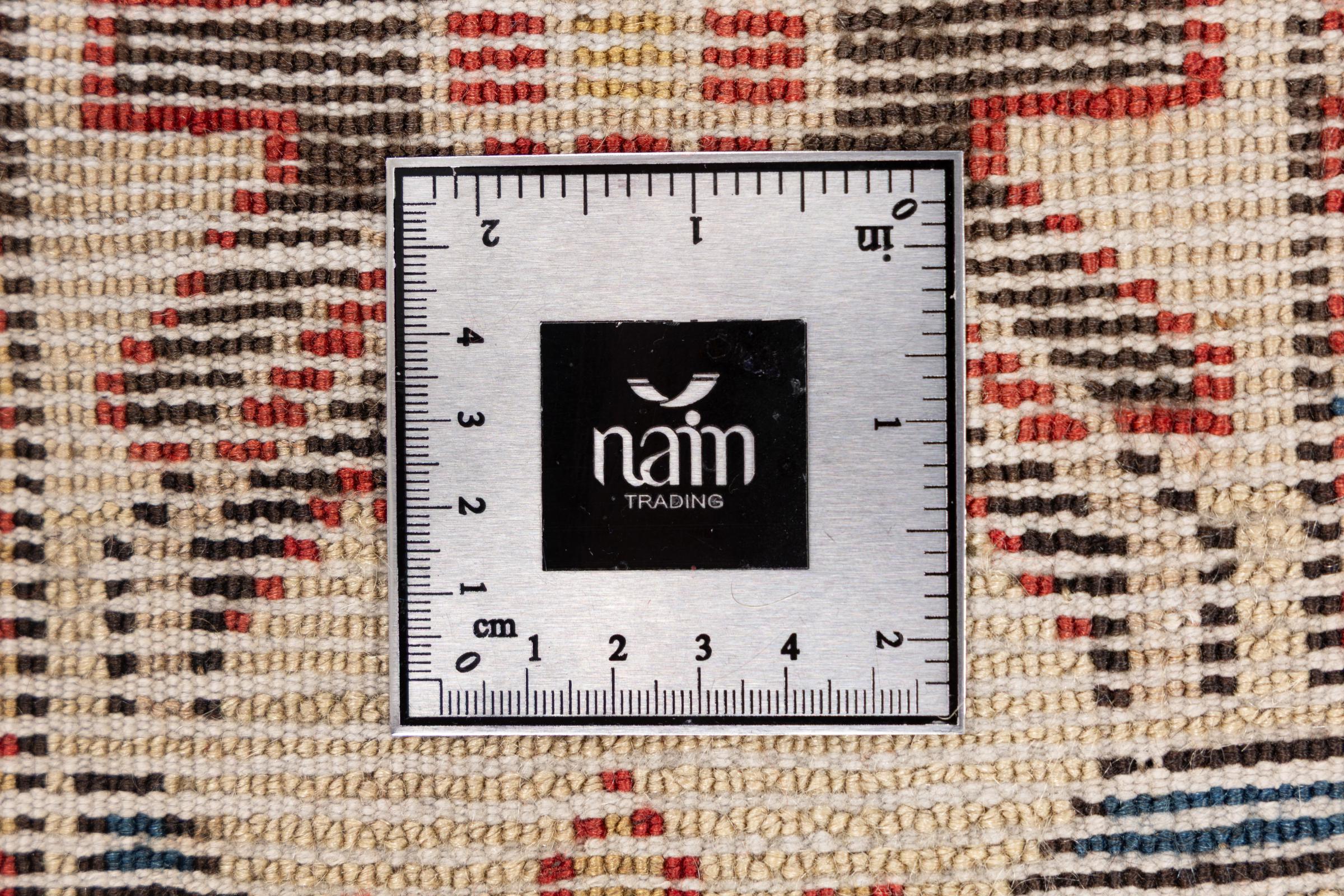 This carpet belongs to the village and nomadic carpets from Iran, the former Persia. This kind of carpets is hand knotted in smaller towns and villages in ancient tradition. Even nomads still knot Persian carpets in the open air. The carpets are knotted without a draft and entirely from memory. They are characterized by classical ornaments arranged in linear and geometric patterns. Thanks to their cultural and traditional origins, these rugs possess a unique character that embodies ancient Persia.