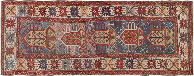 Rug ID: 29894700647 Size: 8'6"x3'7" ft Thickness: ap. 0.47 in Knot density: 129 - 161 / square inch Manufacturing: Knotted by hand Pile: Handspun wool Warp: Sheep wool Condition / Conservation: Perfect Origin: Persia / Iran Age: Antique, over 80 years Weight: ap. 22 lb In stock: Unique - Only 1 in stock