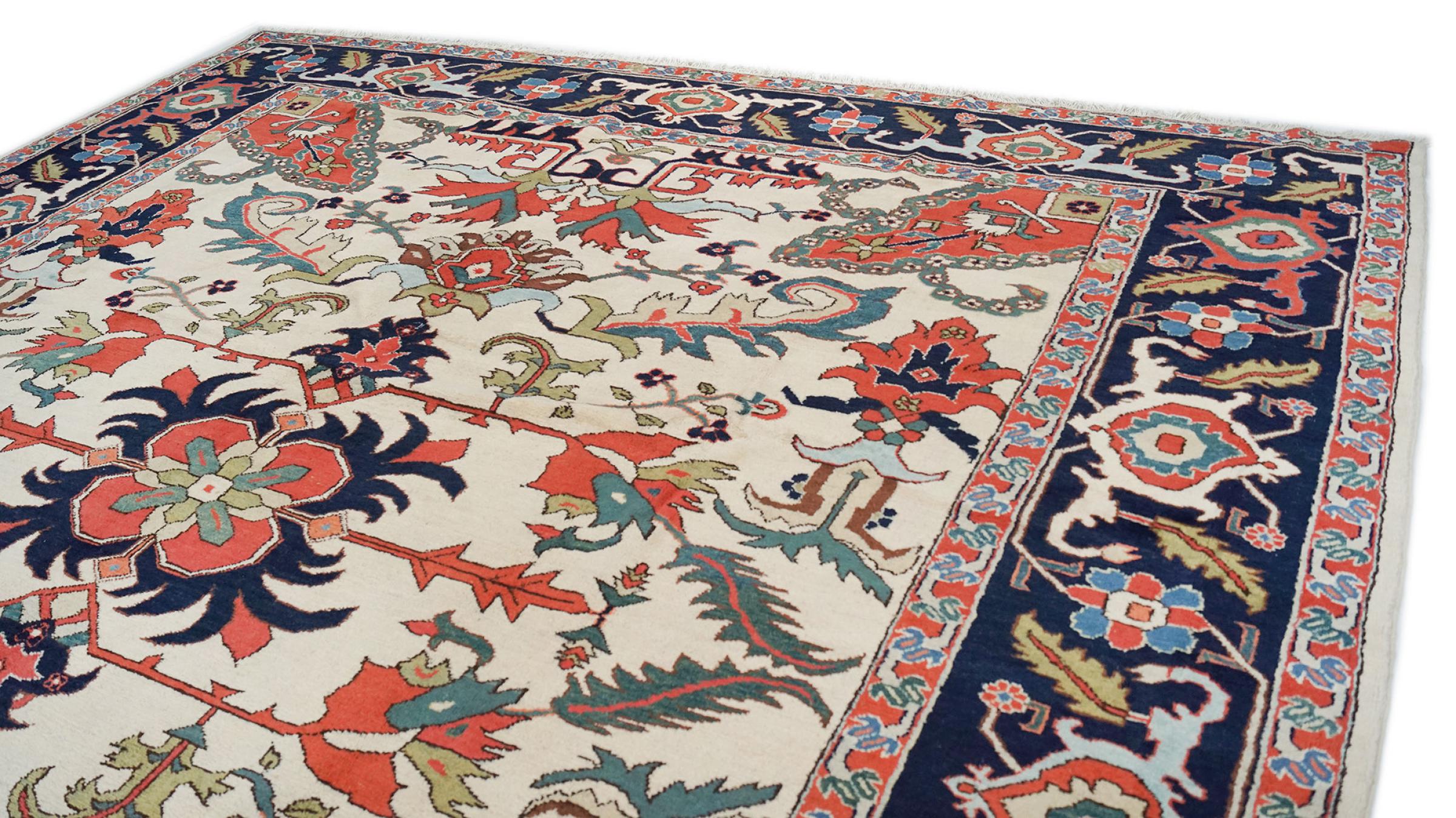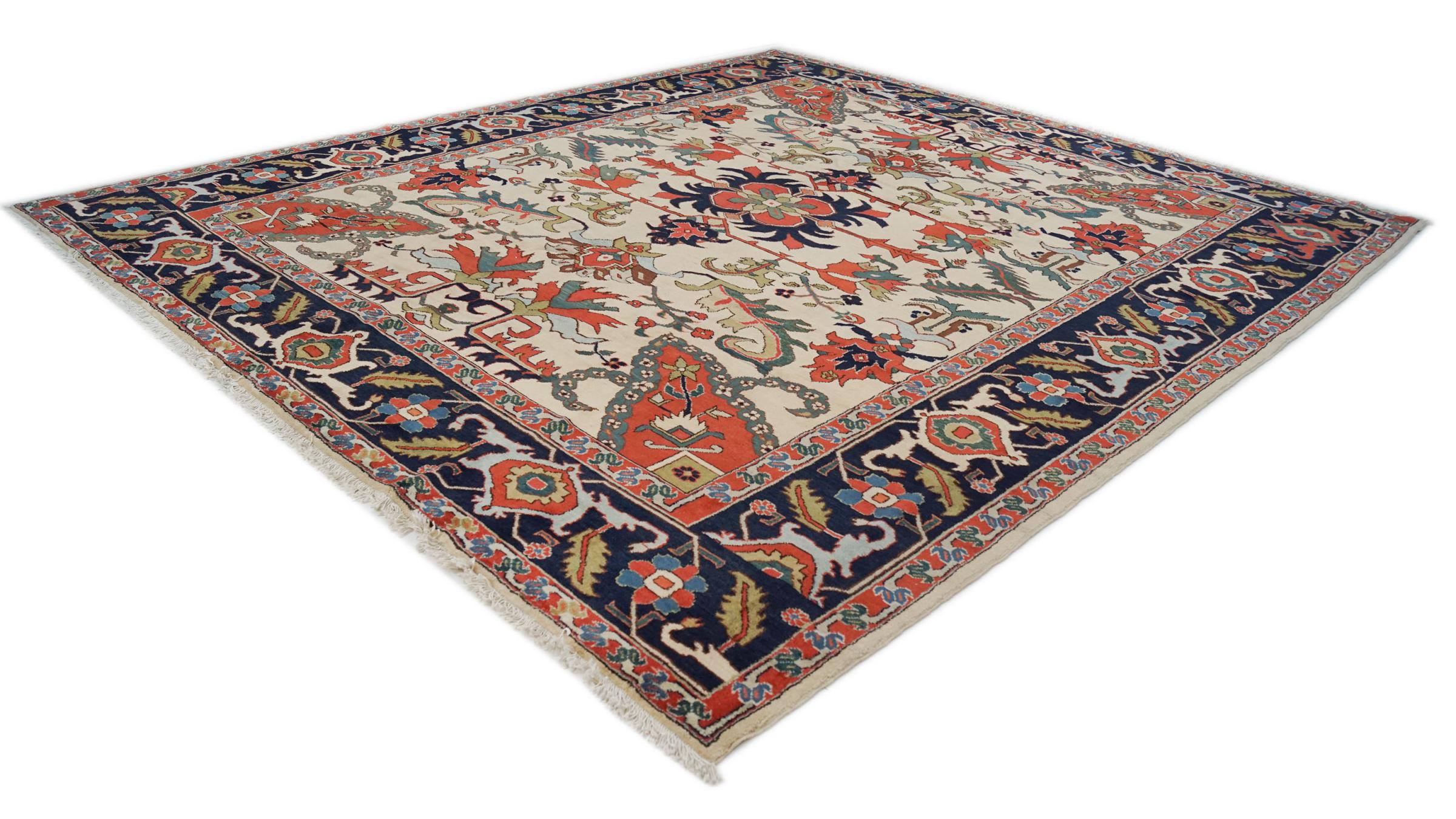 Rug ID: 316386002732689 Size: 13'5"x11'8" ft Thickness: ap. 0.31 in Knot density: 103 - 129 / square inch Manufacturing: Knotted by hand Pile: Handspun wool Warp: Cotton Origin: Persia / Iran Age: Old, 30-50 years Weight: ap. 128 lb In stock: Unique - Only 1 in stock