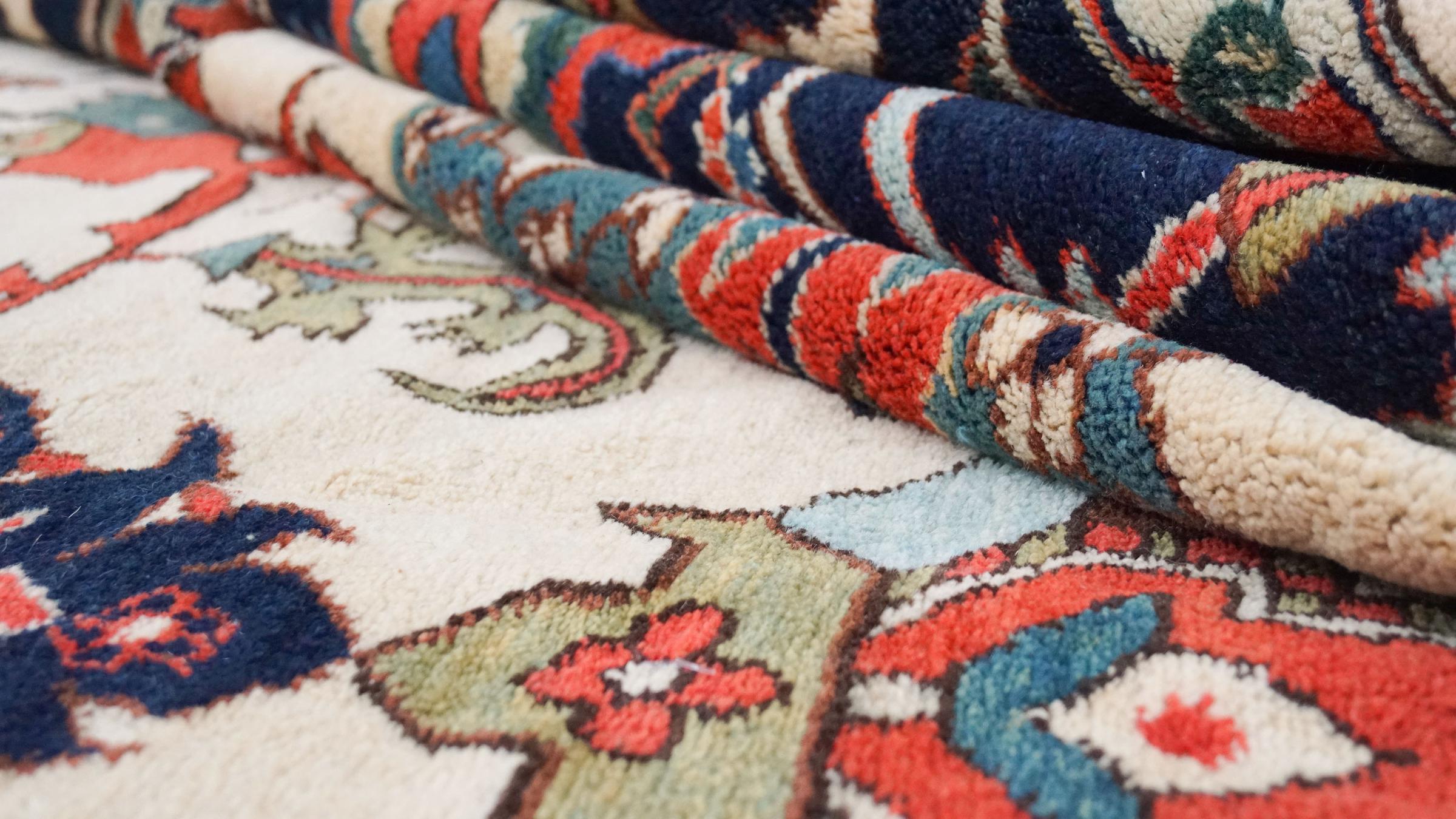 This rug is made of hand spun sheep wool of the highest quality. Especially in Iran (former Persia), Afghanistan and Pakistan wool is still spun by hand before the actual knotting of the rug begins. Wool has proven itself as a natural and extremely hard-wearing material over centuries. Among other things, it has dirt-repellent and heat-insulating properties. At the same time, wool is incomparably soft and has a natural shine.