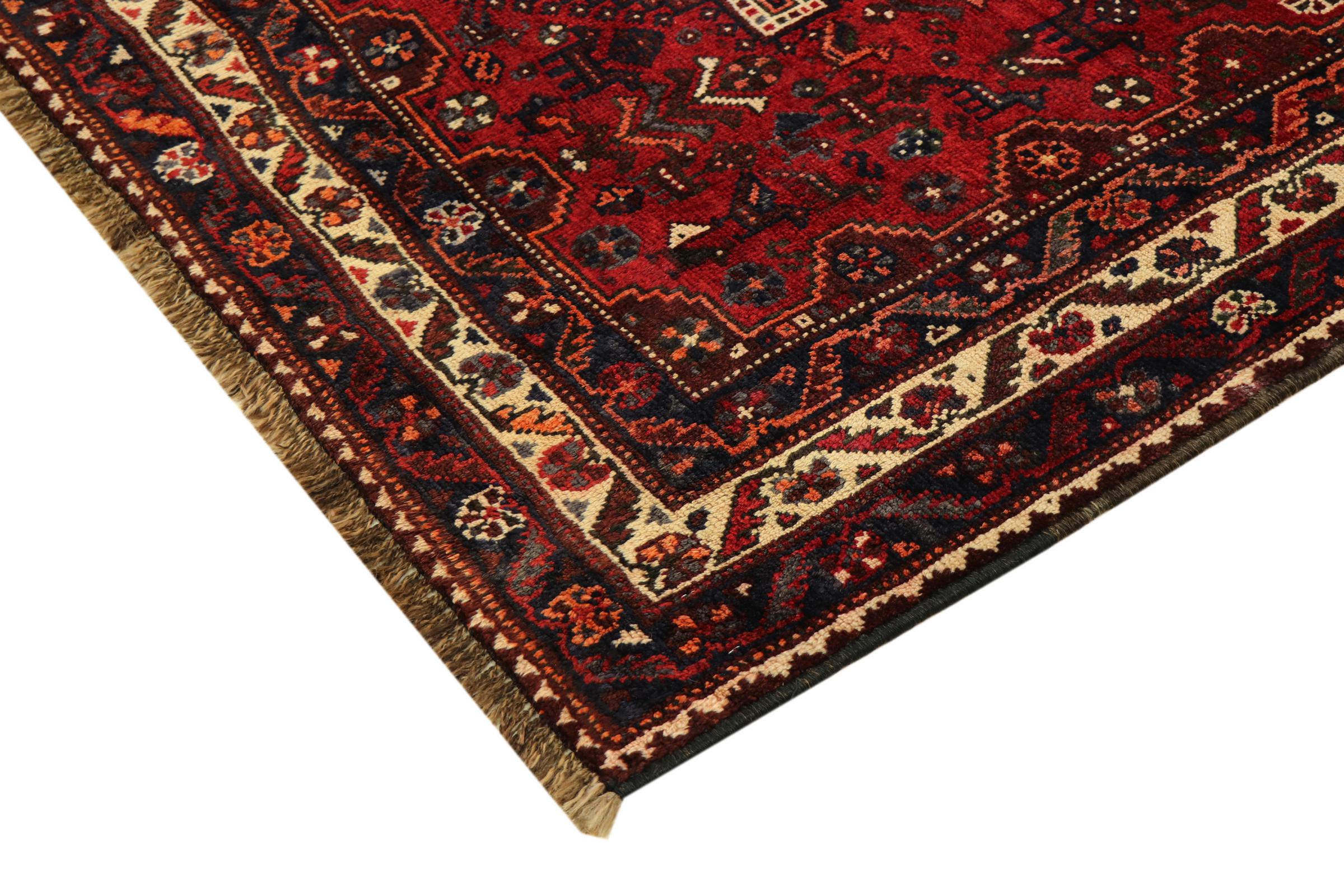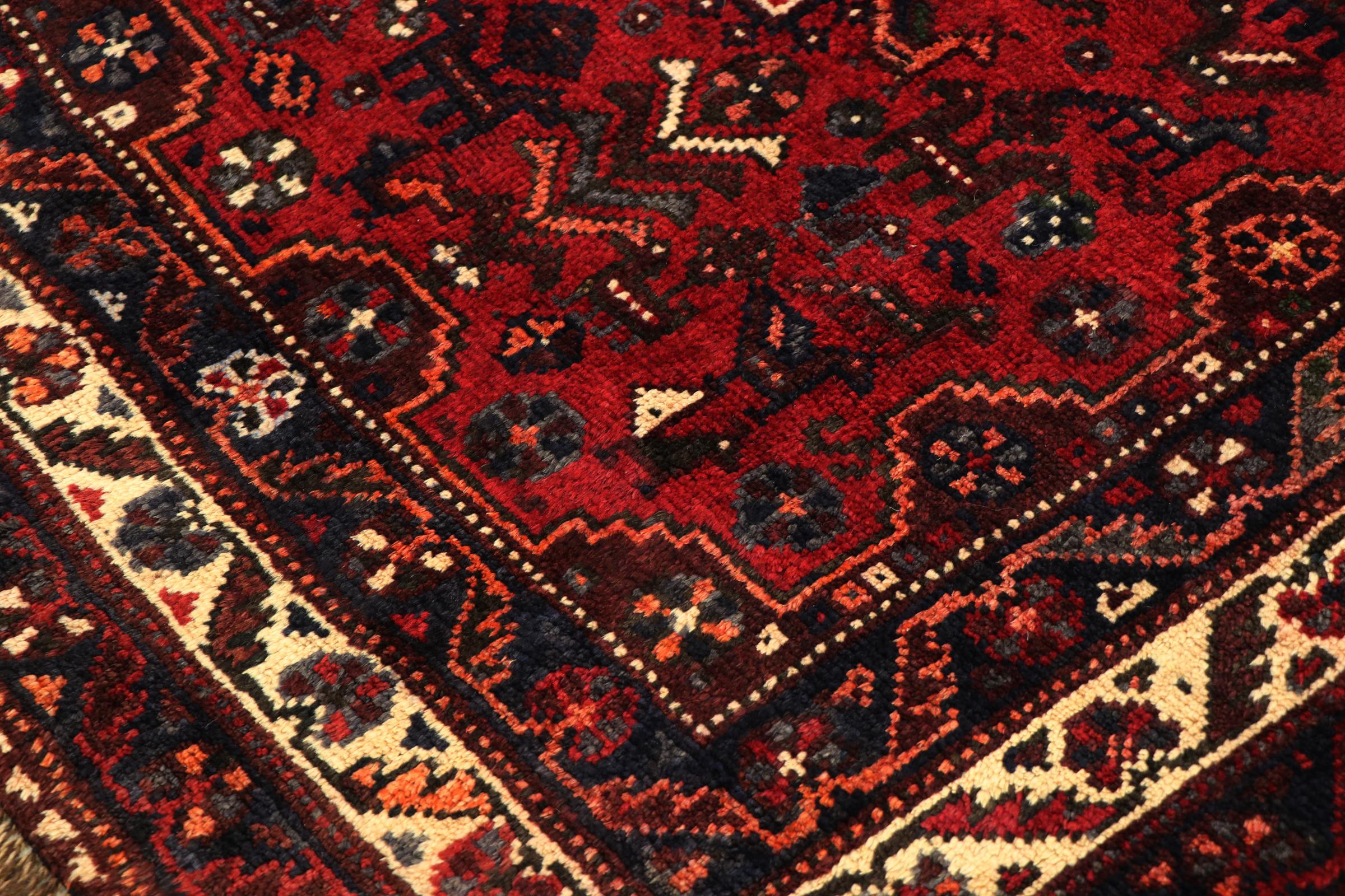 This carpet belongs to the village and nomadic carpets from Iran, the former Persia. This kind of carpets is hand knotted in smaller towns and villages in ancient tradition. Even nomads still knot Persian carpets in the open air. The carpets are knotted without a draft and entirely from memory. They are characterized by classical ornaments arranged in linear and geometric patterns. Thanks to their cultural and traditional origins, these rugs possess a unique character that embodies ancient Persia.