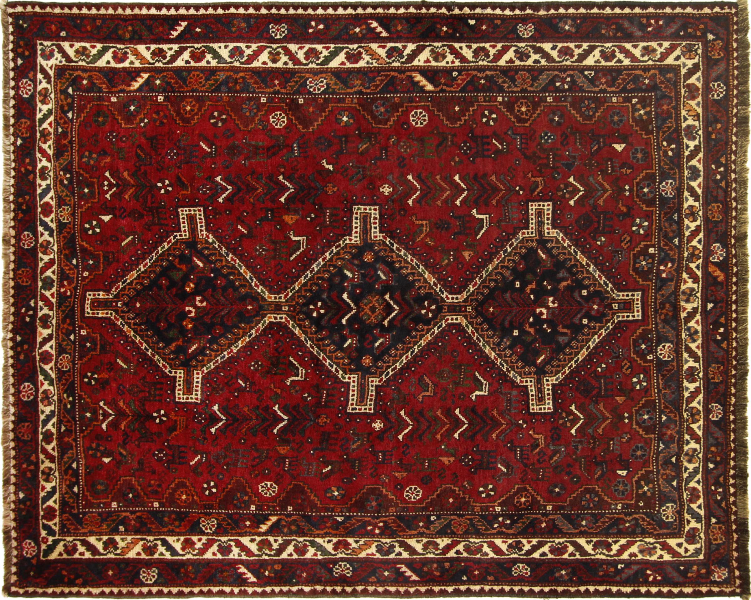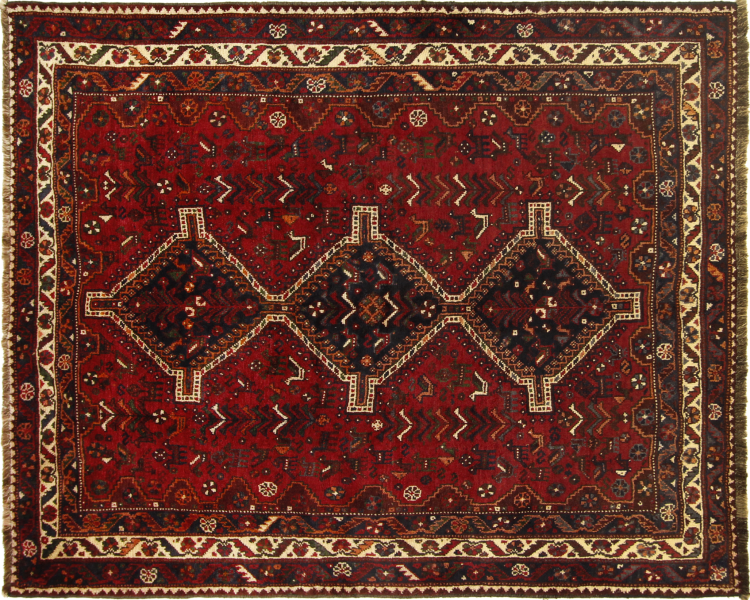 Rug ID: 313762006053112 Size: 6'11"x5'7" ft Thickness: ap. 0.47 in Knot density: 82 - 103 / square inch Manufacturing: Knotted by hand Pile: Handspun wool Warp: Sheep wool Origin: Persia / Iran Age: New Weight: ap. 31 lb Also know as Qashqai, Gaschgai, Gashghai, Kashgai In stock: Unique - Only 1 in stock