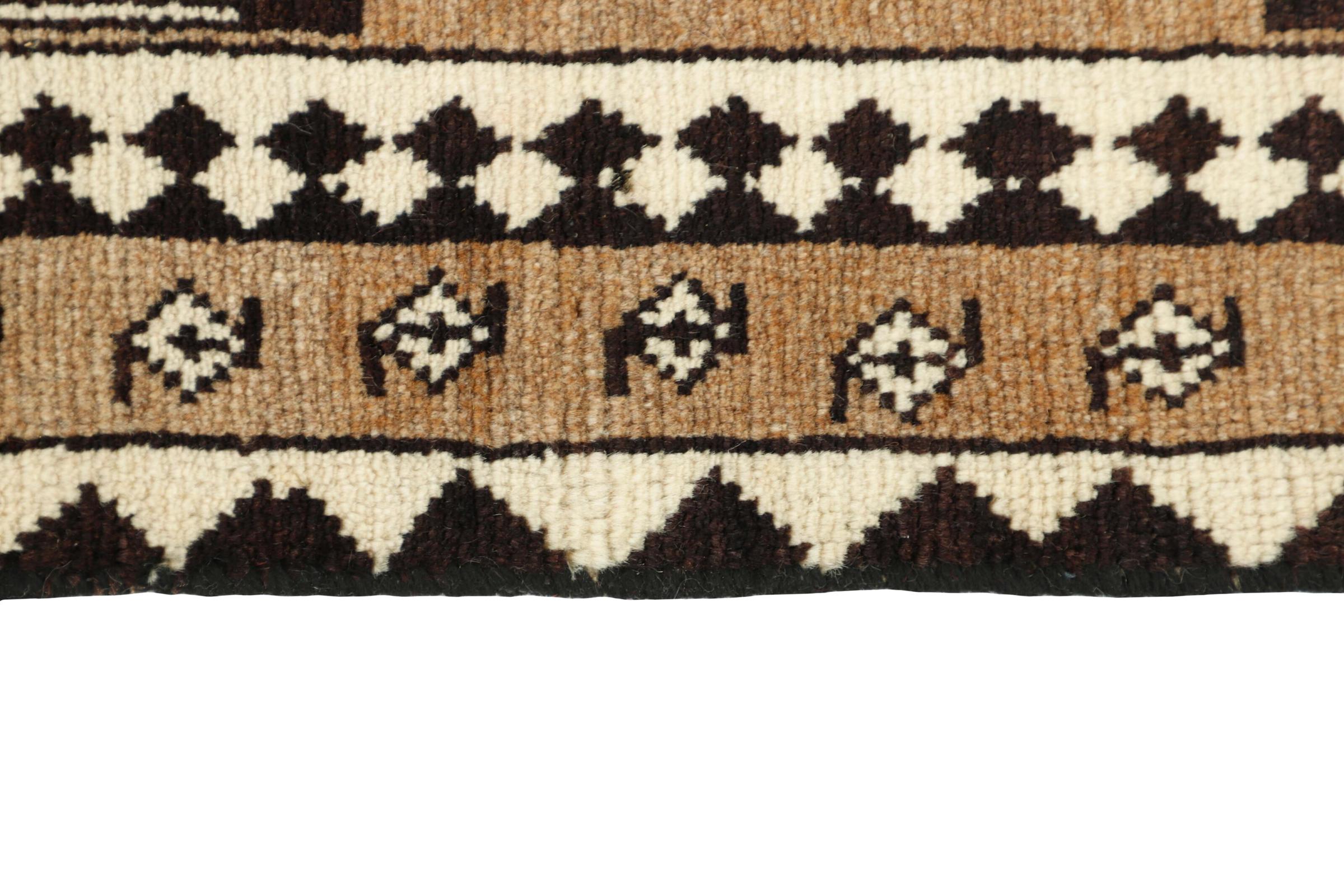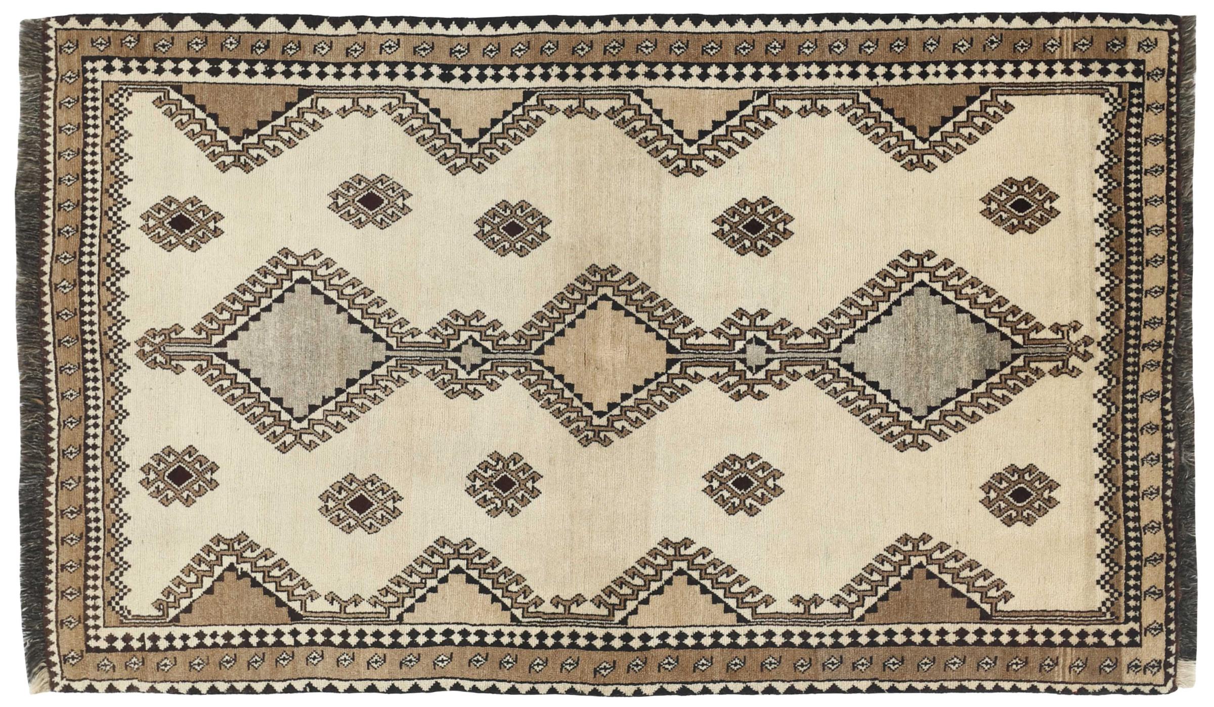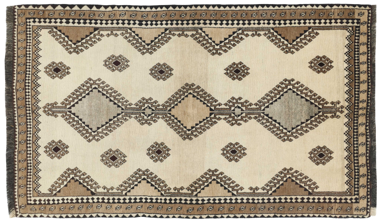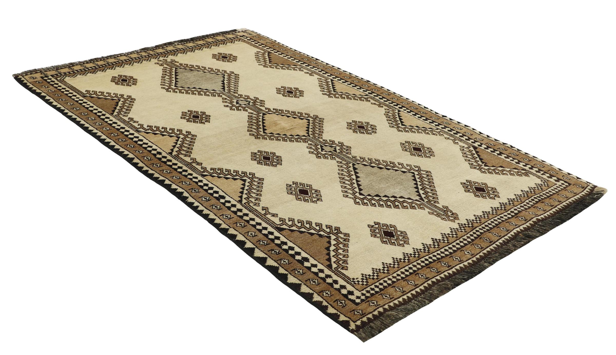 This carpet belongs to the village and nomadic carpets from Iran, the former Persia. This kind of carpets is hand knotted in smaller towns and villages in ancient tradition. Even nomads still knot Persian carpets in the open air. The carpets are knotted without a draft and entirely from memory. They are characterized by classical ornaments arranged in linear and geometric patterns. Thanks to their cultural and traditional origins, these rugs possess a unique character that embodies ancient Persia.