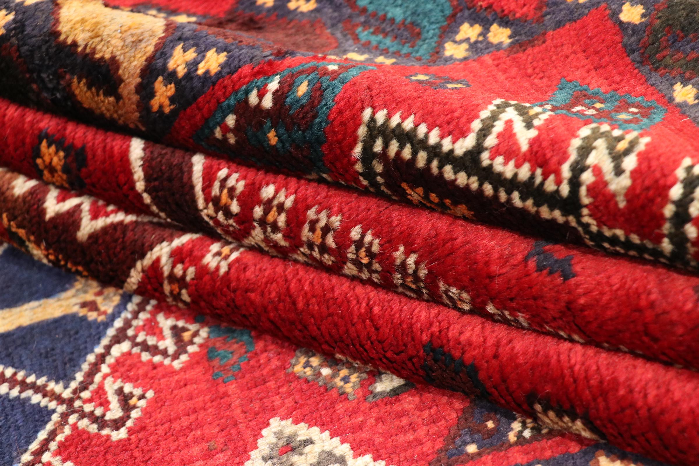 This carpet belongs to the village and nomadic carpets from Iran, the former Persia. This kind of carpets is hand knotted in smaller towns and villages in ancient tradition. Even nomads still knot Persian carpets in the open air. The carpets are knotted without a draft and entirely from memory. They are characterized by classical ornaments arranged in linear and geometric patterns. Thanks to their cultural and traditional origins, these rugs possess a unique character that embodies ancient Persia.