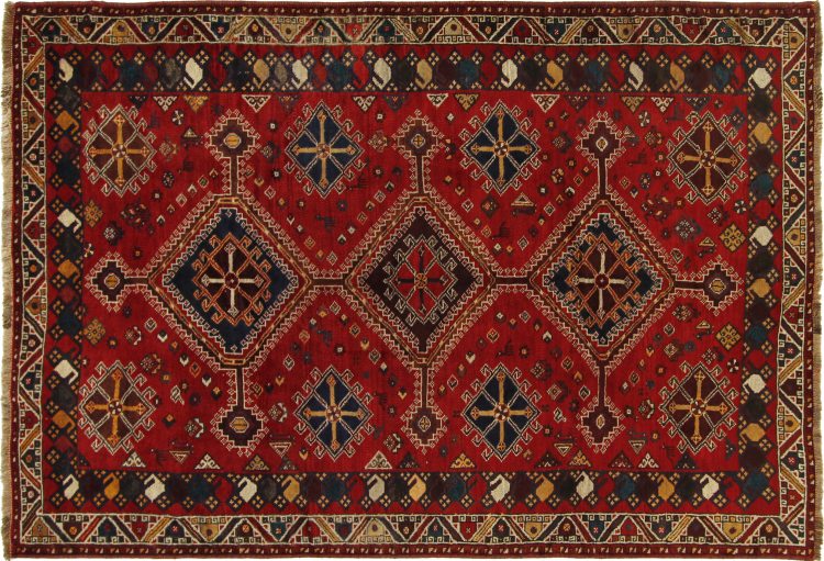 Rug ID: 313791002288153 Size: 8'6"x5'8" ft Thickness: ap. 0.47 in Knot density: 82 - 103 / square inch Manufacturing: Knotted by hand Pile: Handspun wool Warp: Sheep wool Origin: Persia / Iran Age: New Weight: ap. 40 lb Also know as Qashqai, Gaschgai, Gashghai, Kashgai In stock: Unique - Only 1 in stock