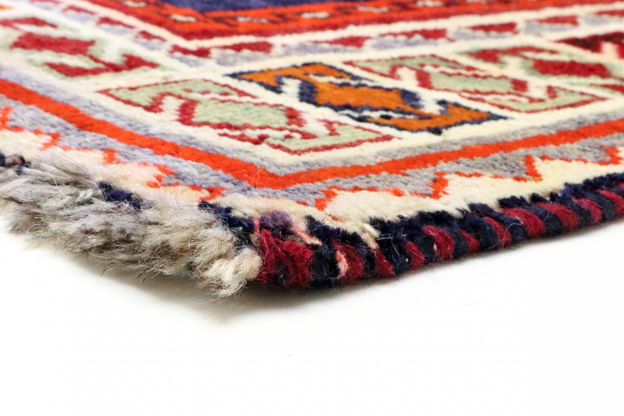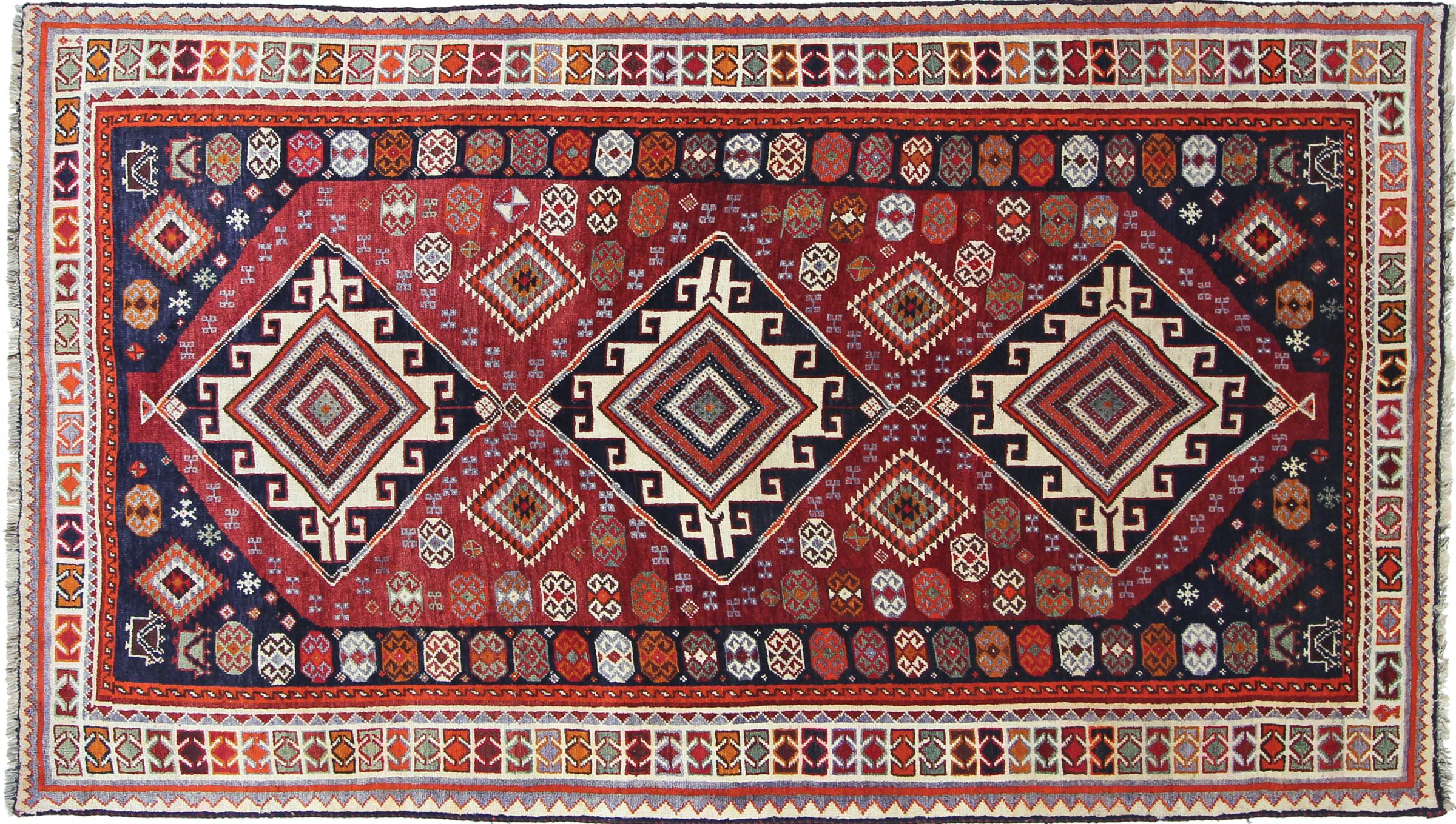 This carpet belongs to the village and nomadic carpets from Iran, the former Persia. This kind of carpets is hand knotted in smaller towns and villages in ancient tradition. Even nomads still knot Persian carpets in the open air. The carpets are knotted without a draft and entirely from memory. They are characterized by classical ornaments arranged in linear and geometric patterns. Thanks to their cultural and traditional origins, these rugs possess a unique character that embodies ancient Persia.