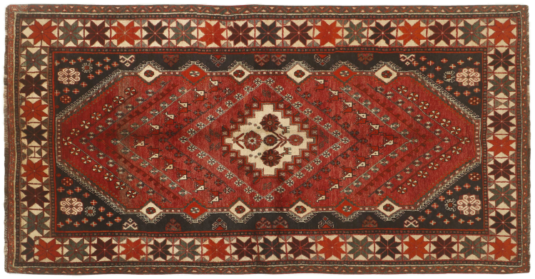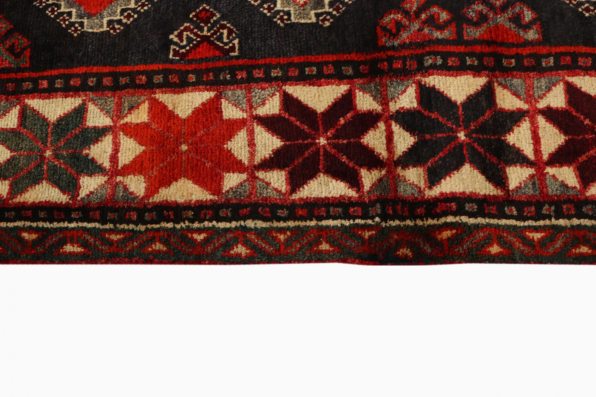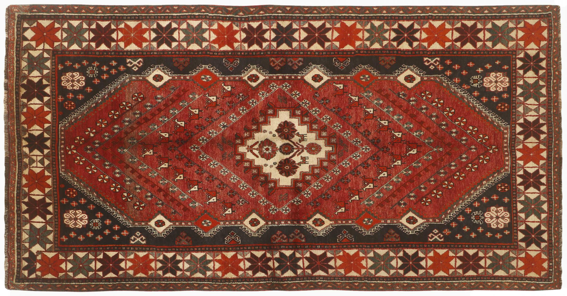 This carpet belongs to the village and nomadic carpets from Iran, the former Persia. This kind of carpets is hand knotted in smaller towns and villages in ancient tradition. Even nomads still knot Persian carpets in the open air. The carpets are knotted without a draft and entirely from memory. They are characterized by classical ornaments arranged in linear and geometric patterns. Thanks to their cultural and traditional origins, these rugs possess a unique character that embodies ancient Persia.