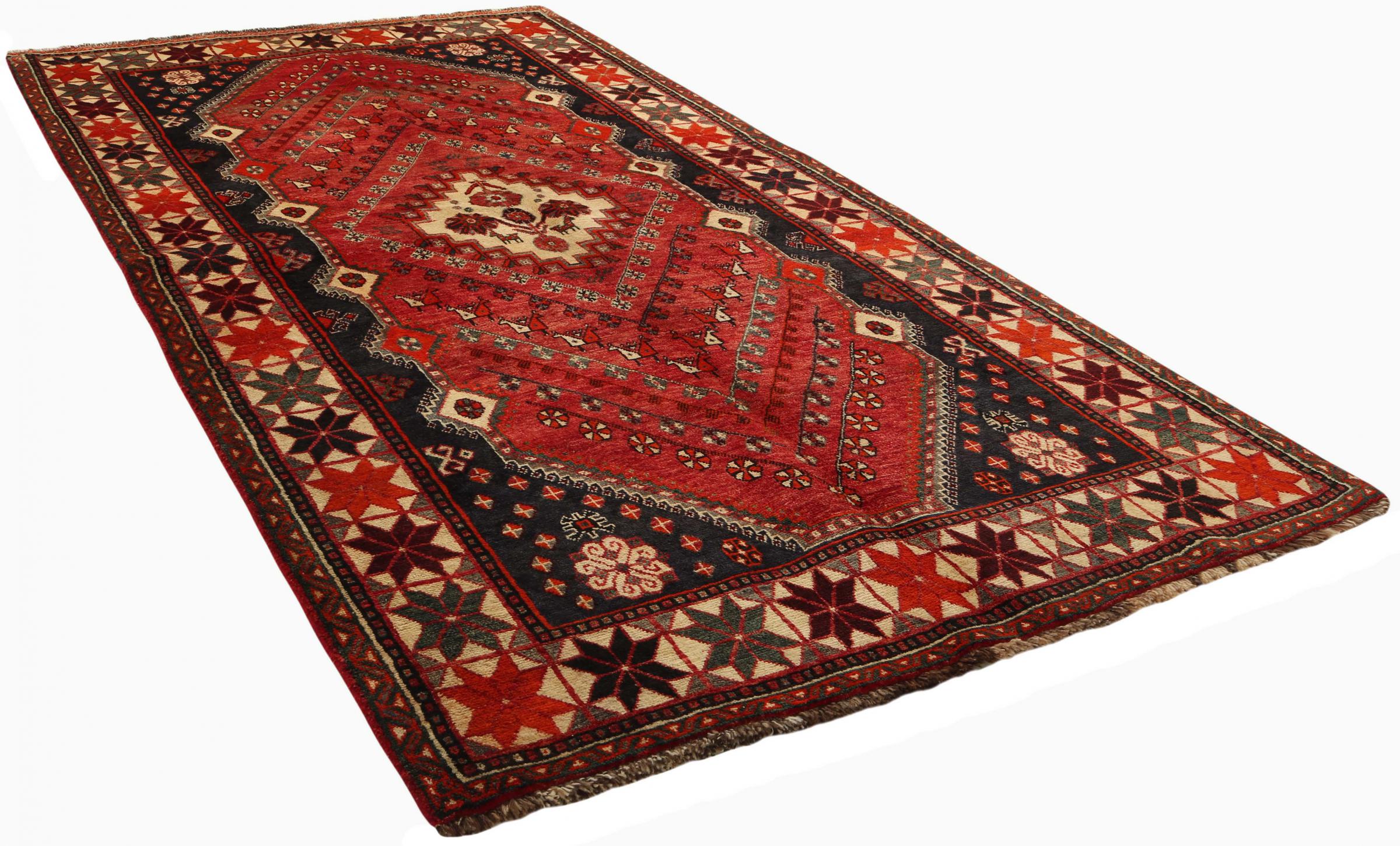 Rug ID: 14559600168678 Size: 9'6"x5'0" ft Thickness: ap. 0.47 in Knot density: 129 - 161 / square inch Manufacturing: Knotted by hand Pile: Handspun wool Warp: Sheep wool Origin: Persia / Iran Age: New Weight: ap. 33 lb Also know as Qashqai, Gaschgai, Gashghai, Kashgai In stock: Unique - Only 1 in stock
