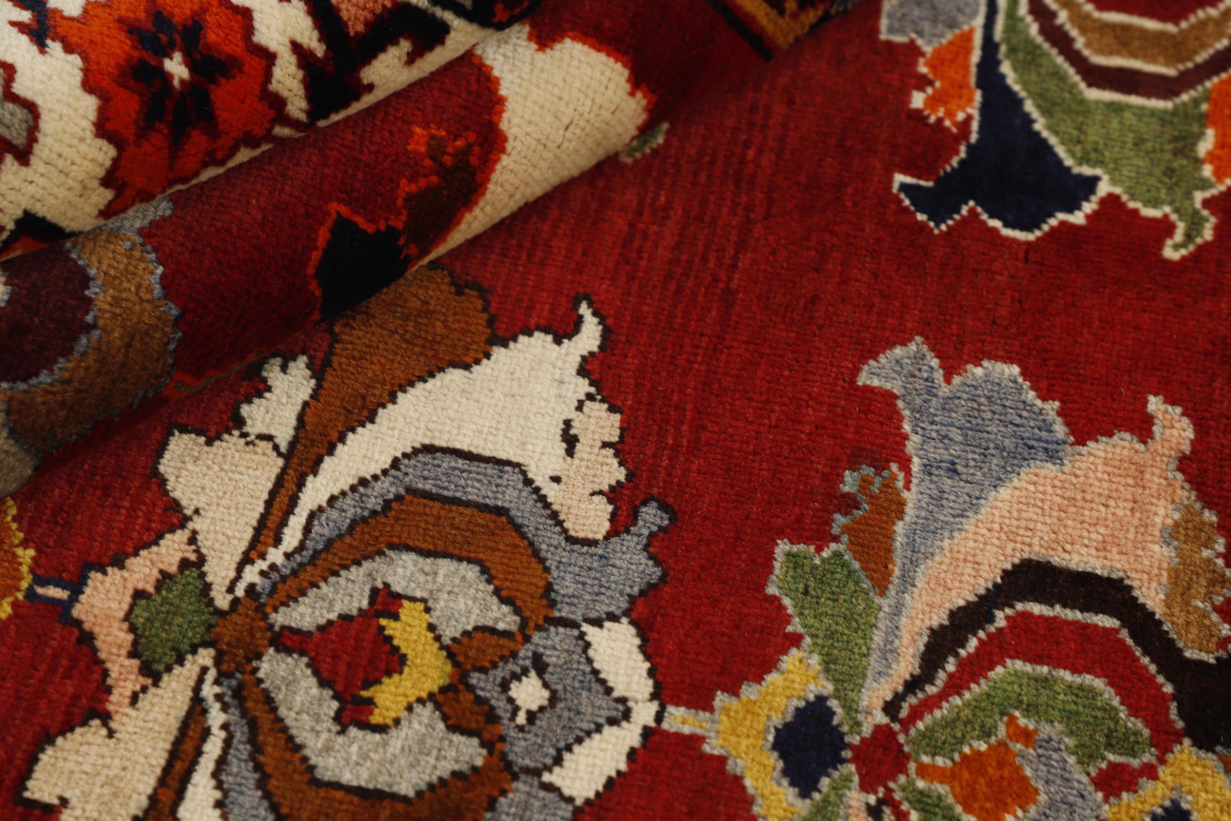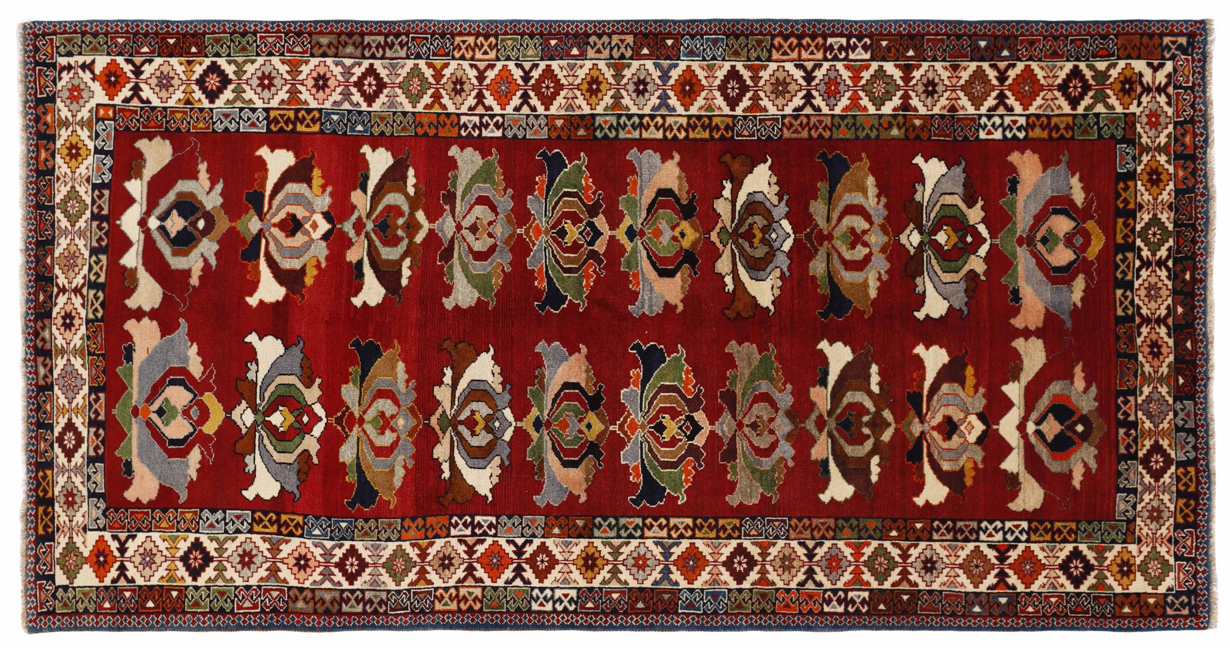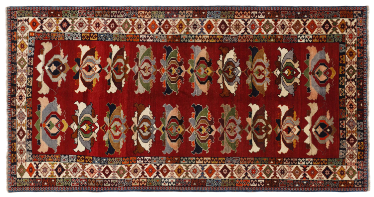 This carpet belongs to the village and nomadic carpets from Iran, the former Persia. This kind of carpets is hand knotted in smaller towns and villages in ancient tradition. Even nomads still knot Persian carpets in the open air. The carpets are knotted without a draft and entirely from memory. They are characterized by classical ornaments arranged in linear and geometric patterns. Thanks to their cultural and traditional origins, these rugs possess a unique character that embodies ancient Persia.