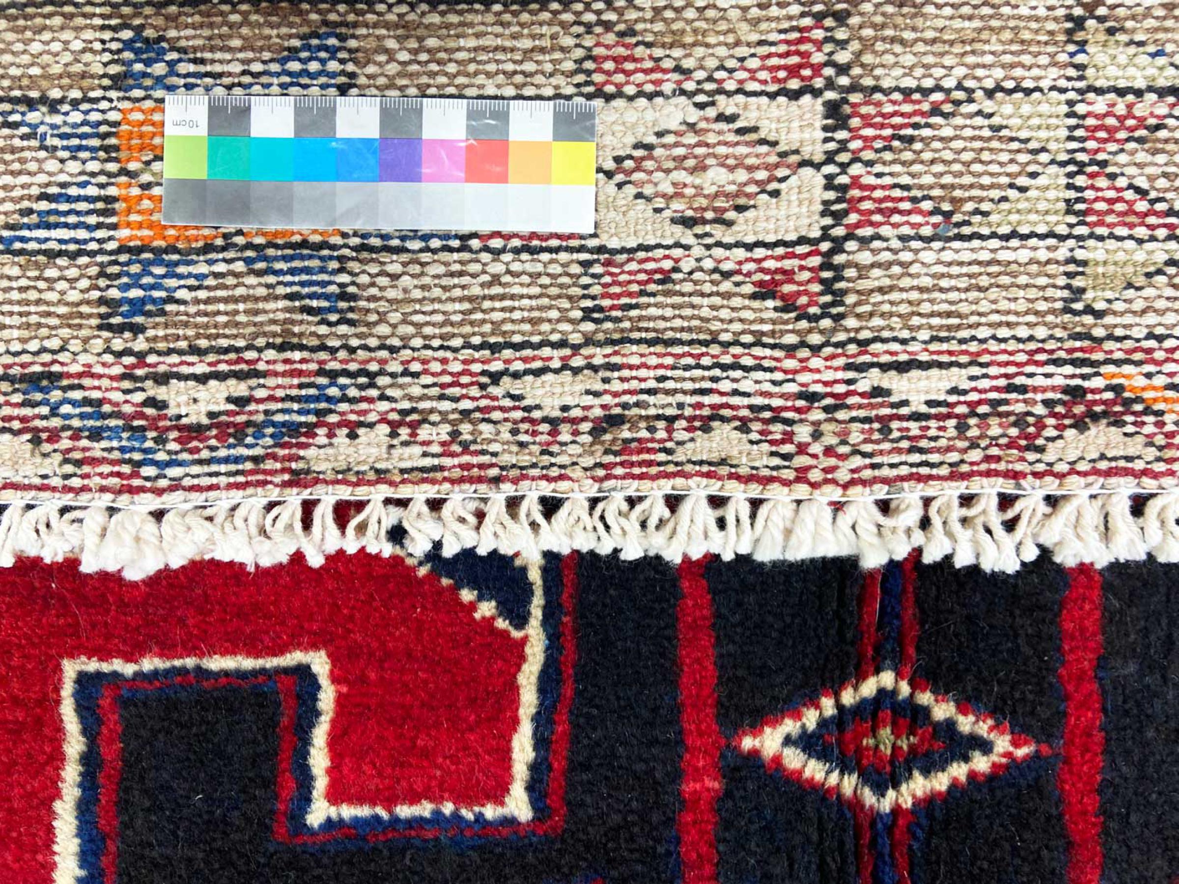 This carpet belongs to the village and nomadic carpets from Iran, the former Persia. This kind of carpets is hand knotted in smaller towns and villages in ancient tradition. Even nomads still knot Persian carpets in the open air. The carpets are knotted without a draft and entirely from memory. They are characterized by classical ornaments arranged in linear and geometric patterns. Thanks to their cultural and traditional origins, these rugs possess a unique character that embodies ancient Persia.