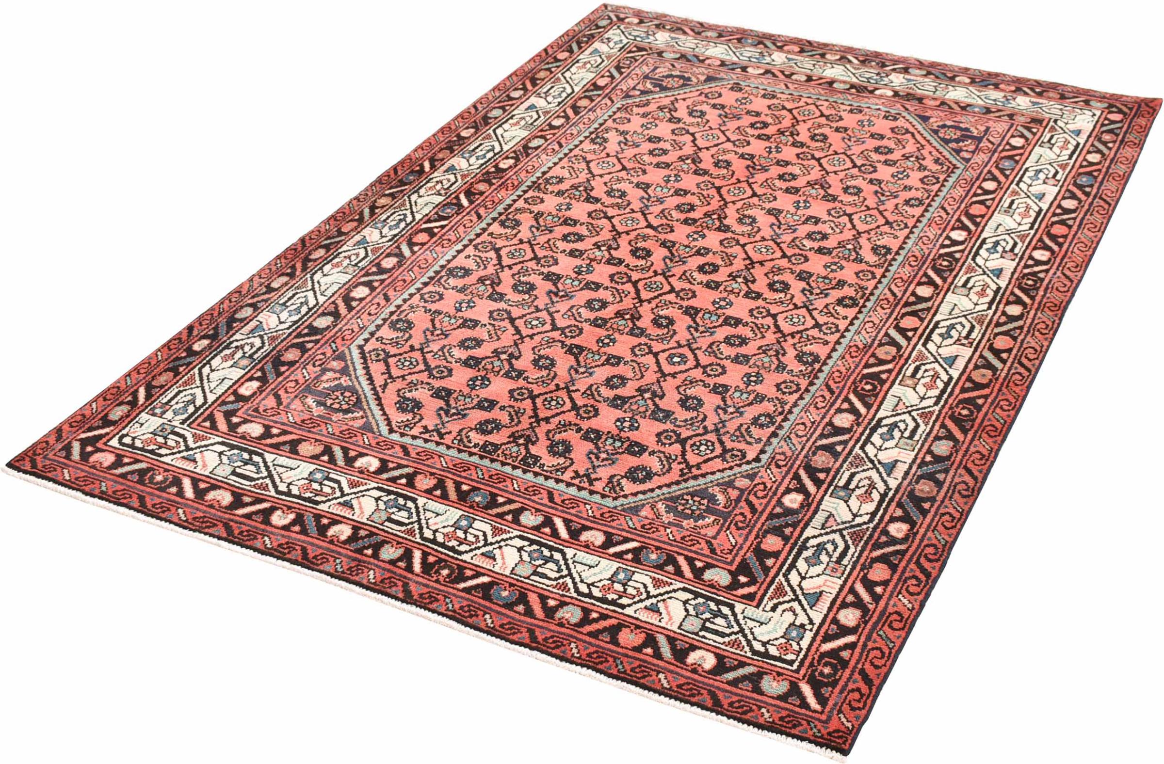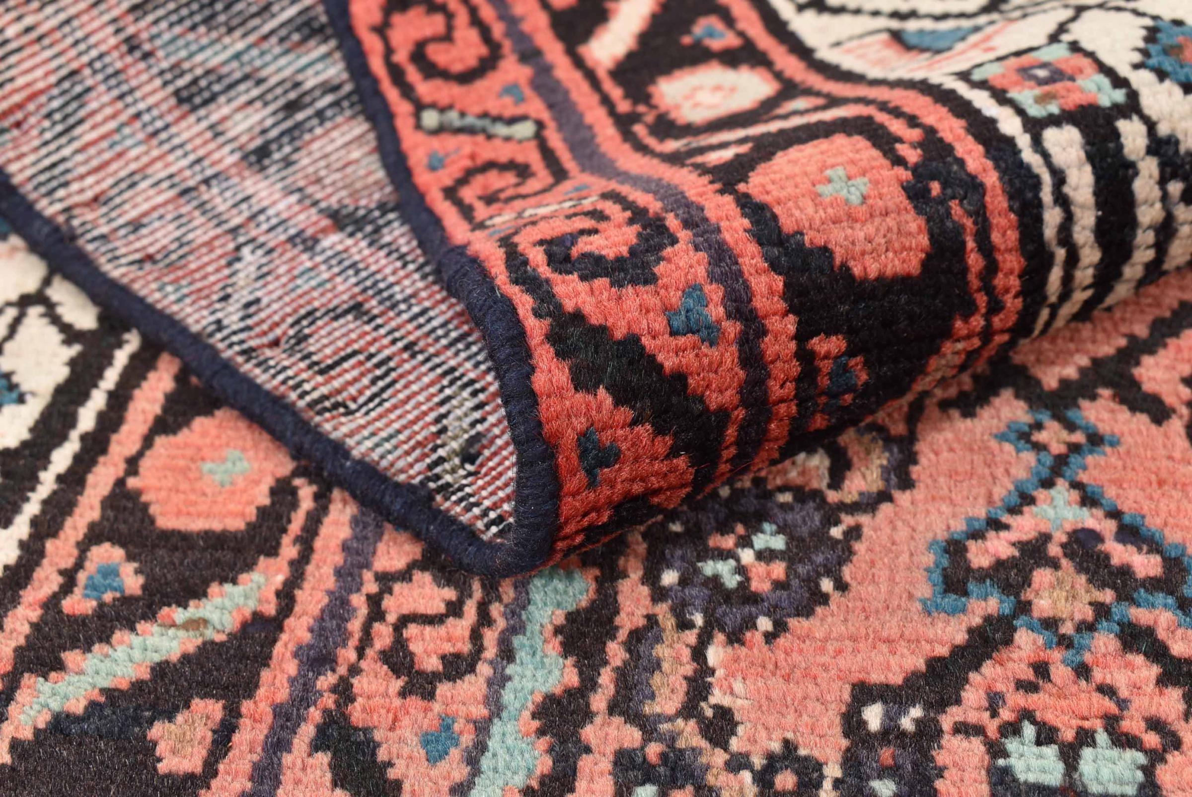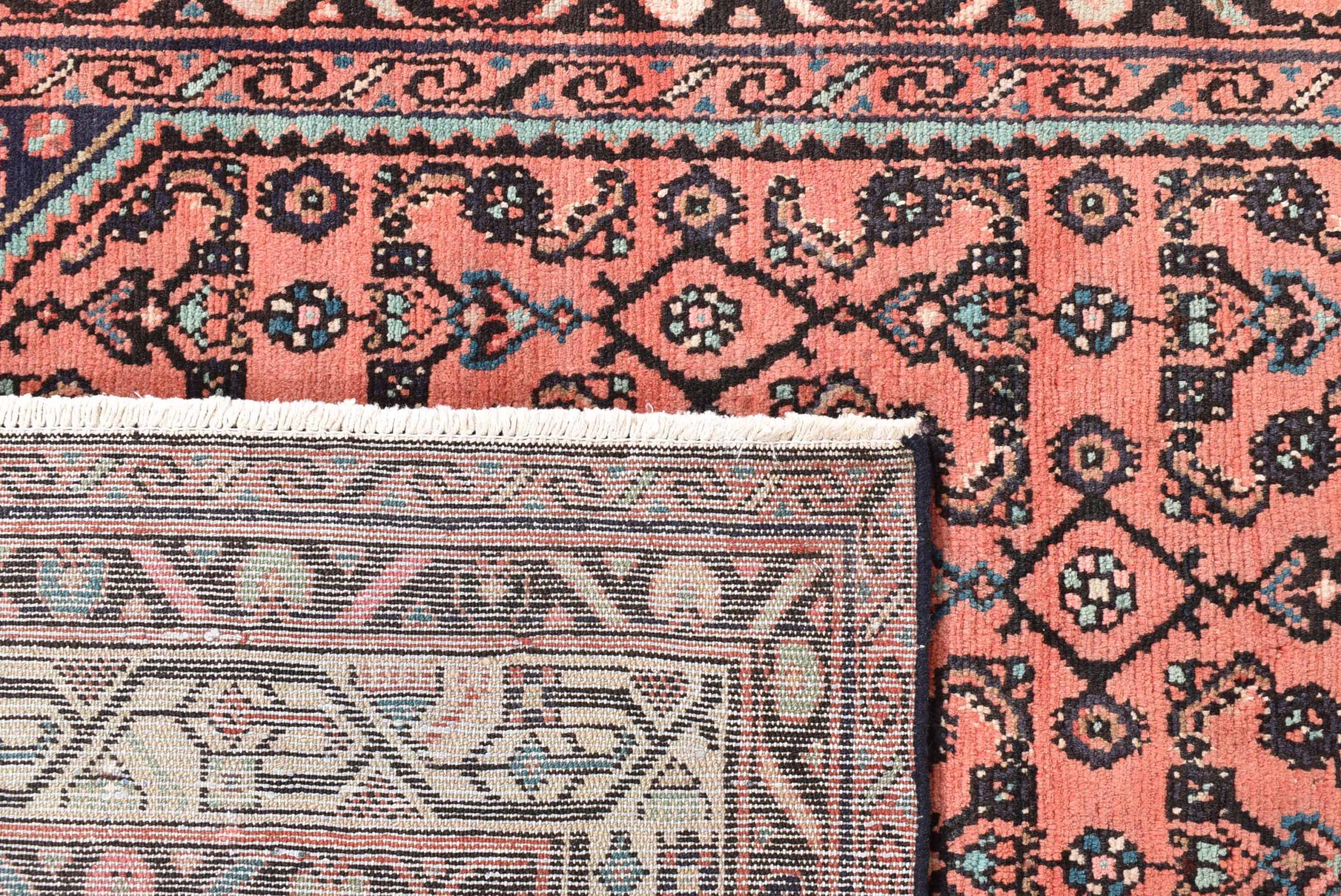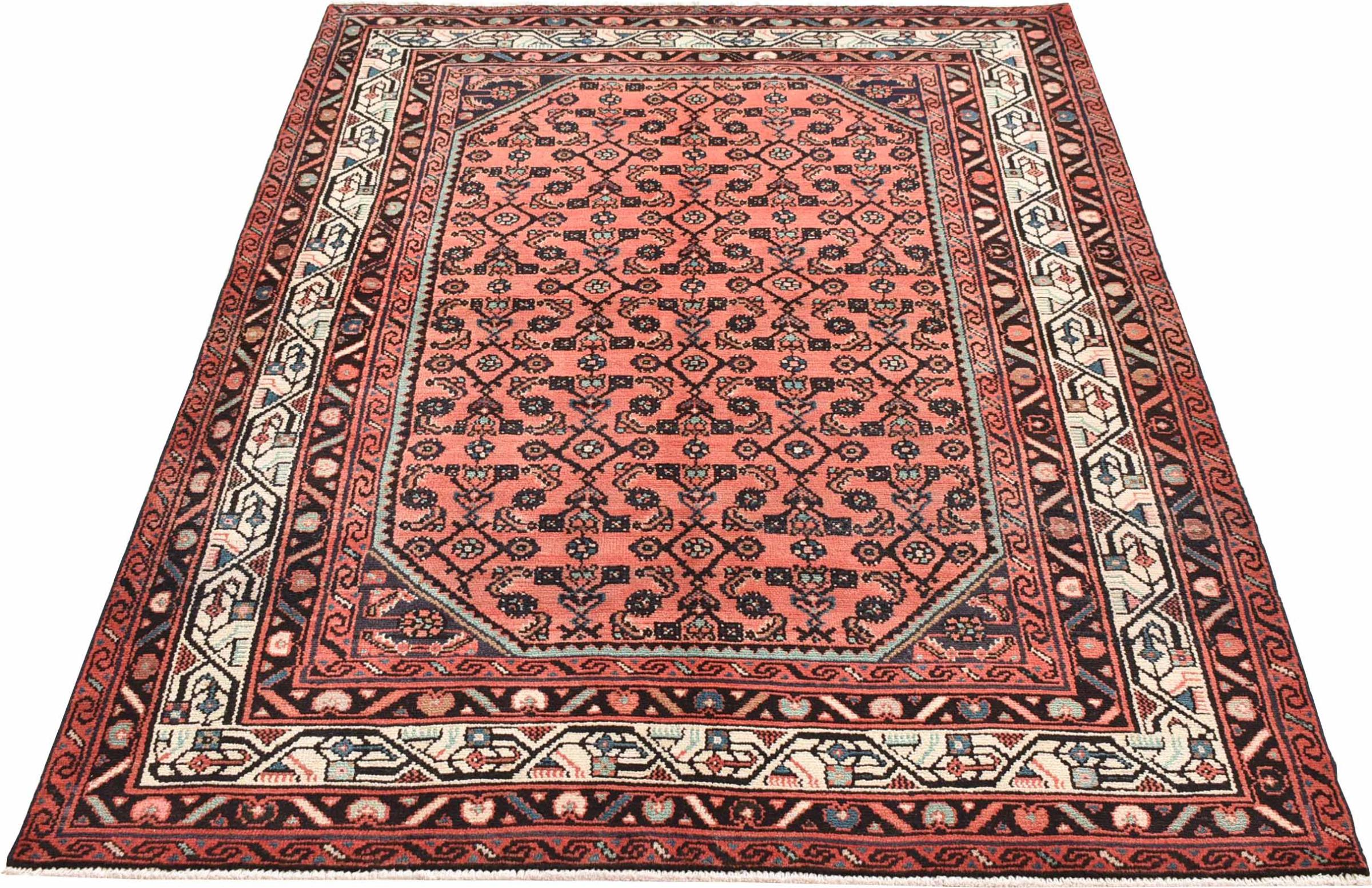 This Persian rug from Hamadan possesses typical geometric patterns with beautiful shades of red, brown and blue. It has been knotted by hand in the small town Hamadan in Persia. This rug is extremely robust and durable.