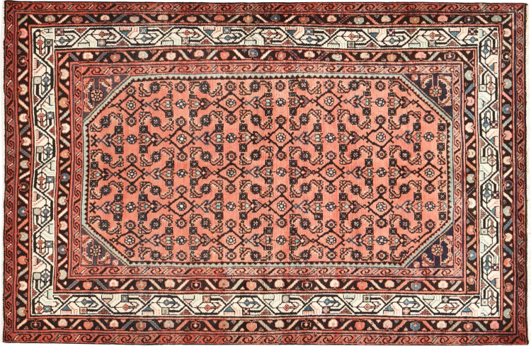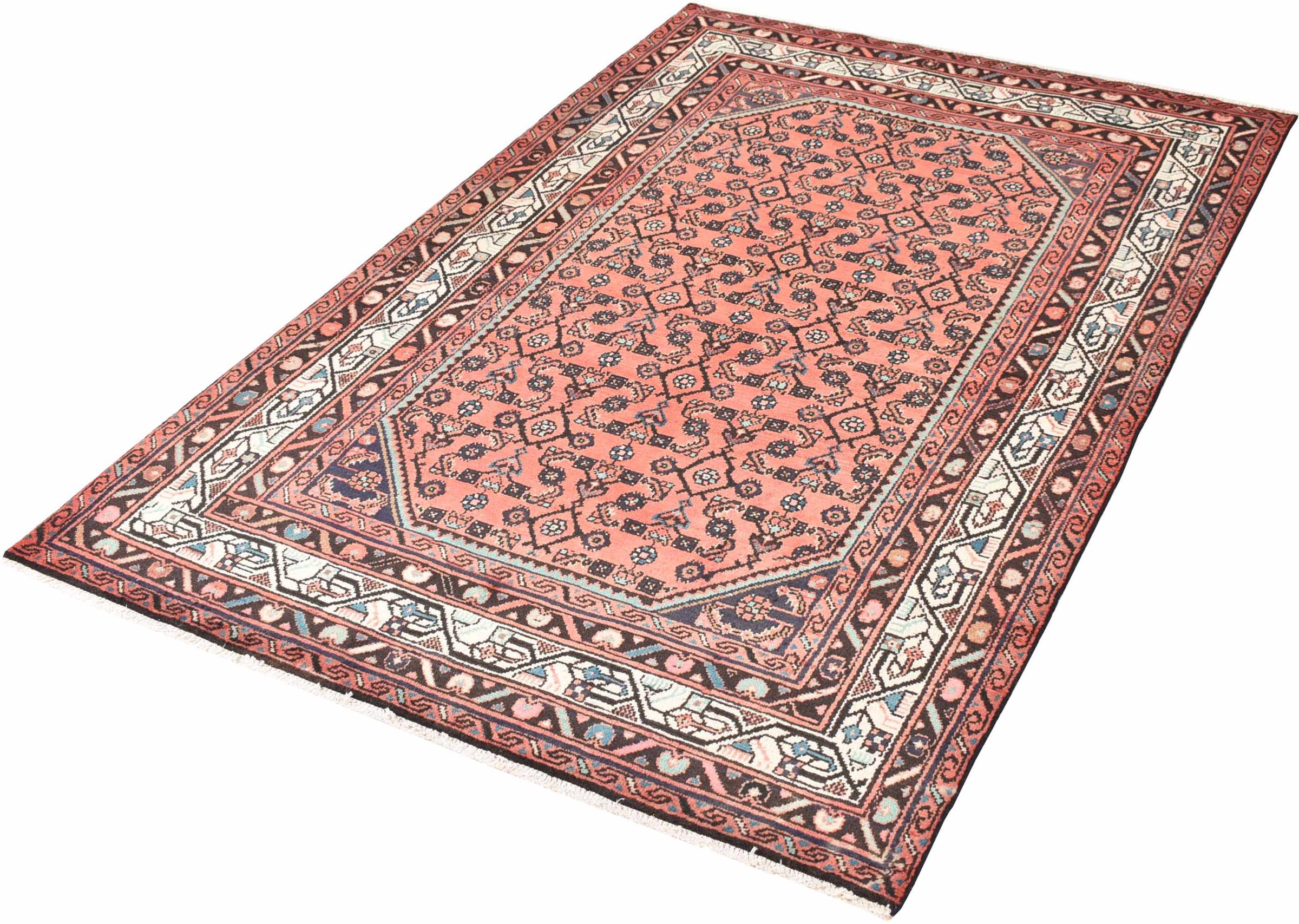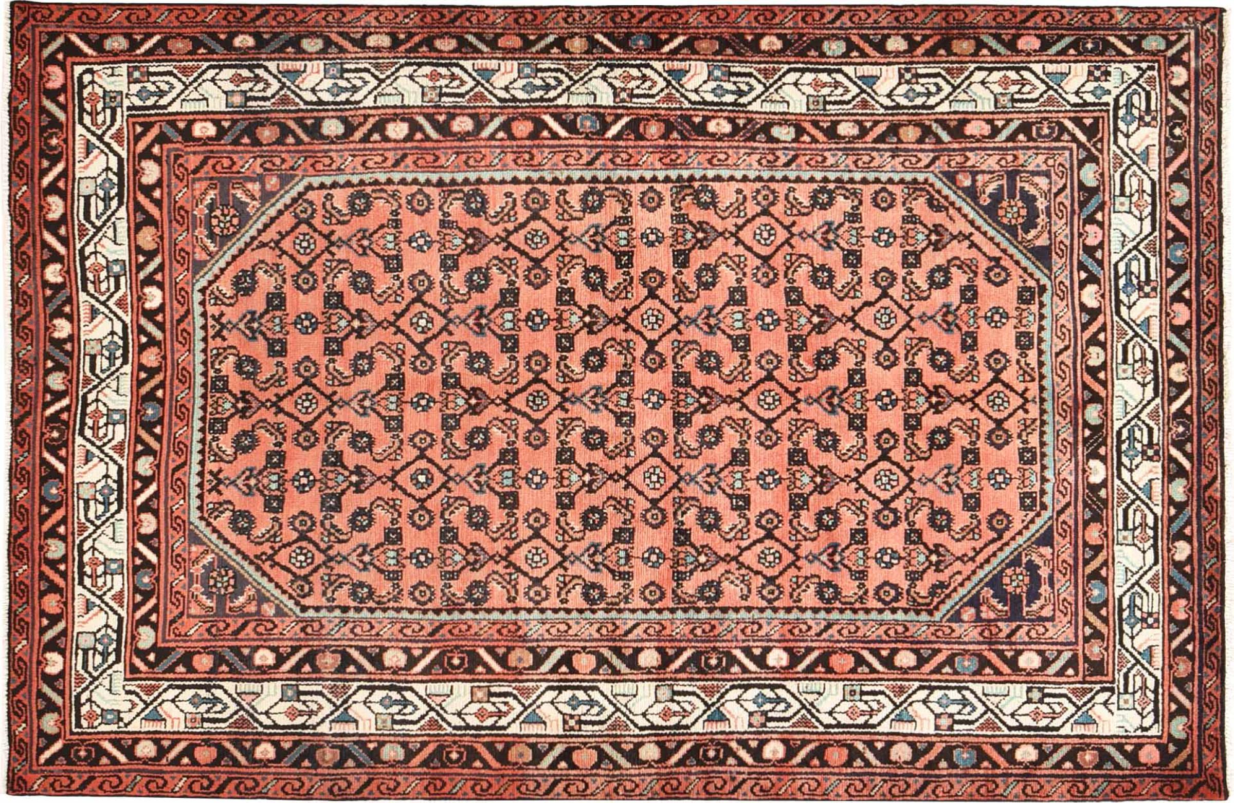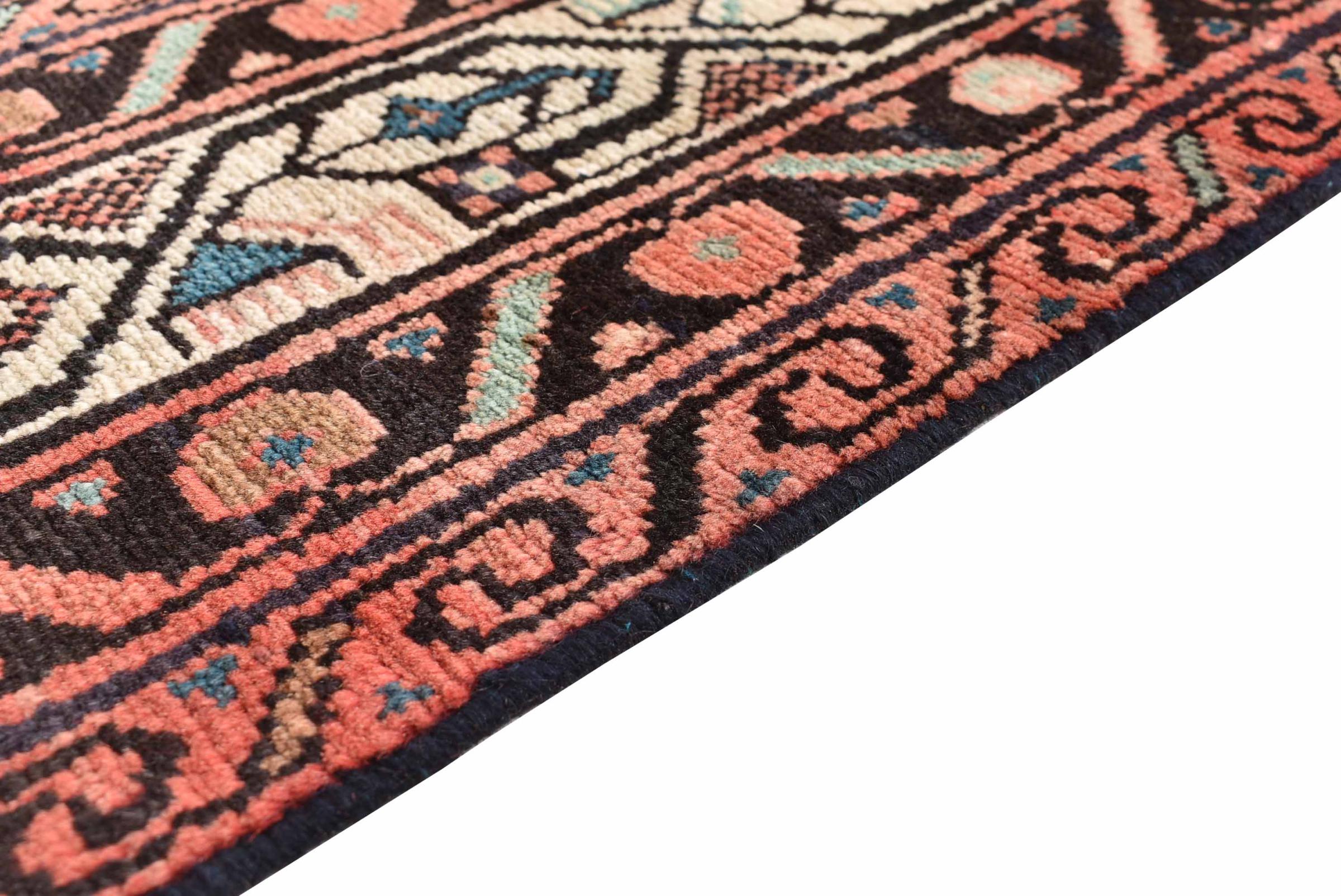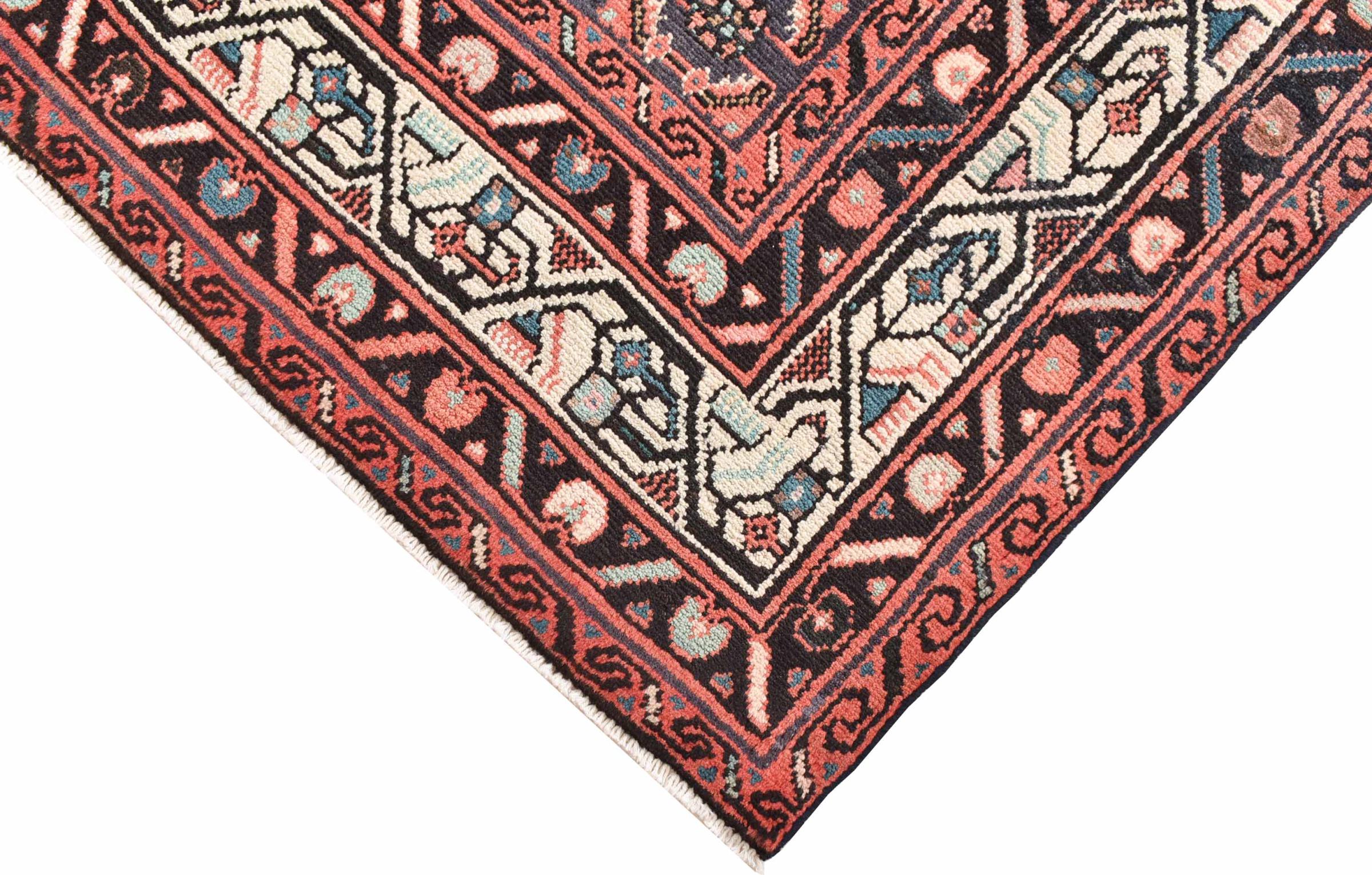 This Persian rug from Hamadan possesses typical geometric patterns with beautiful shades of red, brown and blue. It has been knotted by hand in the small town Hamadan in Persia. This rug is extremely robust and durable.
