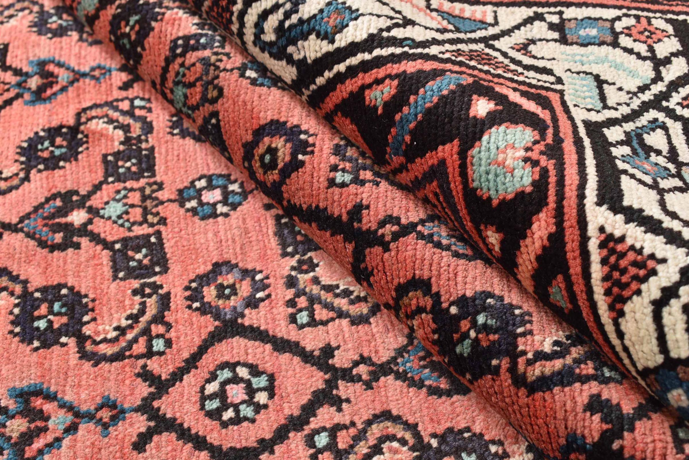 This carpet belongs to the village and nomadic carpets from Iran, the former Persia. This kind of carpets is hand knotted in smaller towns and villages in ancient tradition. Even nomads still knot Persian carpets in the open air. The carpets are knotted without a draft and entirely from memory. They are characterized by classical ornaments arranged in linear and geometric patterns. Thanks to their cultural and traditional origins, these rugs possess a unique character that embodies ancient Persia.