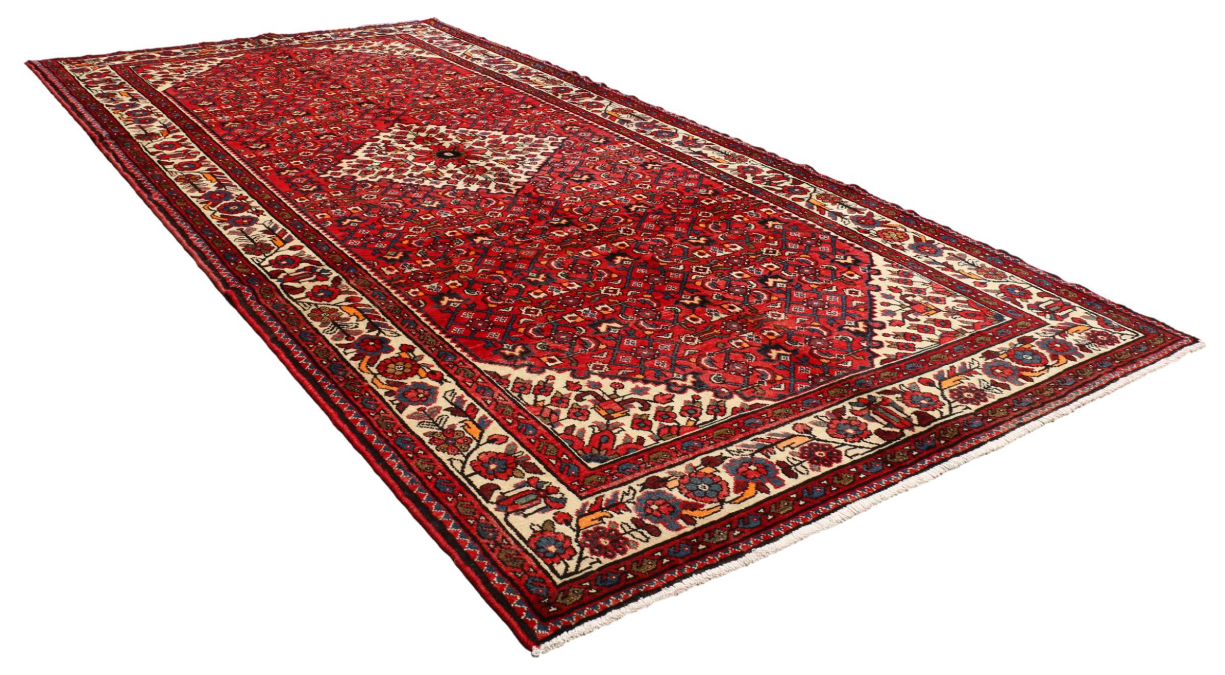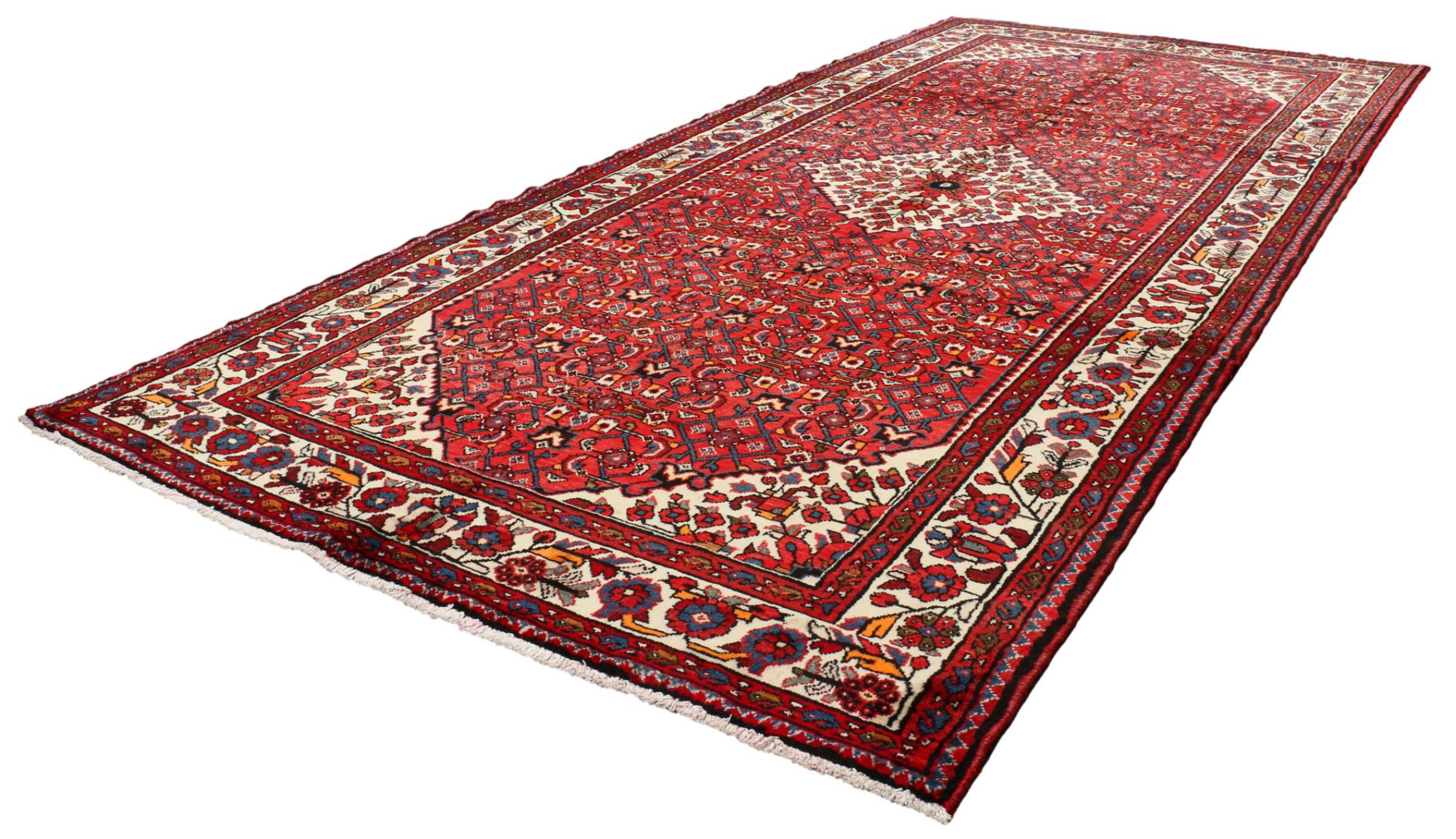 Rug ID: 309155005365845 Size: 10'10"x5'3" ft Thickness: ap. 0.47 in Knot density: 82 - 103 / square inch Manufacturing: Knotted by hand Pile: Handspun wool Warp: Cotton Origin: Persia / Iran Age: New Weight: ap. 46 lb Also know as Huseinabad In stock: Unique - Only 1 in stock