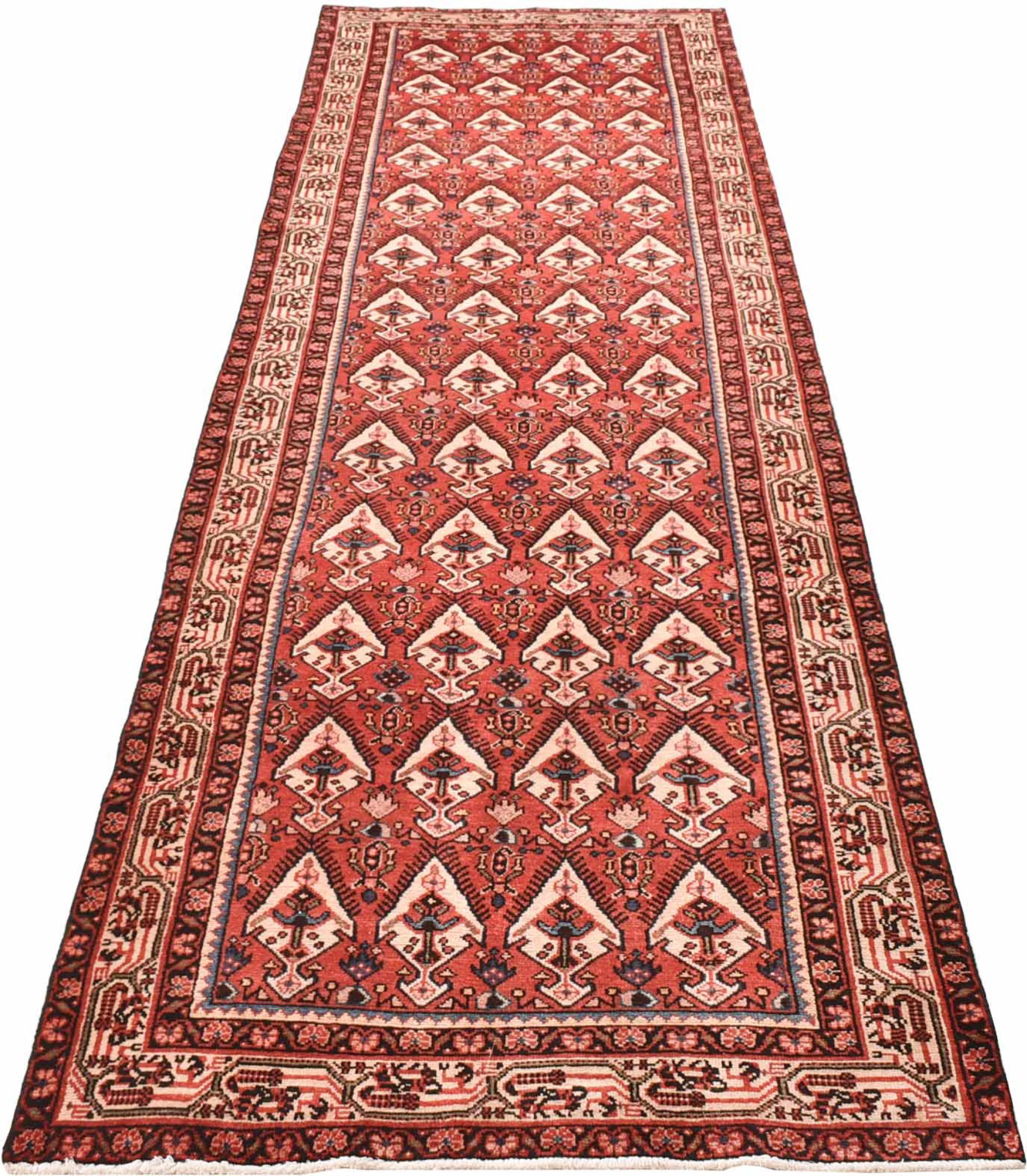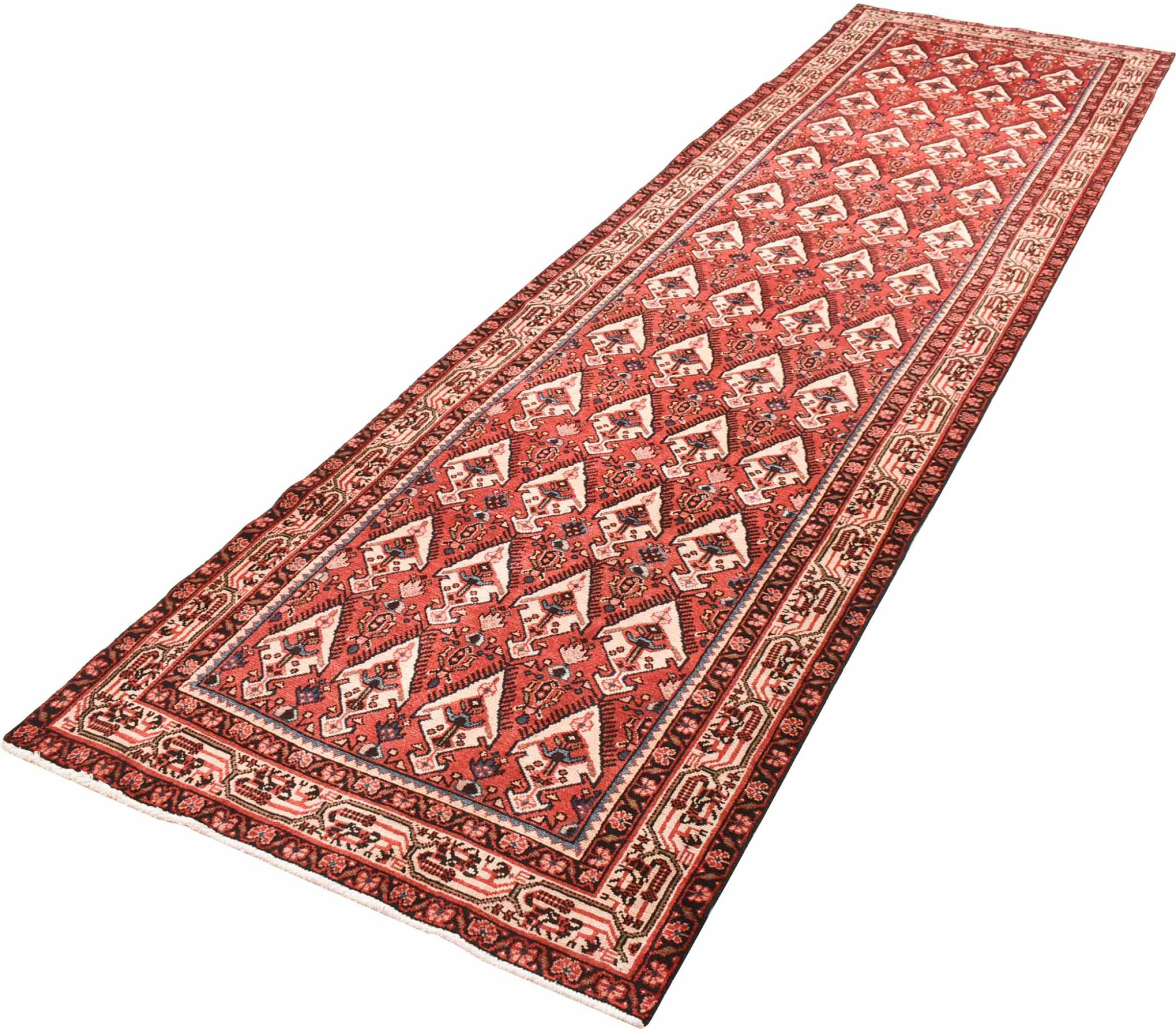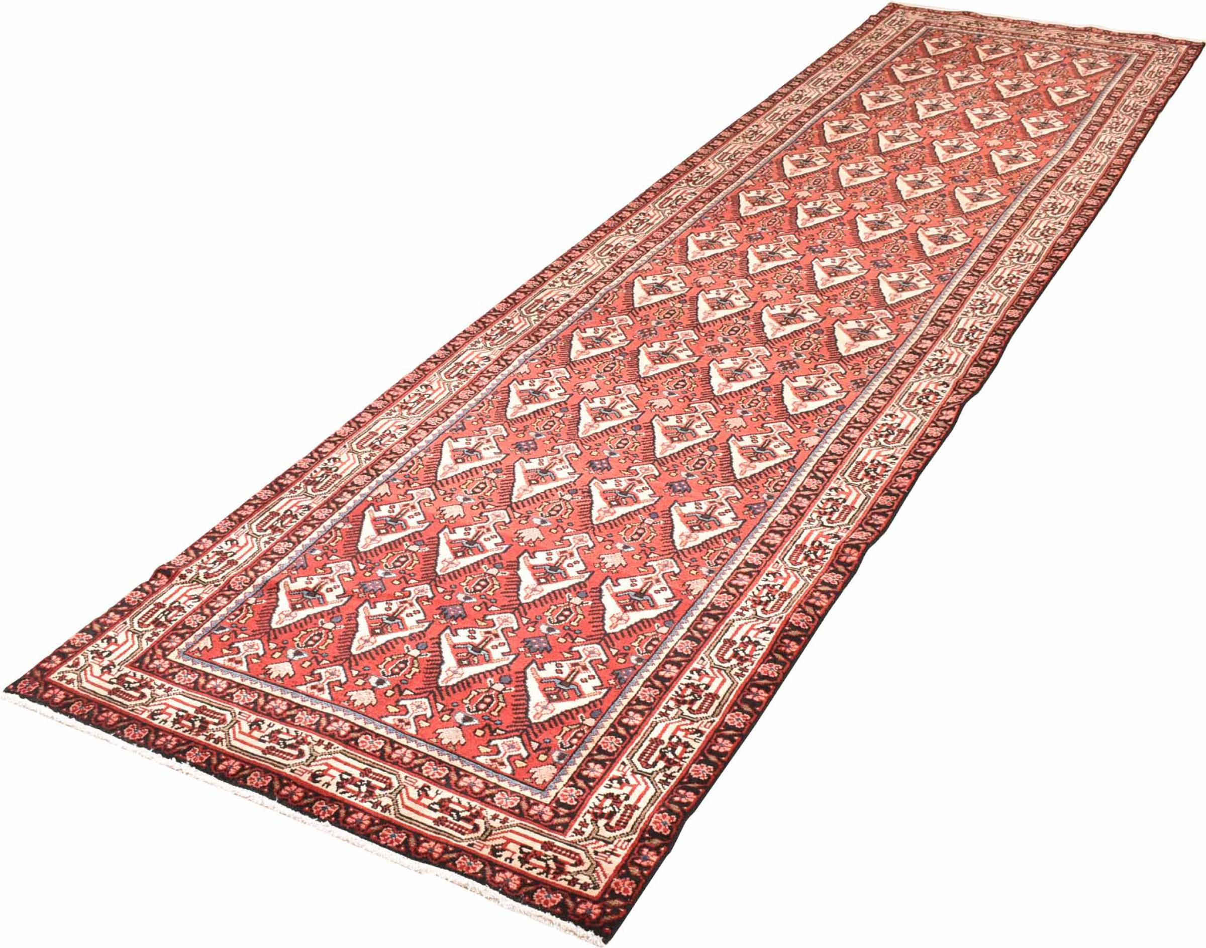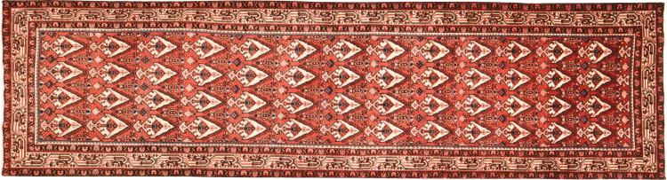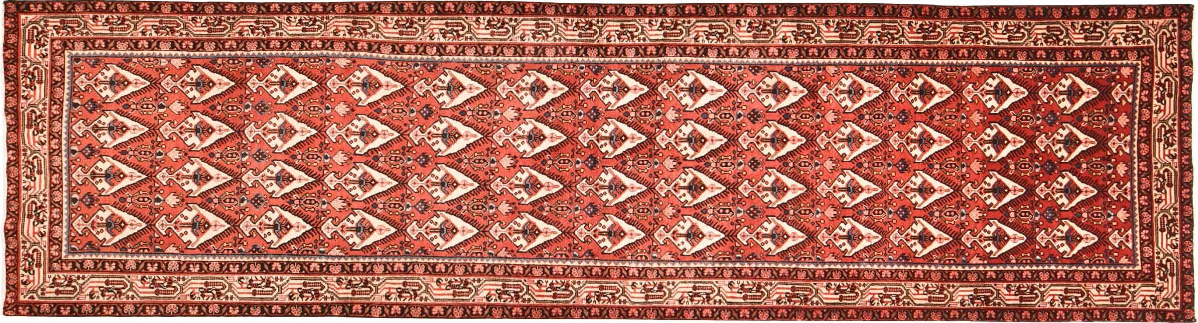 Rug ID: 30088700122567 Size: 13'0"x3'5" ft Thickness: ap. 0.31 in Knot density: 82 - 103 / square inch Manufacturing: Knotted by hand Pile: Handspun wool Warp: Cotton Origin: Persia / Iran Age: New Weight: ap. 31 lb Also know as Huseinabad In stock: Unique - Only 1 in stock