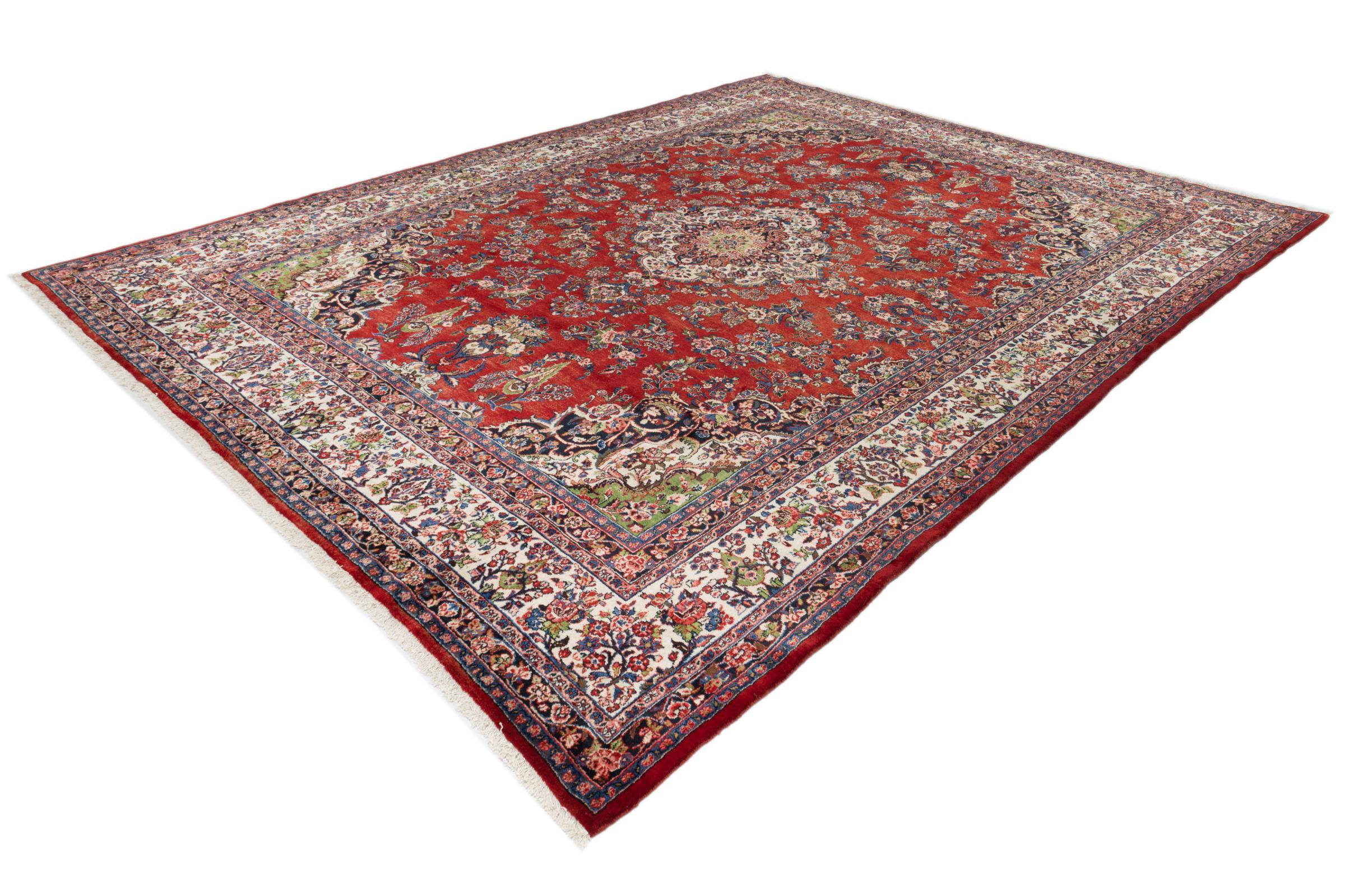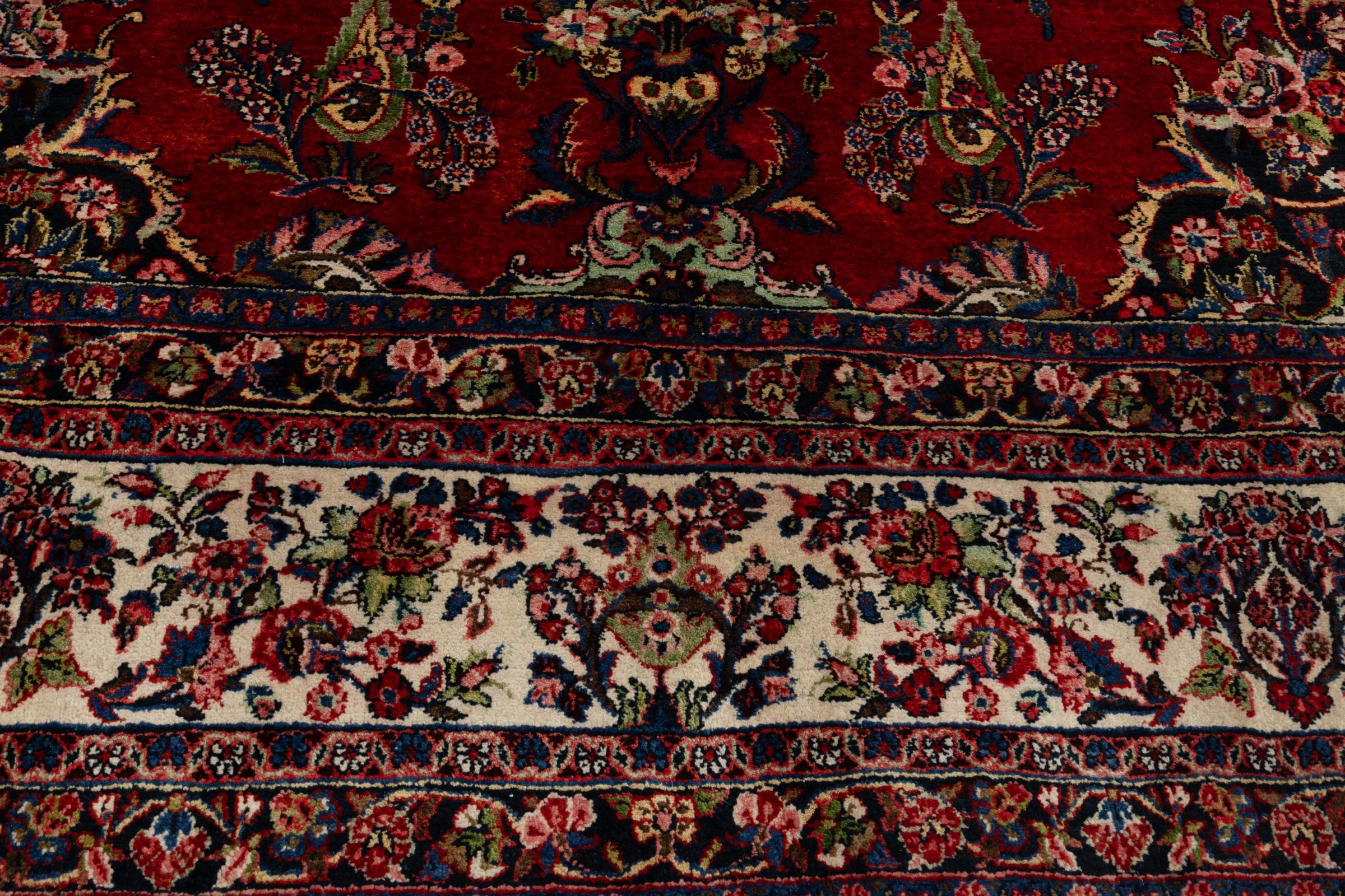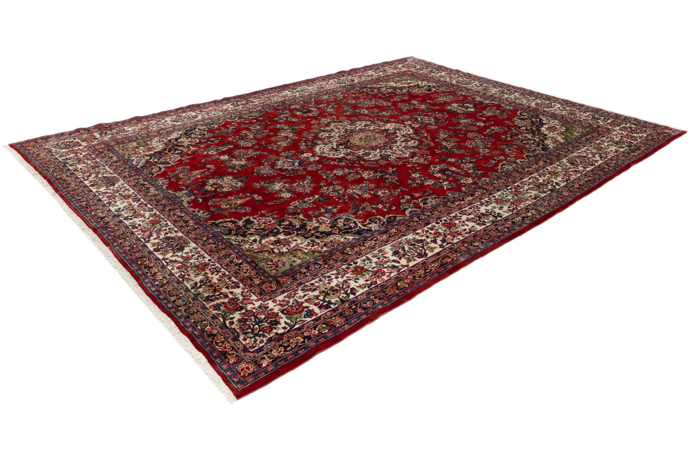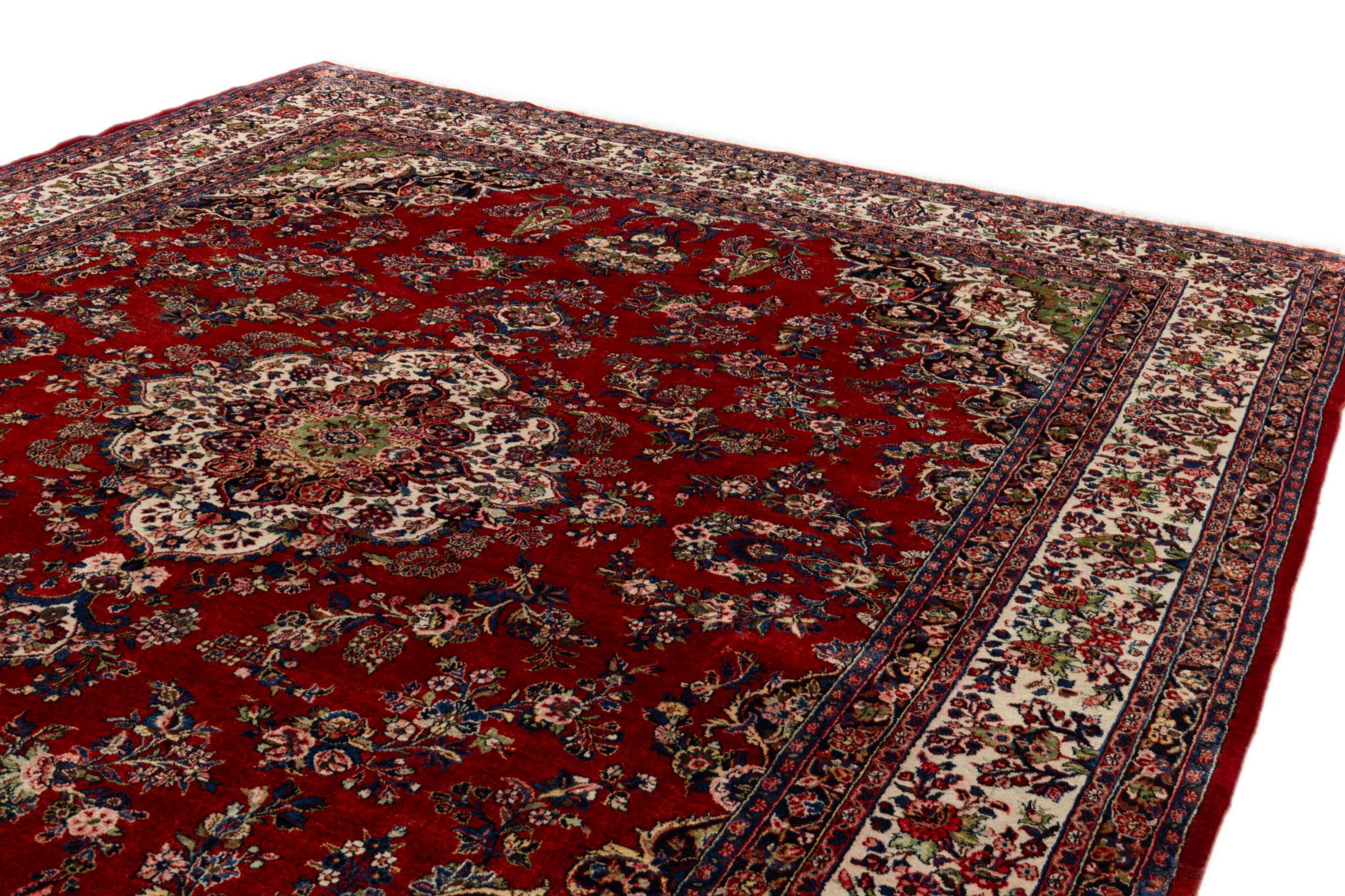 Rug ID: 297240009432054 Size: 13'10"x10'6" ft Thickness: ap. 0.47 in Knot density: 82 - 103 / square inch Manufacturing: Knotted by hand Pile: Sheep wool Warp: Cotton Origin: Persia / Iran Age: Old, 30-50 years Weight: ap. 119 lb Also know as Huseinabad In stock: Unique - Only 1 in stock